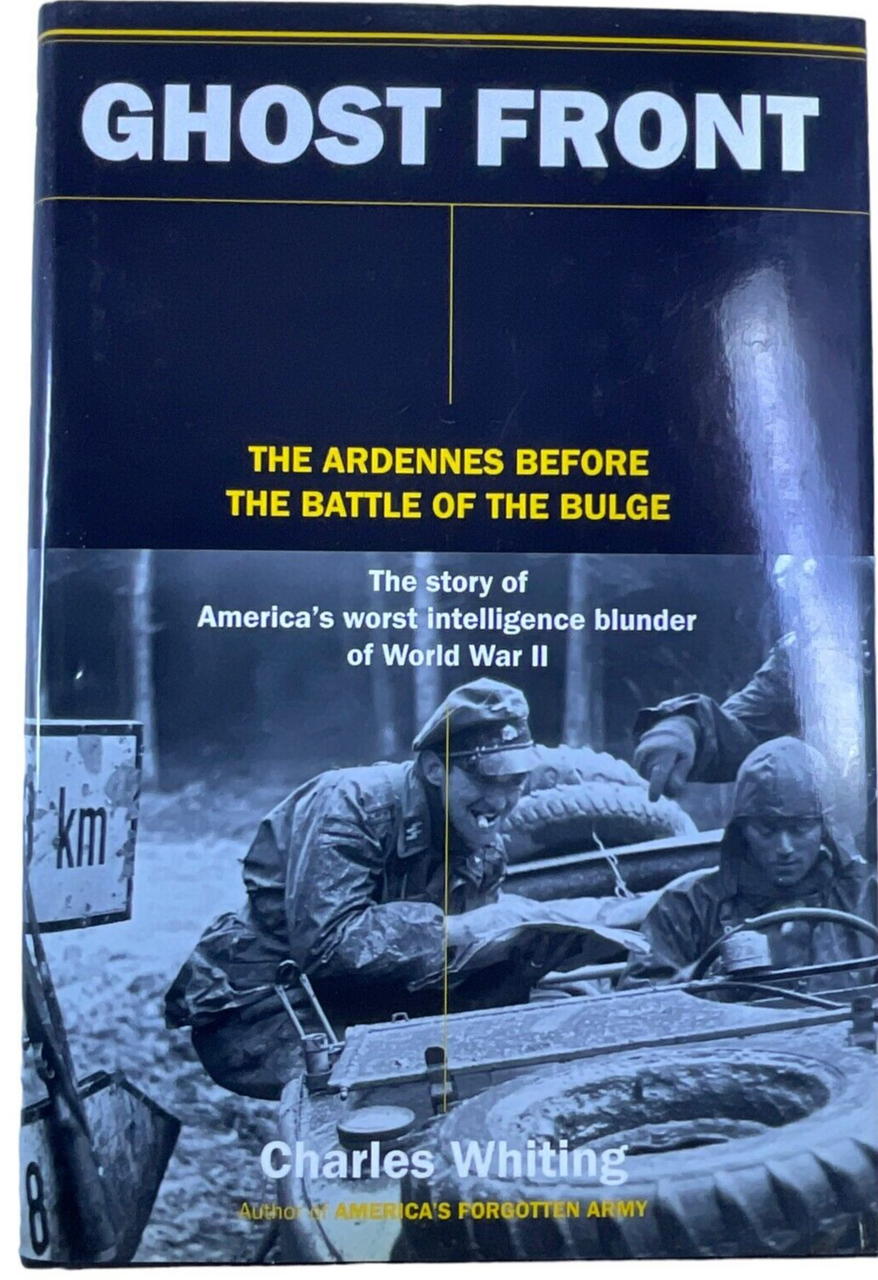 This is a used hardcover WW2 German Ghost Front The Ardennes Before The Battle of the Bulge The Story of Americas Worst Intelligence Blunder of World War 2 Charles Whiting Reference Book. Total of 219 pages with lots of pictures and information.