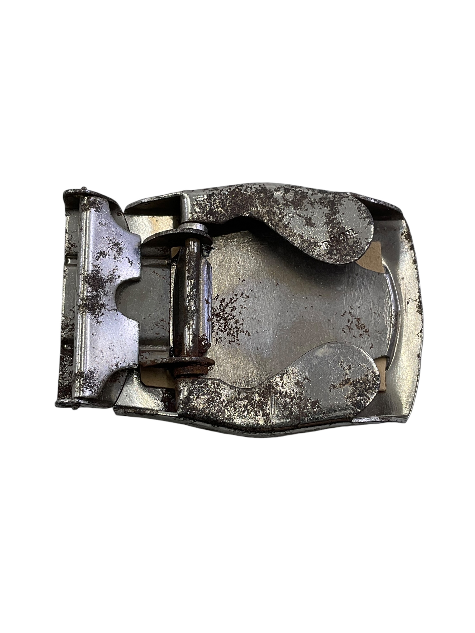 This item is a World War II-era belt buckle that was worn by members of the Hitler Youth (HJ), a paramilitary organization of the Nazi Party. Made of durable metal, the buckle features the swastika, an emblem synonymous with Nazi Germany. The design is stark, reflecting the austere aesthetics of the Nazi regime. The buckle served not only as a functional part of the uniform, but also as a symbol of loyalty and commitment to the Hitler Youth’s ideals. It provides a tangible link to a dark chapter in world history, making it a significant piece for collectors of military memorabilia or WWII artifacts. It’s important to note that this item is an artifact, representing a historical period and its ideologies, and does not promote or endorse those ideologies.