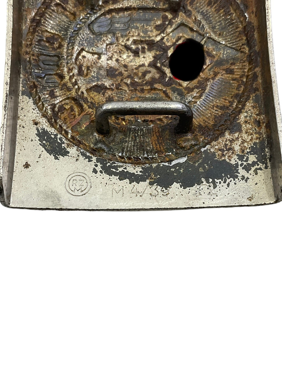 This captivating artifact is a genuine WW2 German Hitler Youth steel belt buckle, distinctly marked by the renowned manufacturer Assmann. Bearing the historical weight of its time, this buckle is an emblematic piece of the Hitler Youth, an organization pivotal to Nazi Germany’s youth indoctrination efforts. Crafted from sturdy steel, it showcases the high-quality workmanship characteristic of Assmann’s famed metalwork. The buckle features detailed insignia and symbols reflective of the era’s intense militaristic propaganda. Collectors and history enthusiasts alike will find this piece an invaluable addition to their collections, offering a tangible connection to one of history’s most studied and impactful periods. Its preservation allows for critical reflection on the past, ensuring that the lessons of history are not forgotten.