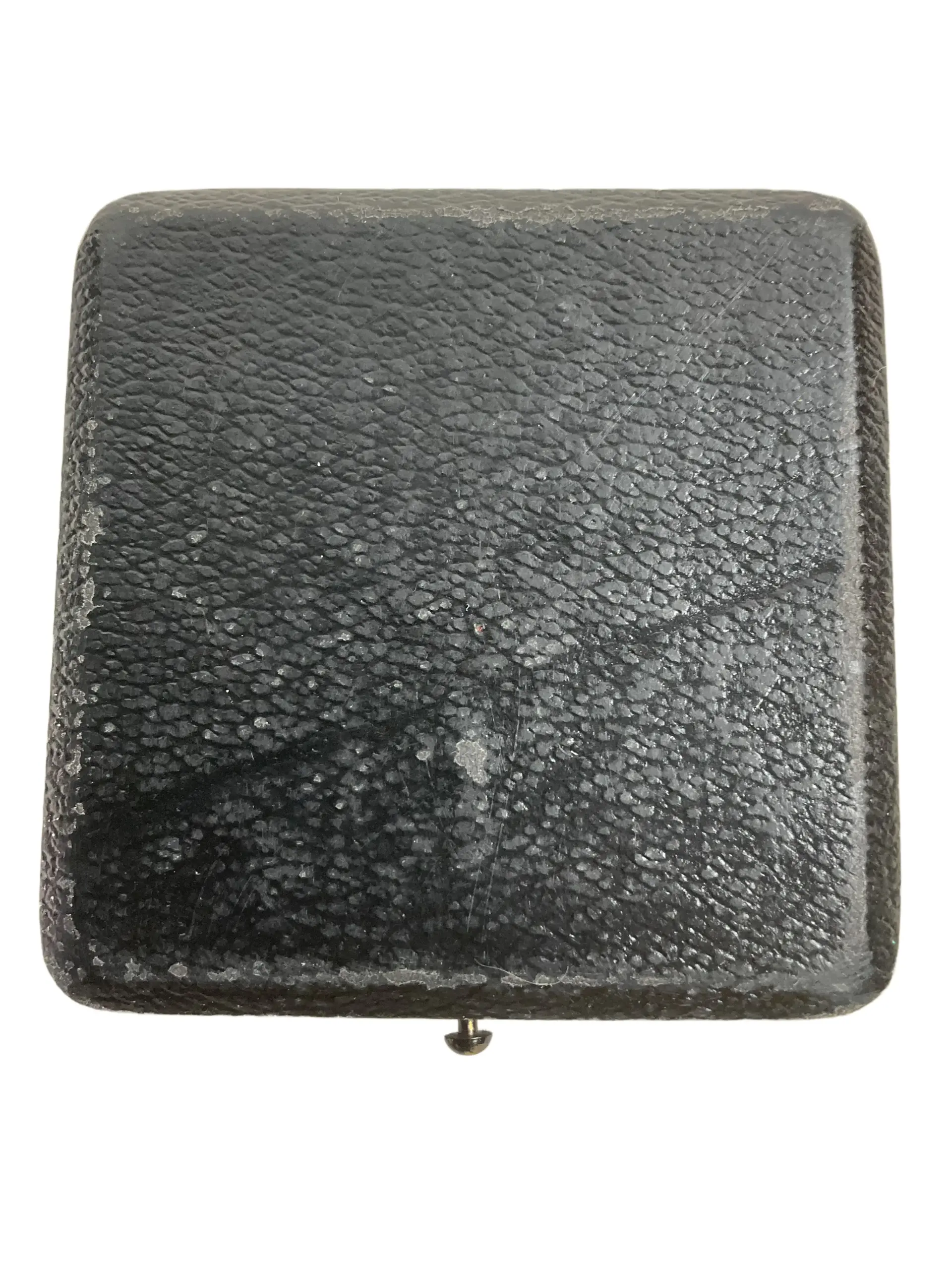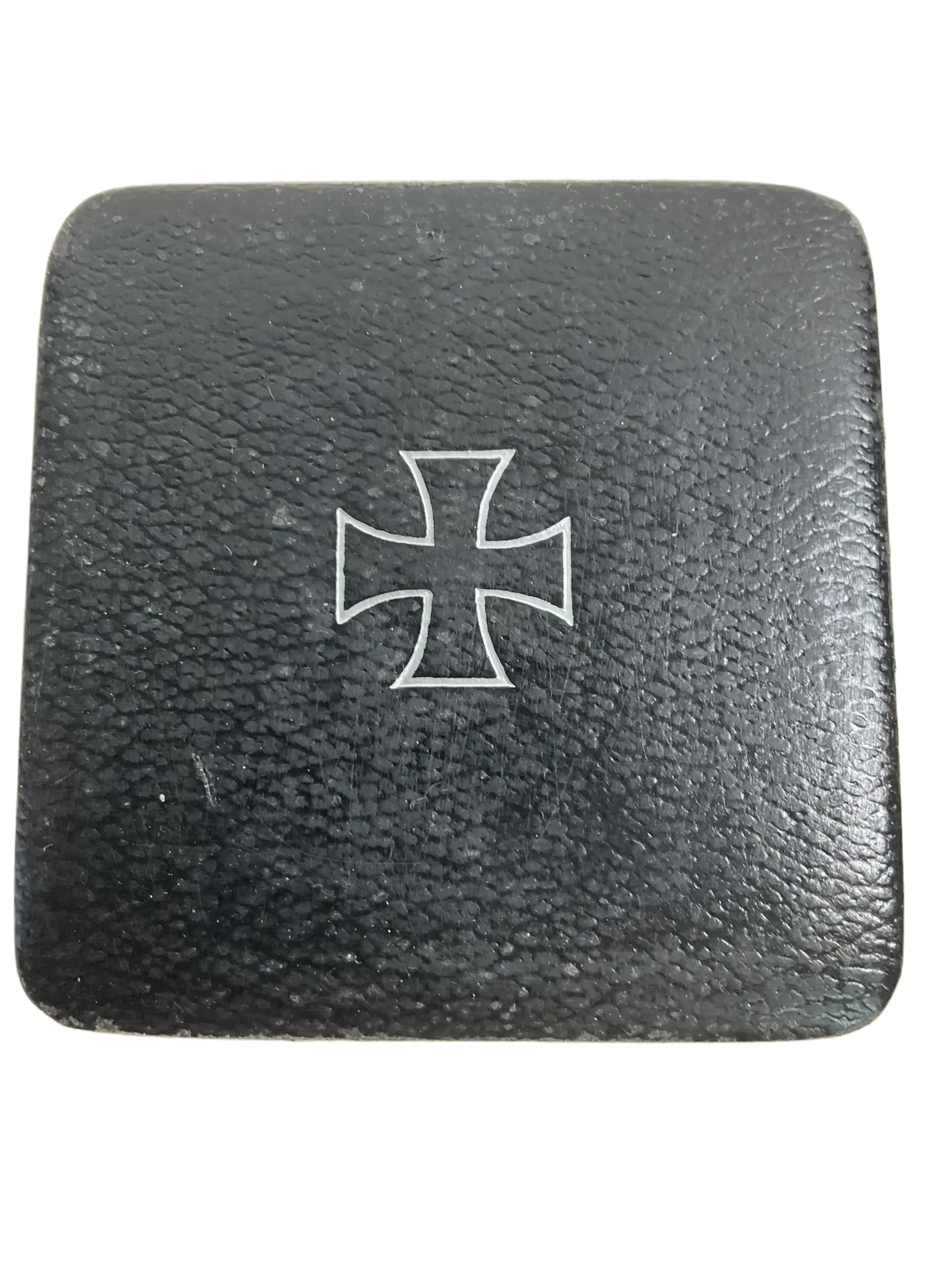 The WW2 German Iron Cross 1st Class Case (Empty) is an original presentation and storage box designed specifically for the Iron Cross 1st Class military decoration awarded during the Second World War. The case is typically constructed from a wood or pressed cardboard base, covered with black leatherette material. The interior is lined with a fitted dark velvet insert on the bottom to accommodate the cross, and a satin or silk upper lining, often white or ivory in color. The lid is hinged, and the case is secured with a small press-button clasp at the front. Cases like this were issued with the Iron Cross 1st Class to protect and present the award. This empty case does not include the medal itself. Such items are relevant to collectors and researchers interested in military history, as they represent the official means of packaging and presenting one of Nazi Germany’s most recognized decorations during the 1939–1945 period.