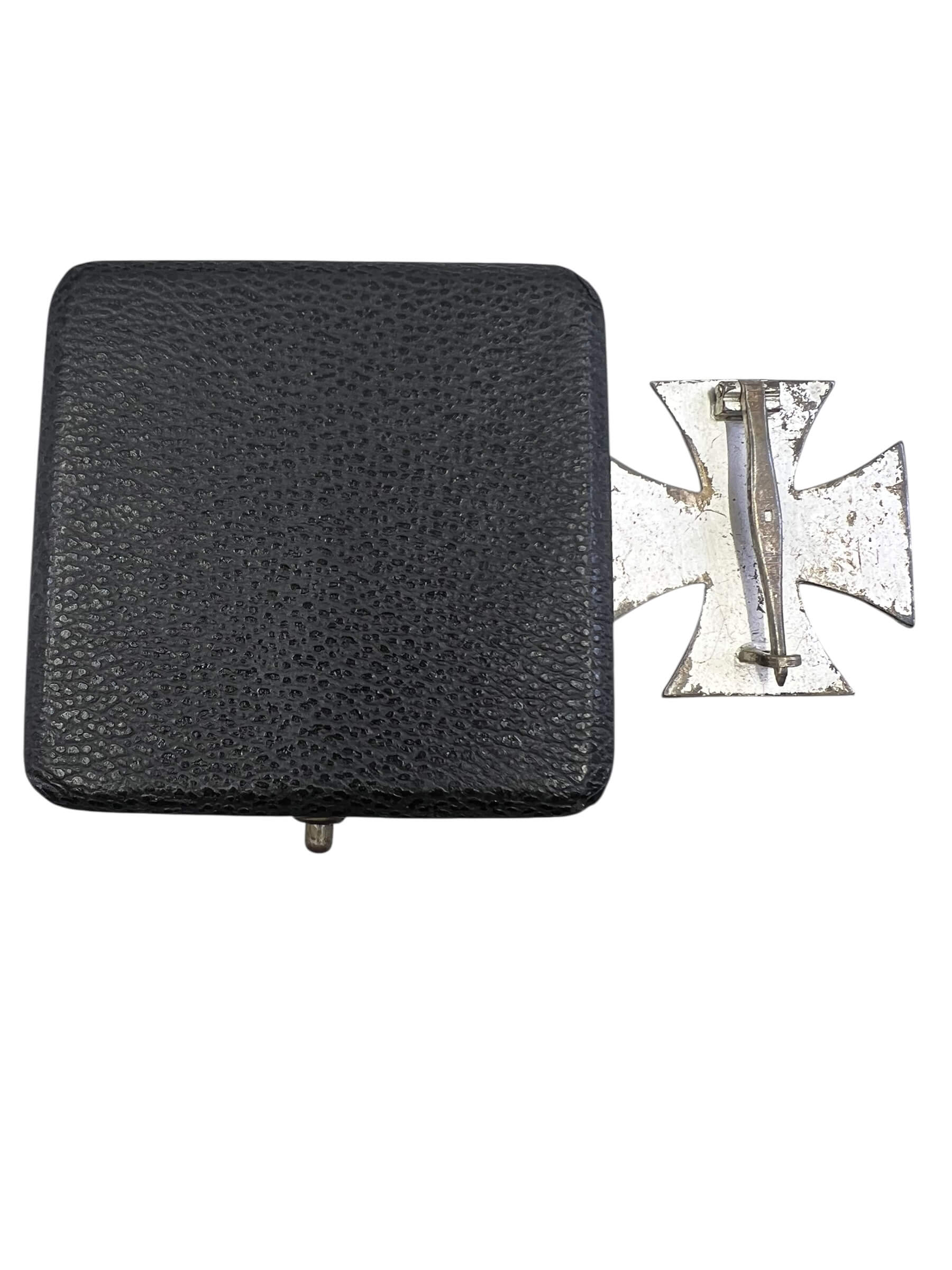 The WW2 German Iron Cross 1st Class in Case, marked by maker “4” Steinhauer & Luck Ludenscheid, is a military decoration awarded during the Second World War for acts of bravery or leadership. This example features the standard cross pattée design, produced in a three-piece construction with a magnetic iron core and a silvered frame. The reverse side is fitted with a pin and clasp system, typical of Iron Crosses intended to be worn on the uniform. The maker’s code “4” identifies Steinhauer & Luck, a well-known manufacturer based in Ludenscheid, responsible for producing a significant number of these awards during the war. This medal is housed in a presentation case lined with a soft fabric interior and fitted base, providing secure storage and protection. The case usually displays an embossed Iron Cross outline on the lid. An item such as this provides important insight into German military decorations of the Second World War.