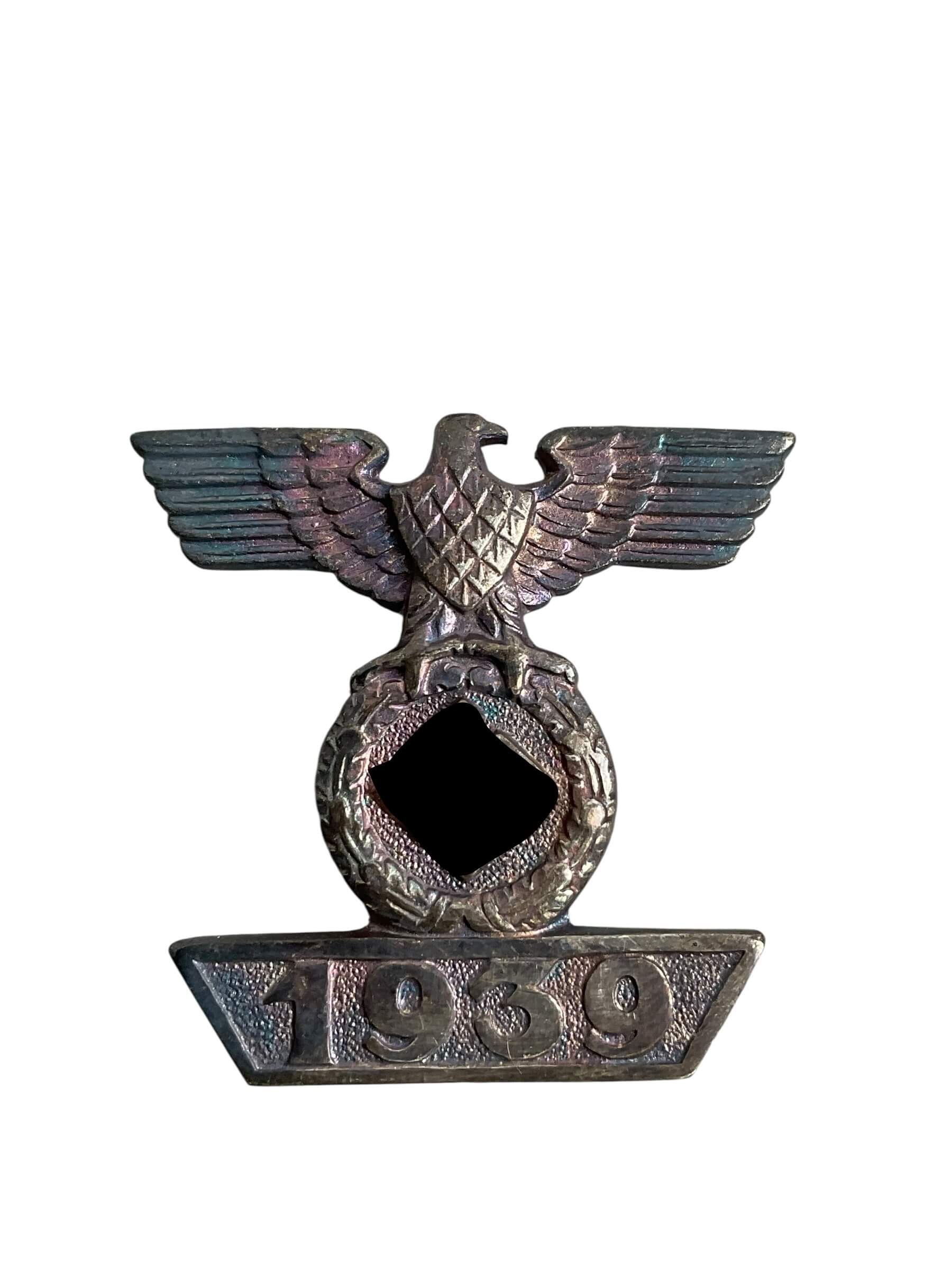 The WW2 German Iron Cross 1st Class in Case Souval with Spange Zeimer and Sohne is a historical item from World War II era. This item is a representation of the Iron Cross First Class medal, a military decoration originally established in 1813 by King Friedrich Wilhelm III. The Zeimer and Sohne manufacturer is recognized for its superior craftsmanship, attesting to the authenticity and value of the item. The medal is packaged in a Souval case, preserving its quality and historical significance. The medal is distinguished by the addition of a Spange, indicating a repeat award for exceptional bravery in combat or military leadership. The materials used for this product remain consistent with the original designs, accenting the black and silver contrasts on the iron cross itself. This product is not a fake or reproduction. It should be handled with care, reflecting its historical relevance and the prestige it once symbolized for its recipients.