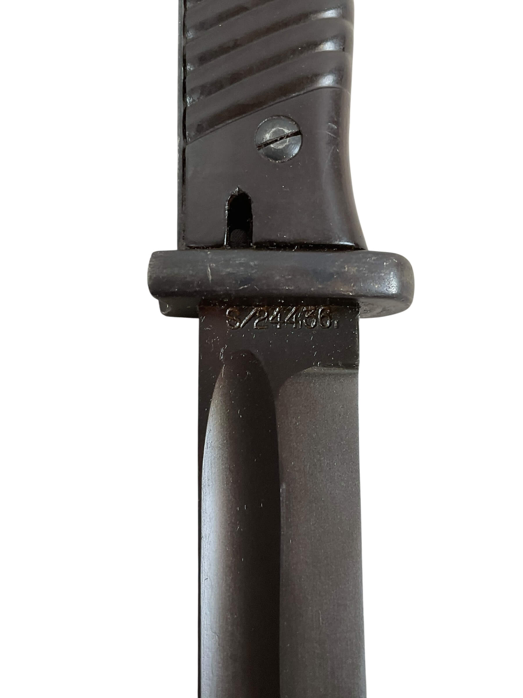 This collectible item is an authentic WWII German K98 Bayonet, a crucial accessory for German soldiers during the war. This particular piece comes with a scabbard that adds to its historical significance and value. However, it’s important to note that the bayonet and scabbard do not match, with the bayonet being dated 1936 and the scabbard dated 1939. This lack of matching dates often indicates that the bayonet and scabbard may have been paired during the chaos of war, adding a unique layer to its story. Both pieces are preserved in their original condition, showing signs of use, but no significant damage. The K98 Bayonet is an intriguing piece of military history, a must-have for collectors and history enthusiasts.