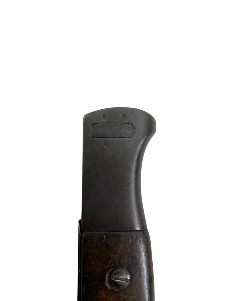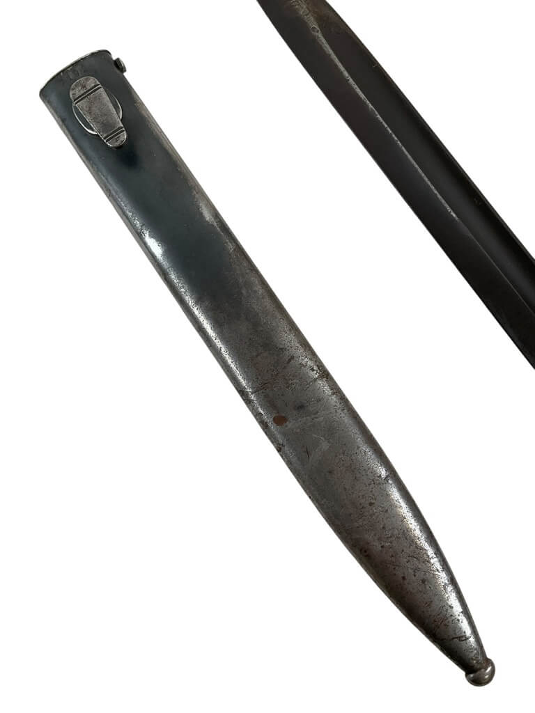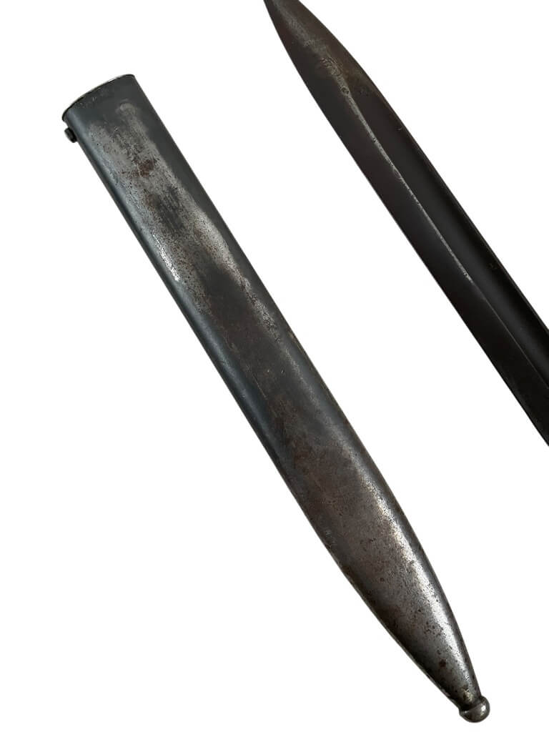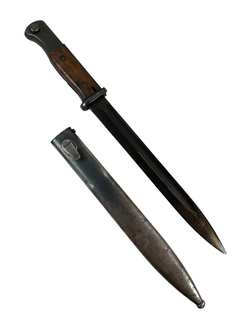 This listing showcases a genuine WW2 German K98 Bayonet with its original scabbard. Although not matching in numbers, both pieces are authentic, bearing the marks of historical use and age. The K98 Bayonet, known for its ruggedness and durability, was a standard issue for the German infantry during the Second World War. Its strong blade and solid grip allowed it to serve multiple functions in the field, from a combat weapon to a versatile tool. The accompanying scabbard served as a secure housing for the bayonet, protecting it from the elements and damage. Despite the non-matching numbers, these pieces present a fascinating glimpse into military history, offering collectors the opportunity to own tangible relics from a crucial period in world history. Please note, these items are intended for historical interest and collecting purposes only.