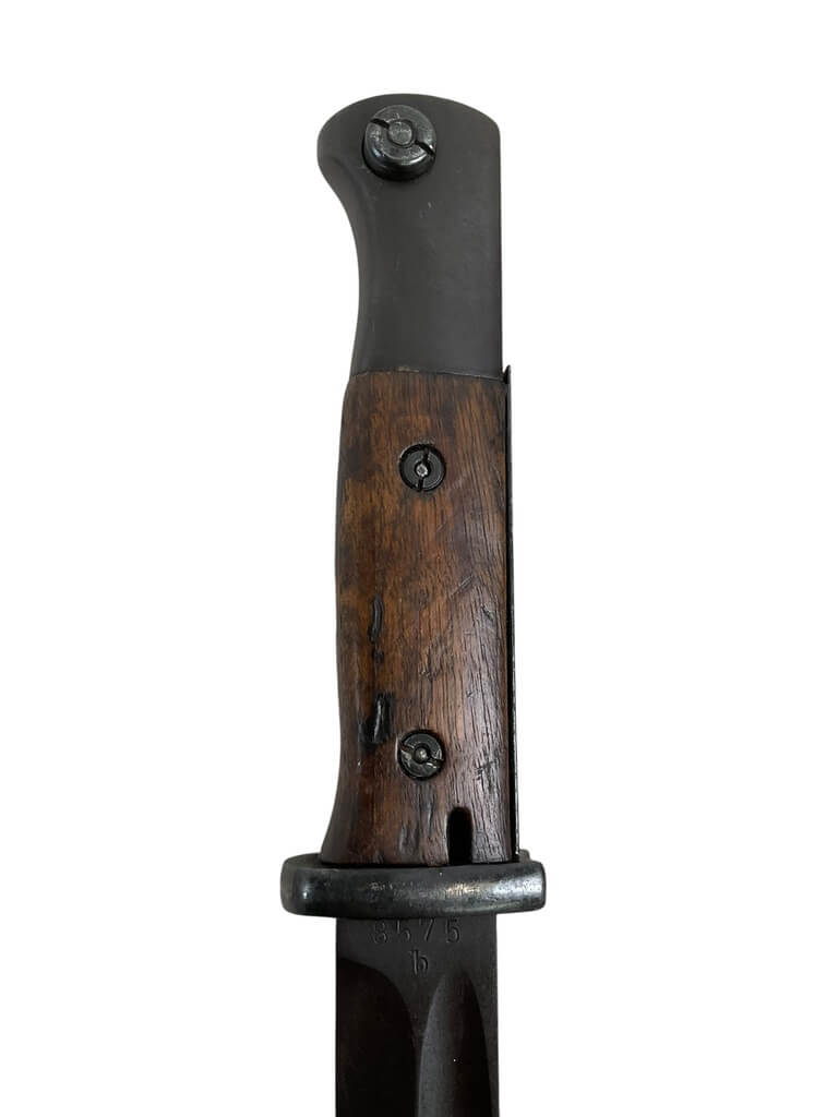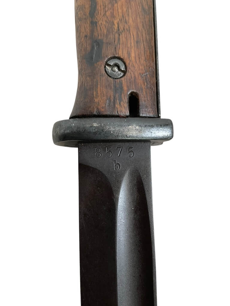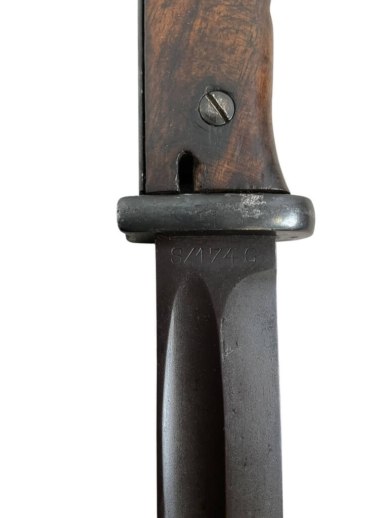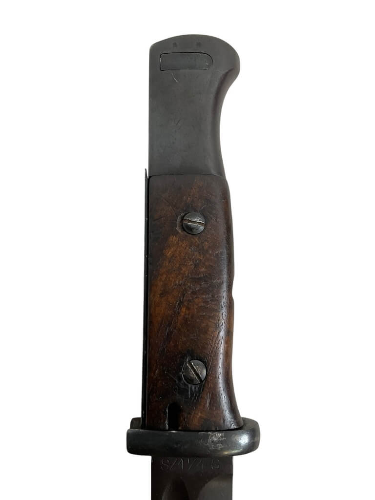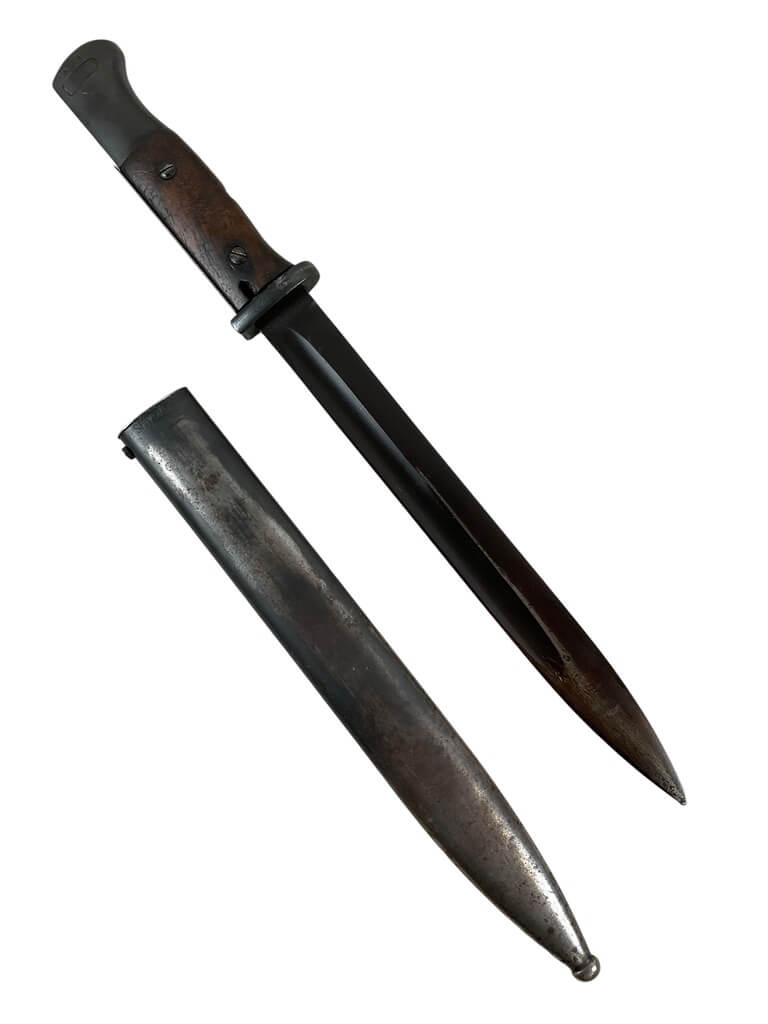 This listing showcases a genuine WW2 German K98 Bayonet with its original scabbard. Although not matching in numbers, both pieces are authentic, bearing the marks of historical use and age. The K98 Bayonet, known for its ruggedness and durability, was a standard issue for the German infantry during the Second World War. Its strong blade and solid grip allowed it to serve multiple functions in the field, from a combat weapon to a versatile tool. The accompanying scabbard served as a secure housing for the bayonet, protecting it from the elements and damage. Despite the non-matching numbers, these pieces present a fascinating glimpse into military history, offering collectors the opportunity to own tangible relics from a crucial period in world history. Please note, these items are intended for historical interest and collecting purposes only.