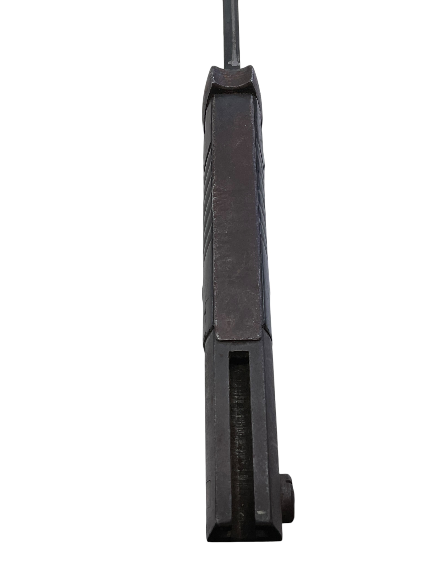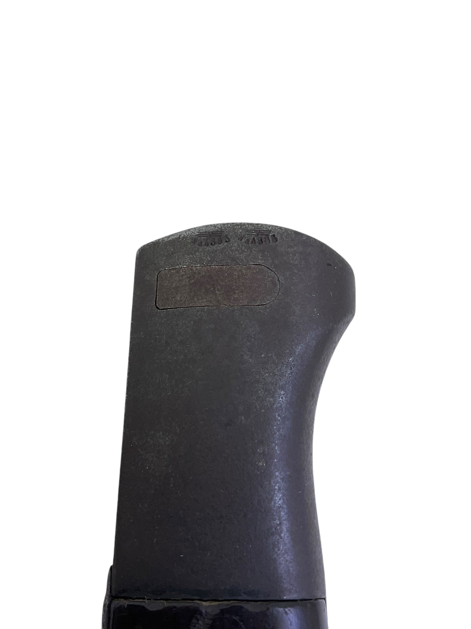 This piece is a genuine World War II German K98 Rifle Bayonet, marked with the manufacturer’s code ‘FNJ’ and dated 1941, confirming its historical significance. This bayonet is a fascinating artifact from a pivotal era in world history. Despite its non-matching components, the piece retains its overall integrity and displays the rugged durability of German engineering and craftsmanship of the time. The K98 Bayonet was standard issue for German infantry troops, playing a crucial role in both combat and ceremonial capacities. The FNJ mark indicates it was made by Alexander Coppel GmbH, a renowned producer of military equipment. This historical piece would be an excellent addition to any military memorabilia collection, offering an authentic glimpse into WWII German military equipment.