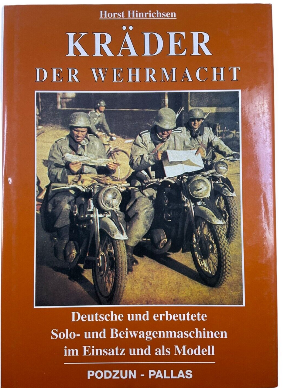 This is a used hardcover WW2 German Krader of the Wehrmacht Motorcycles GERMAN TEXT Horst Hinrichsen Reference Book. Total of 188 pages with lots of pictures and information.