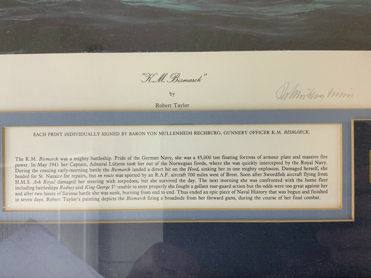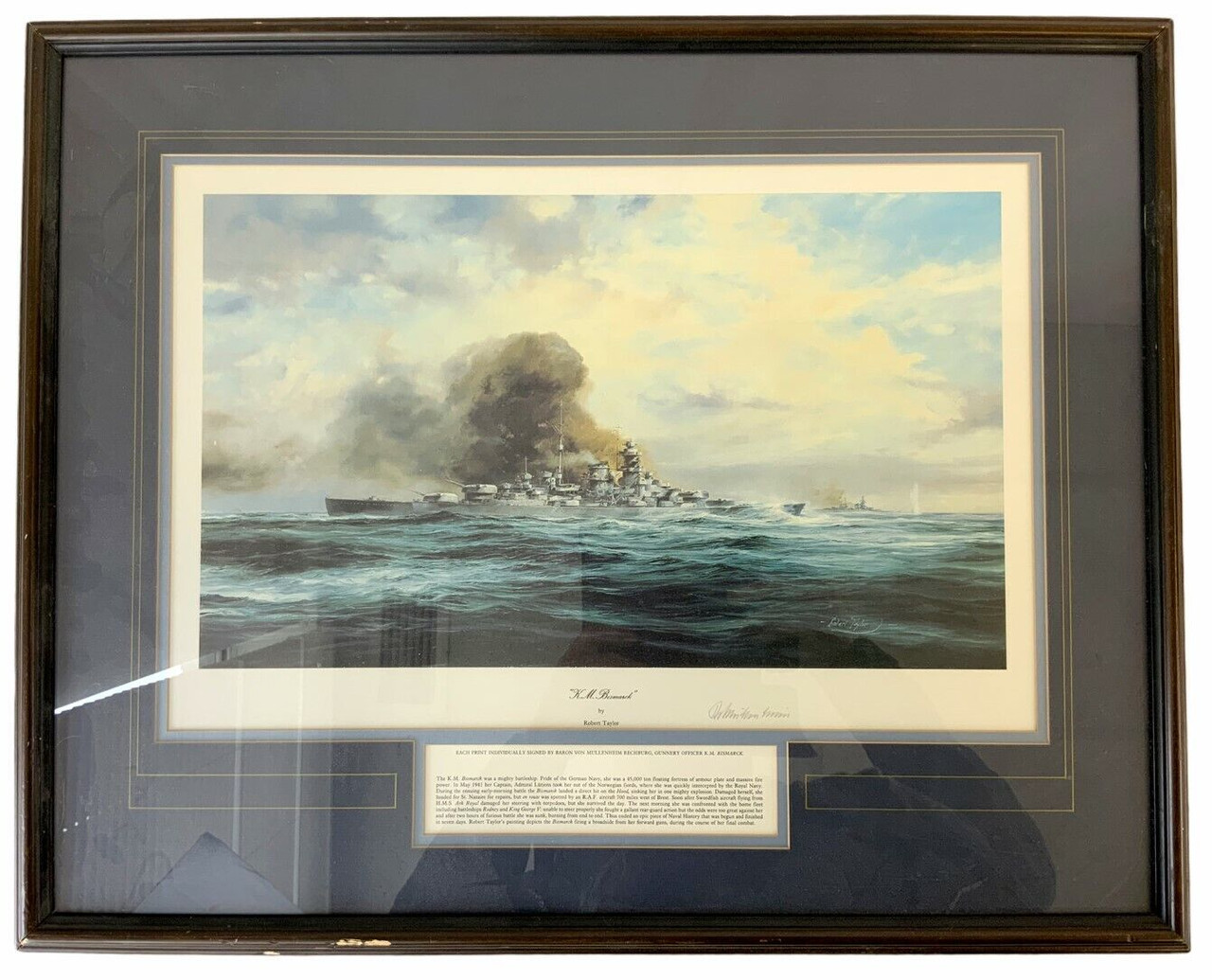 WW2 German Kriegsmarine KM Bismarck Robert Taylor Signed Framed Print 27 x 22