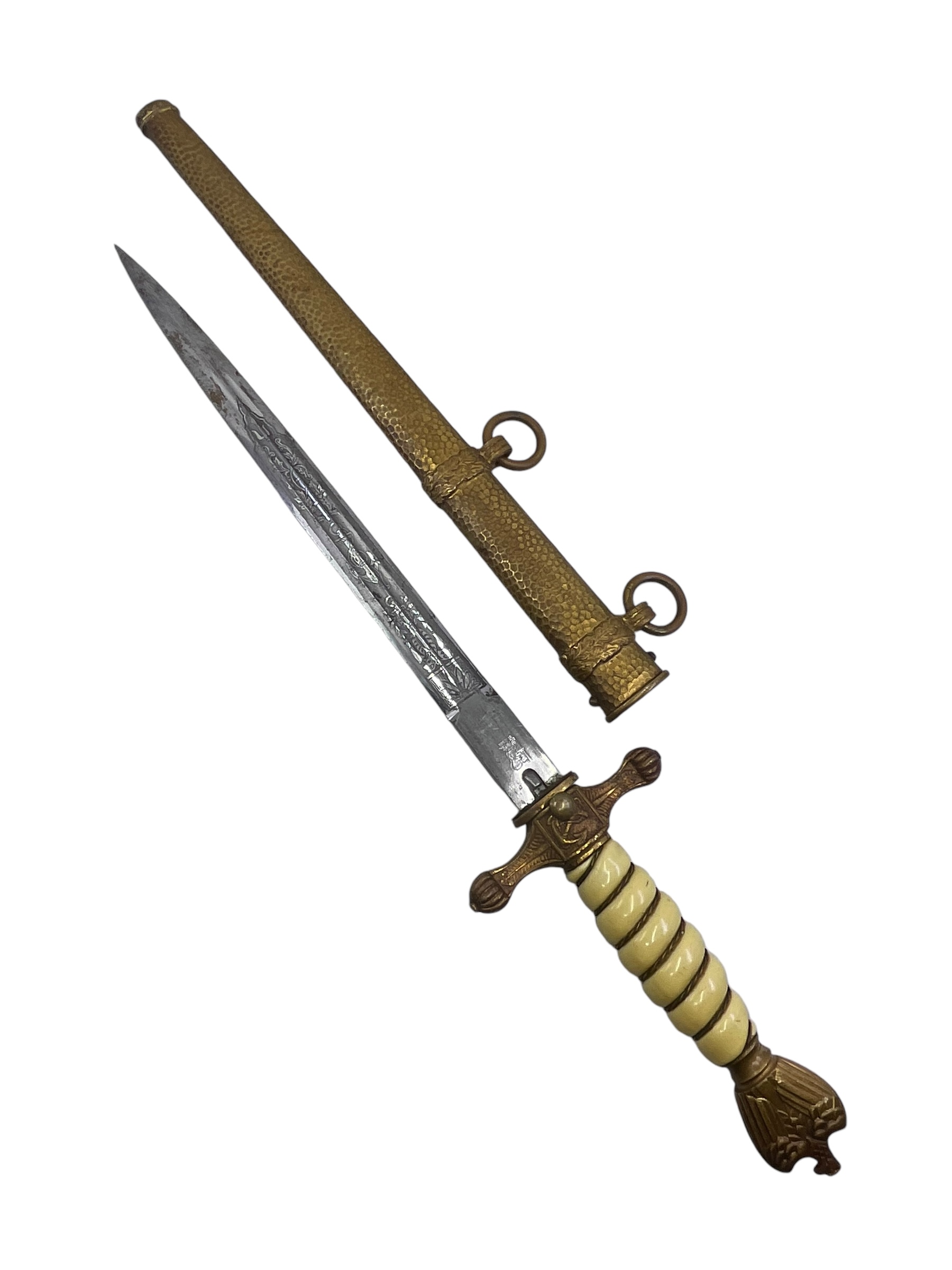 WW2 German Kriegsmarine Navy Officers Dagger with Hammered Scabbard Eickhorn