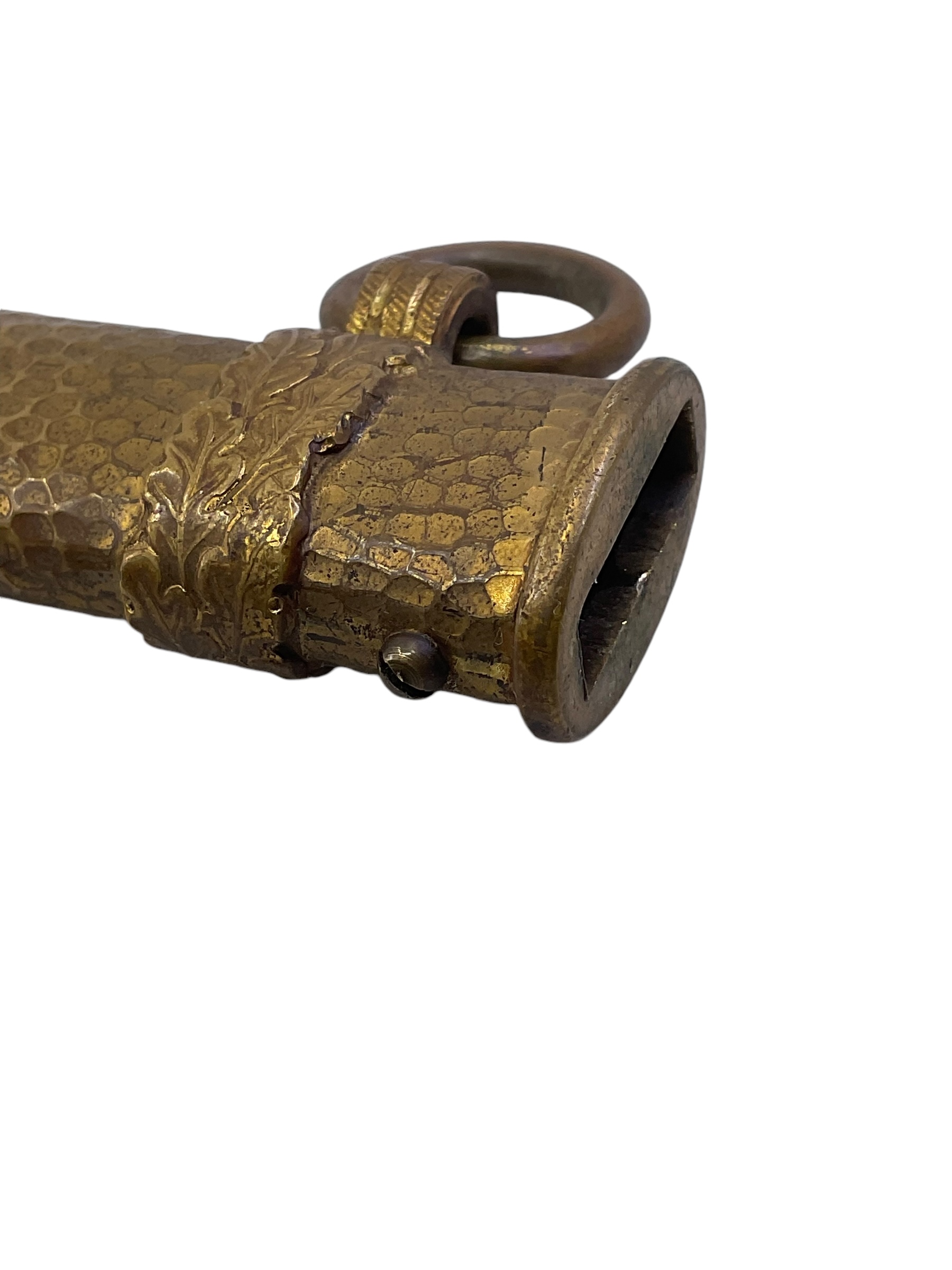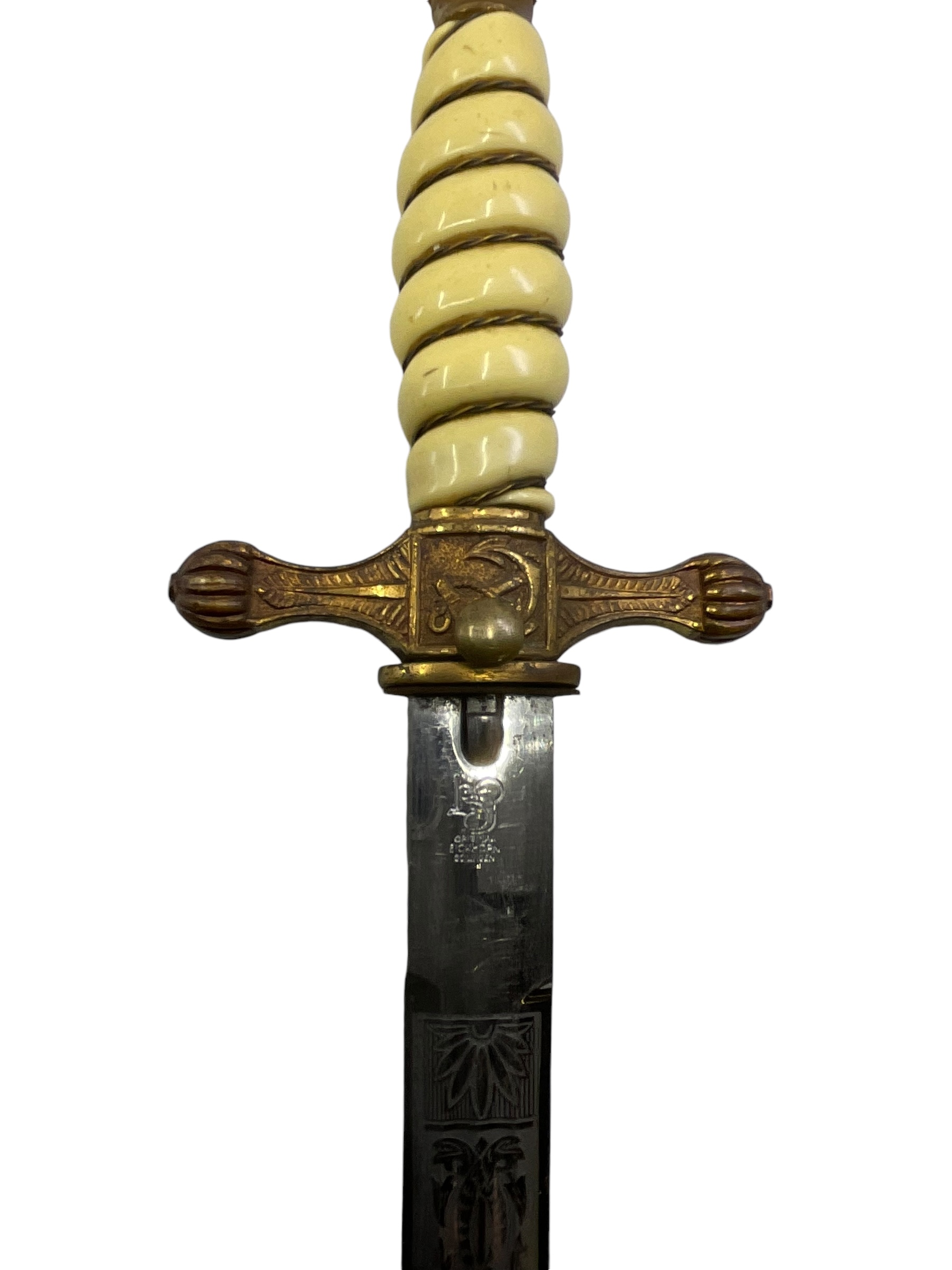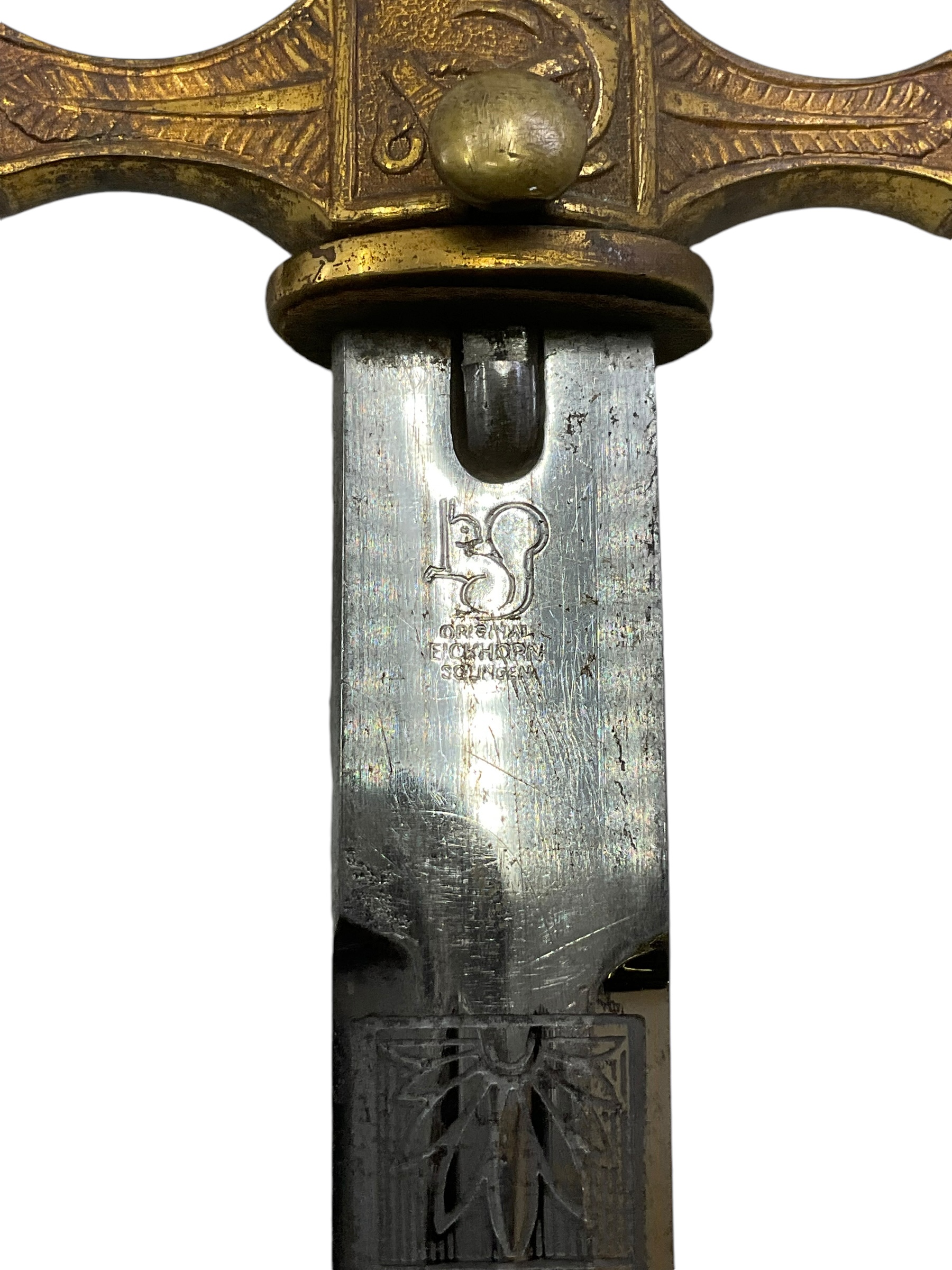 This WW2 German Kriegsmarine Navy Officers Dagger with Hammered Scabbard Eickhorn is a significant piece of military history. Crafted by the renowned German manufacturer, Eickhorn, during the height of World War II, this dagger was designed for use by the officers of the Kriegsmarine, the German navy. The dagger features a beautifully detailed hammered scabbard. The blade itself is made with high-quality tempered steel, displaying a balance of elegance and practicality. The intricately crafted hilt and pommel, combined with the historical significance of this piece, make it a truly captivating artifact. Whether you’re a history enthusiast or a collector of military memorabilia, this WW2 German Kriegsmarine Navy Officers Dagger is a valuable addition to any collection.