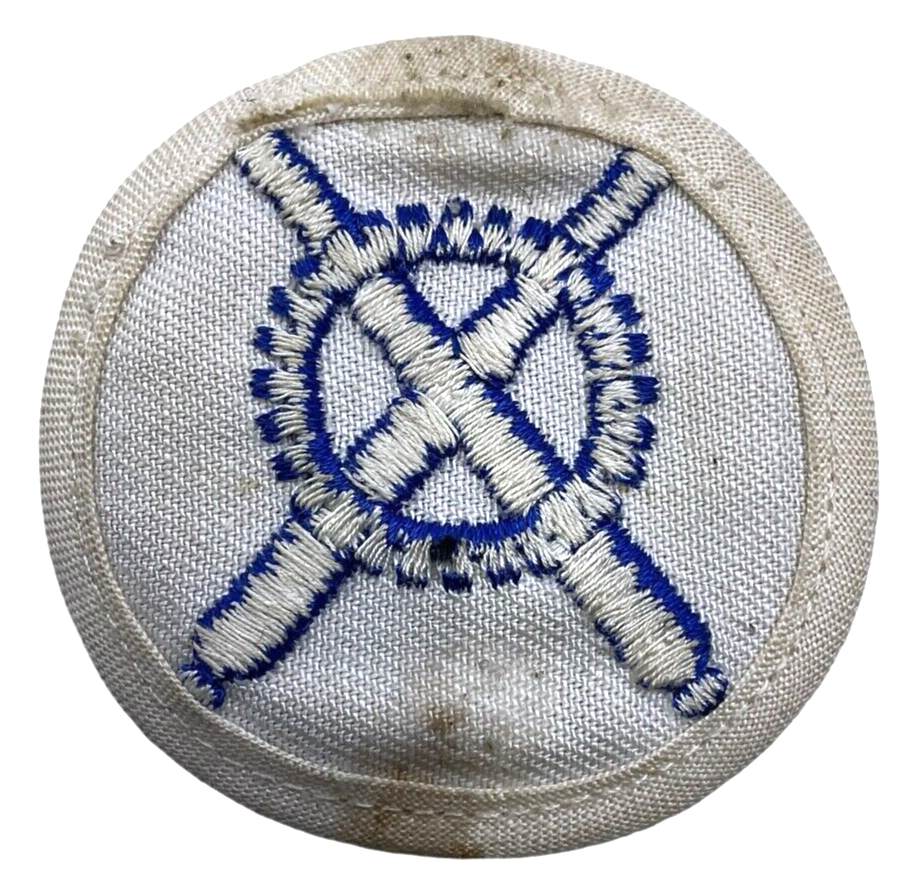 The ‘WW2 German Kriegsmarine White Backed Artillery Mechanic Sleeve Trade Patch’ is a historically significant military insignia from World War II. This patch was worn by artillery mechanics serving in the Kriegsmarine, the navy of Nazi Germany. It features a distinctive white backing, which signifies its association with apparel worn by mechanics responsible for maintaining and repairing naval artillery equipment. The design typically includes symbols representative of their trade, such as crossed cannons or tools, crafted to the high standards of wartime German military insignia. This patch not only marked the wearer’s rank and professional expertise but also served as an emblem of the crucial support role artillery mechanics played in naval operations. Today, this patch is a sought-after collector’s item for military enthusiasts and historians, offering a glimpse into the complex structure and personnel specialization within the Kriegsmarine during one of history’s most tumultuous periods.