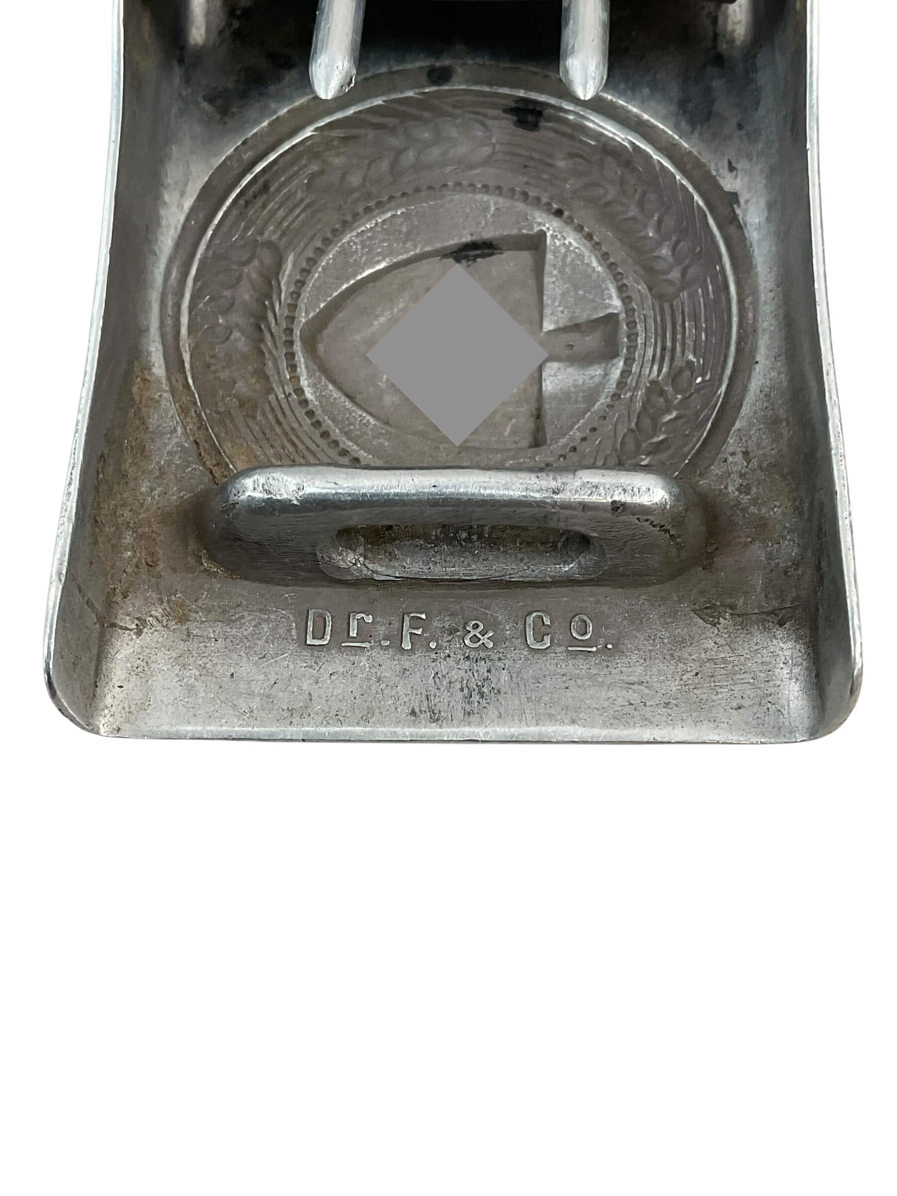 WW2 German Labour Service RAD Aluminum Belt Buckle With Tab Dated 1939 Maker D.R. Franke and Co.