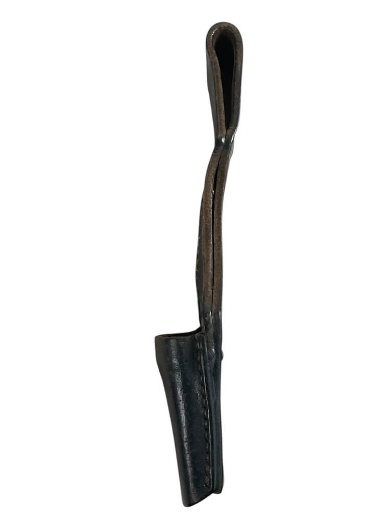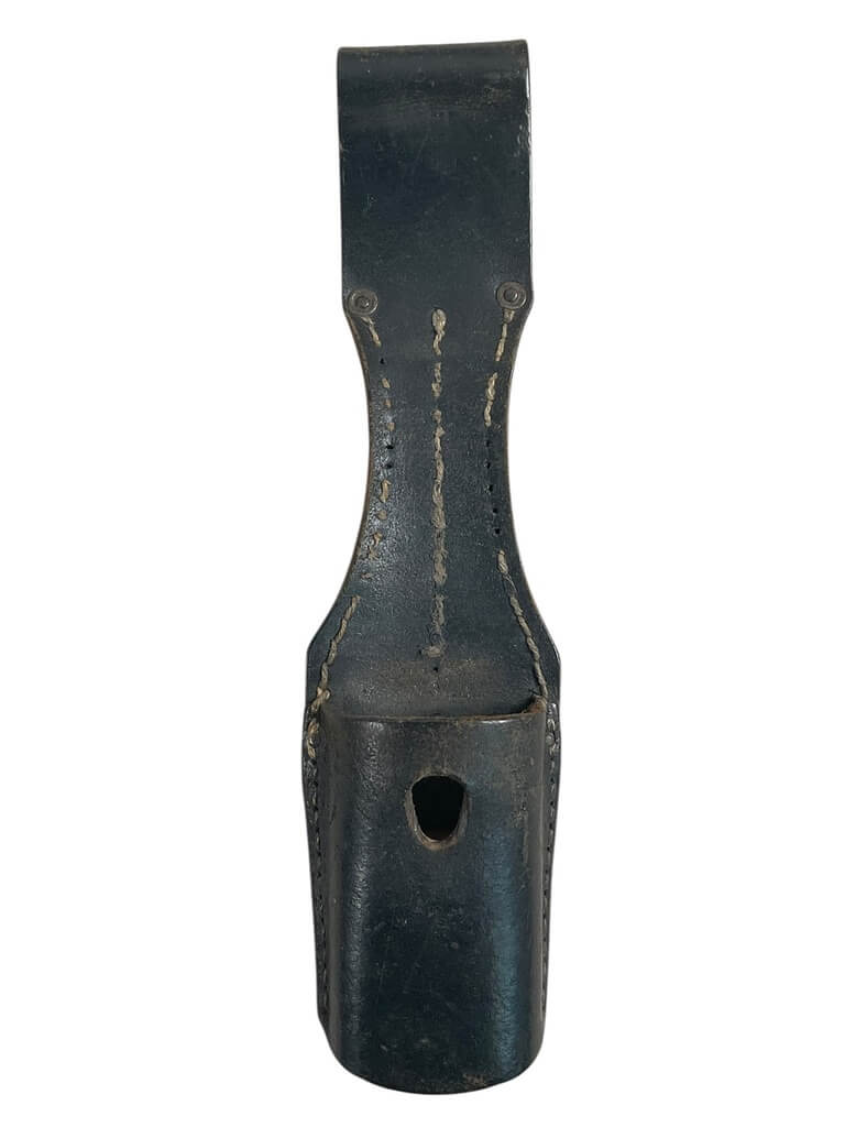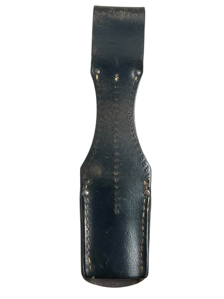 The WW2 German Leather Bayonet Frog is a key artifact from the Second World War period, used predominantly by German military personnel. Crafted from durable leather, this item served as a crucial accessory for carrying a bayonet, a strategic tool in warfare, and occasionally, everyday camp activities. The Bayonet Frog is characterized by its sturdy design; featuring a loop mechanism that allows the bayonet to be attached securely to a soldier’s belt. It is usually black or brown in color, matching the traditional military aesthetic of the time. It bears witness to the rigorous standards of German military craftsmanship during the war. The authentic pieces often reflect noticeable wear and tear, signifying its usage in a historical context. Authentic WW2 German Leather Bayonet Frogs are high in demand among history enthusiasts and military memorabilia collectors. This item does not include a bayonet – it is the frog only. Please note that the market also contains reproductions; buyers should be aware and ensure credibility before a purchase.