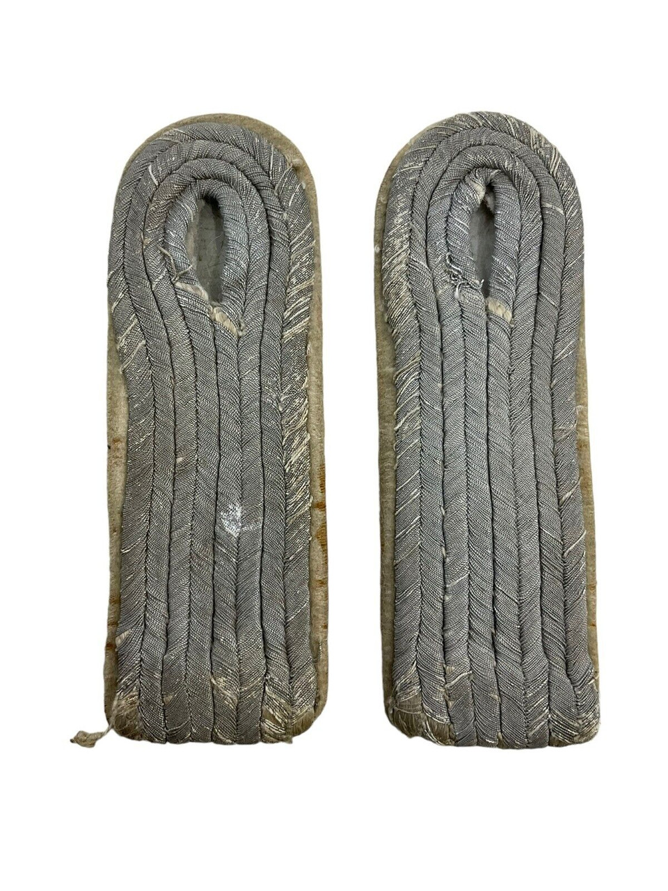 This set of World War II German Lieutenant Infantry Officers Shoulder Boards marks an exquisite piece of military history. Each shoulder board, tailored specifically for a lieutenant, encapsulates the distinct and intricate design synonymous with WWII German military regalia. Crafted with meticulous attention to detail, the pair exhibits the characteristic features of German infantry officers’ shoulder boards, including the woven silver threading and the specific insignia indicative of the rank of a lieutenant. Ideal for historical collectors, military enthusiasts, or re-enactors, this pair not only represents the authoritative rank within the German infantry but also serves as a tangible connection to the era’s storied past. Whether displayed as part of a collection or incorporated into a detailed WWII uniform, these shoulder boards are a remarkable representation of the period’s military craftsmanship and history.