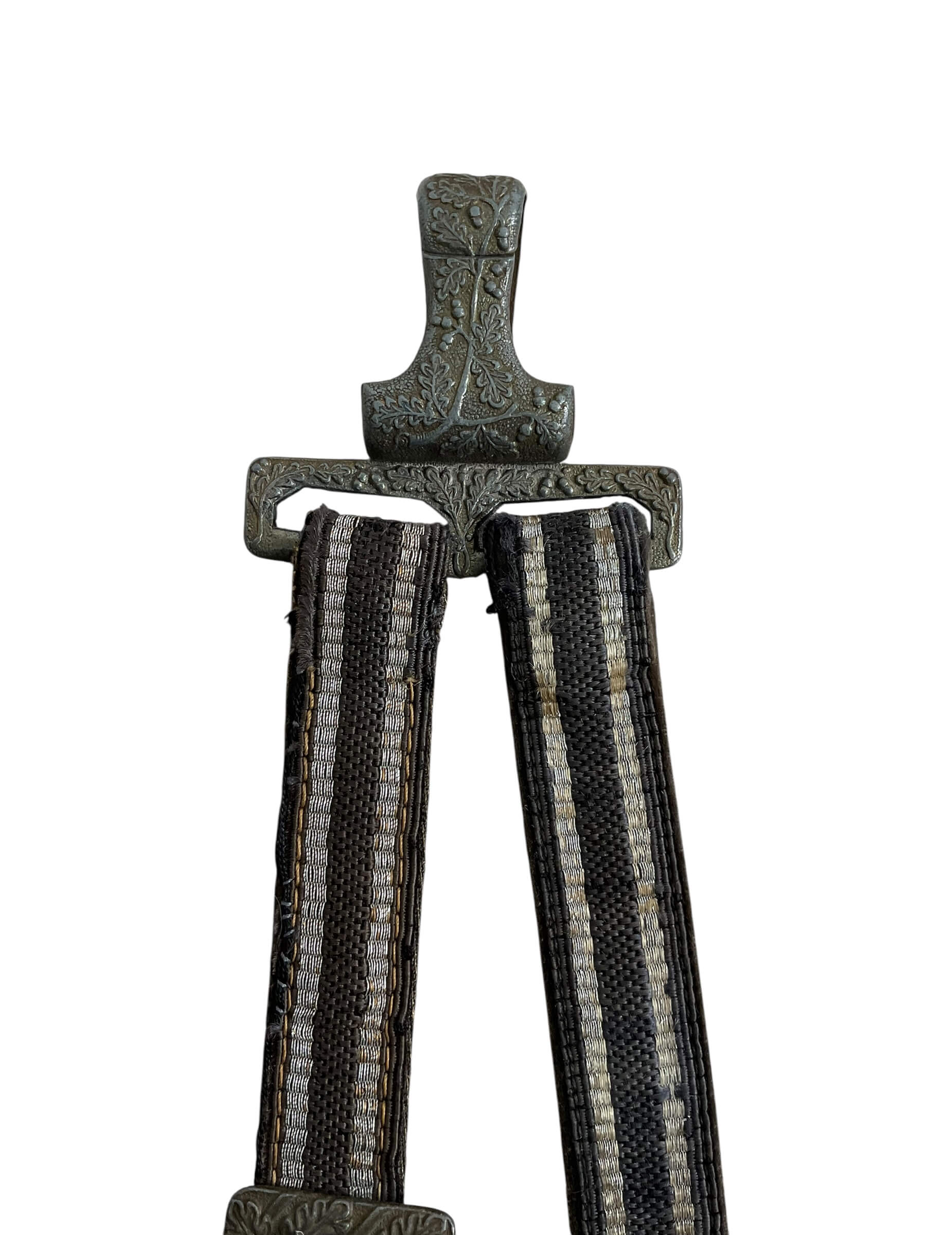 The WW2 German Luftwaffe Dagger Hangers are a distinguishable piece of military history from the Second World War. Serving a functional and symbolic purpose, these hangers were utilised by the German Air Force, or Luftwaffe, to carry their ceremonial daggers. A true testament to the craftsmanship of the era, these hangers typically feature intricate detailing, often including the Luftwaffe eagle and swastika emblem as part of the design. Made of high-quality metal, they are designed to support the substantial weight of the ceremonial dagger. They were generally attached to formal attire, signifying the wearer’s allegiance and rank within the Luftwaffe. Collectors of military memorabilia value these pieces for their historical significance and detailed artistry. While they are a reminder of a tumultuous time in world history, WW2 German Luftwaffe Dagger Hangers also represent an era of unique military aesthetics and design.