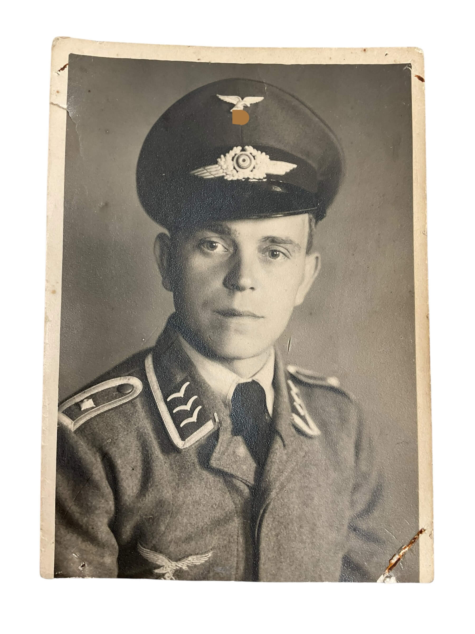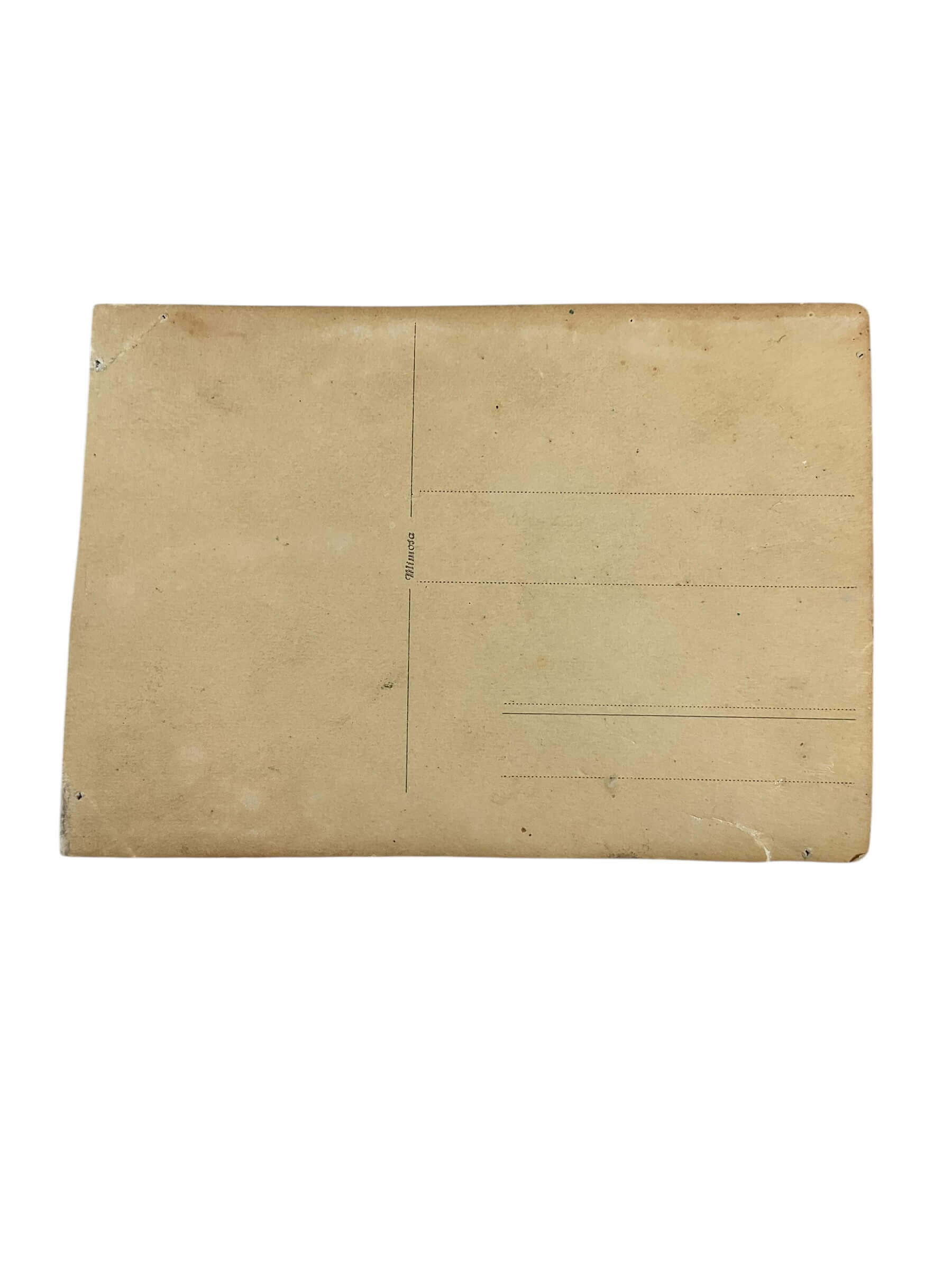 This item is a World War II-era German Luftwaffe Flak photograph postcard, measuring 5 inches by 3 1/2 inches. The postcard features a black-and-white photographic image depicting members of the Luftwaffe, the aerial warfare branch of the German Wehrmacht, operating or positioned with anti-aircraft artillery known as Flak (Flugabwehrkanone). Flak units played a significant role in defending German airspace during the war, engaging allied aircraft with a range of antiaircraft guns. Such photographic postcards were commonly produced and distributed among military personnel and civilians during the period, serving both as correspondence and as documentation of military activities. The reverse side typically provides space for a message, mailing address, and postage. Items of this type are sought after by collectors and historians for their historical value and representation of military technology, uniforms, and daily life within the Luftwaffe during the Second World War.