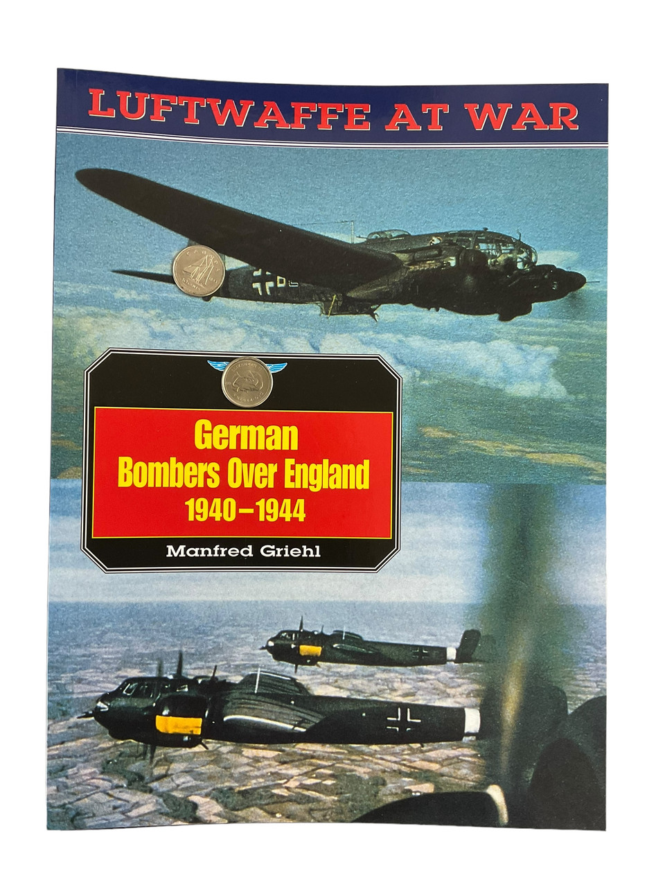 Title: **WW2 German Luftwaffe German Bombers Over England 1940 to 1944 Softcover Reference Book** Description: This detailed softcover reference book examines the German Luftwaffe’s extensive bombing campaigns over England during World War II, spanning from 1940 to 1944. Spanning 72 pages, this used yet well-preserved volume is filled with numerous photographs and in-depth information that offer insights into the strategies, aircraft, and pivotal moments that defined this critical period. Enthusiasts and historians alike will find valuable reference material on the various bombers deployed by the Luftwaffe, as well as the tactical evolutions and the impact of these missions on the war dynamics. Ideal for collectors of military history or those with a specialized interest in aerial warfare, this book serves as a comprehensive guide to understanding one of the most intense aerial campaigns of the 20th century.