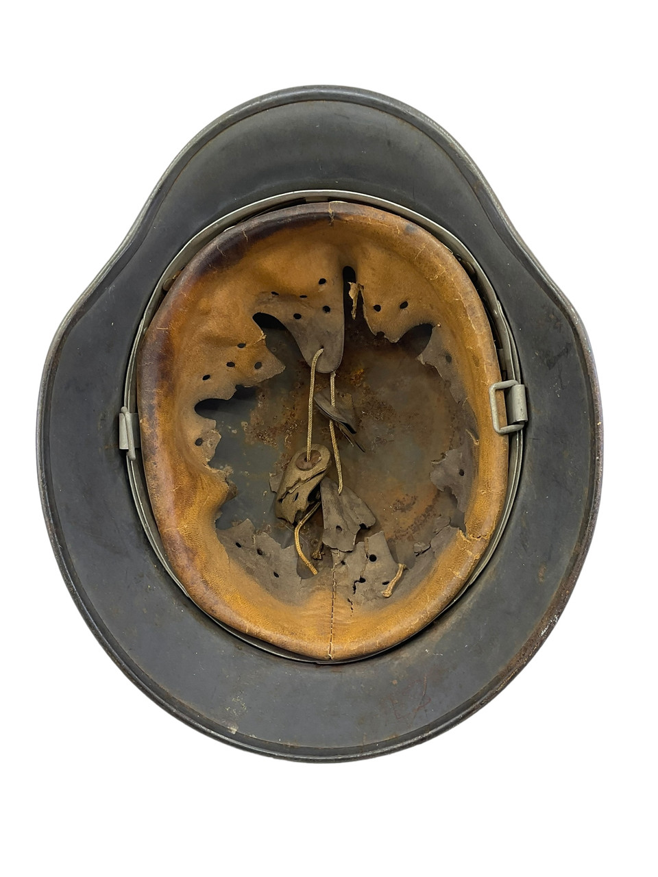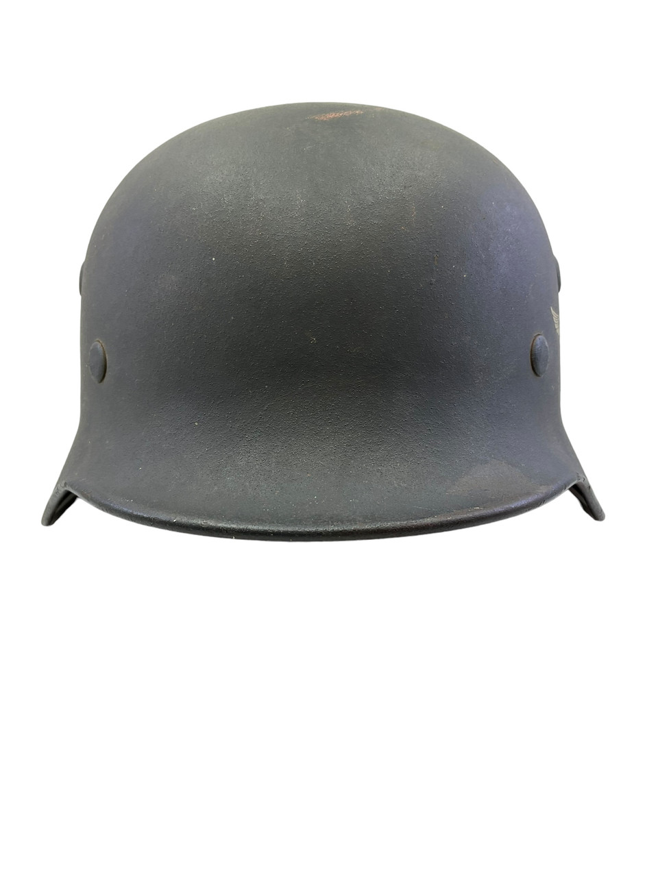 The WW2 German Luftwaffe M40 Single Decal Quist Lot #DN183 is a significant relic from World War II. This helmet is a quintessential representation of German military history, specifically worn by the Luftwaffe, the aerial warfare branch of the Wehrmacht. Notably, it features a single decal, emblematic of the period when dual decals were phased out to conserve resources. Manufactured by Quist, a reputed German helmet producer, this M40 model is celebrated for its robust construction and distinctive design. Lot #DN183 suggests a particular production run, adding to its collectible value. With its authentic markings and historical wear, the helmet offers a poignant glimpse into the soldier’s experiences and the broader wartime narrative. Whether for a history enthusiast or a dedicated collector, this piece stands as a testament to the craftsmanship and the tumultuous era it originated from.
