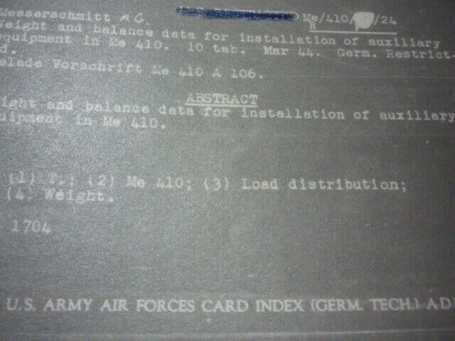 WW2 German Luftwaffe Me410 Weight Balance Manual