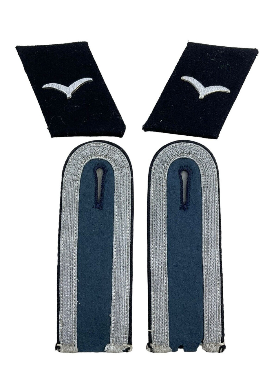 Title: WW2 German Luftwaffe Pioneer Shoulder Boards and Collar Tabs Pair Description: This authentic pair of WW2 German Luftwaffe Pioneer Shoulder Boards and Collar Tabs offers a fascinating glimpse into military history. Designed for the prestigious pioneer units of the Luftwaffe, these insignias were an integral part of the uniform, signifying rank and role within the aviation engineering divisions. The shoulder boards feature intricate silver braiding, denoting the wearer’s status, while the collar tabs are adorned with distinct metallic embroidery, representing the elite engineering corps. Crafted with meticulous attention to detail, these pieces provide a tangible connection to the past and are an invaluable addition for collectors and historians alike. Perfectly preserved, they serve as a tribute to the engineering prowess and contributions of the Luftwaffe pioneers during the tumultuous years of World War II.