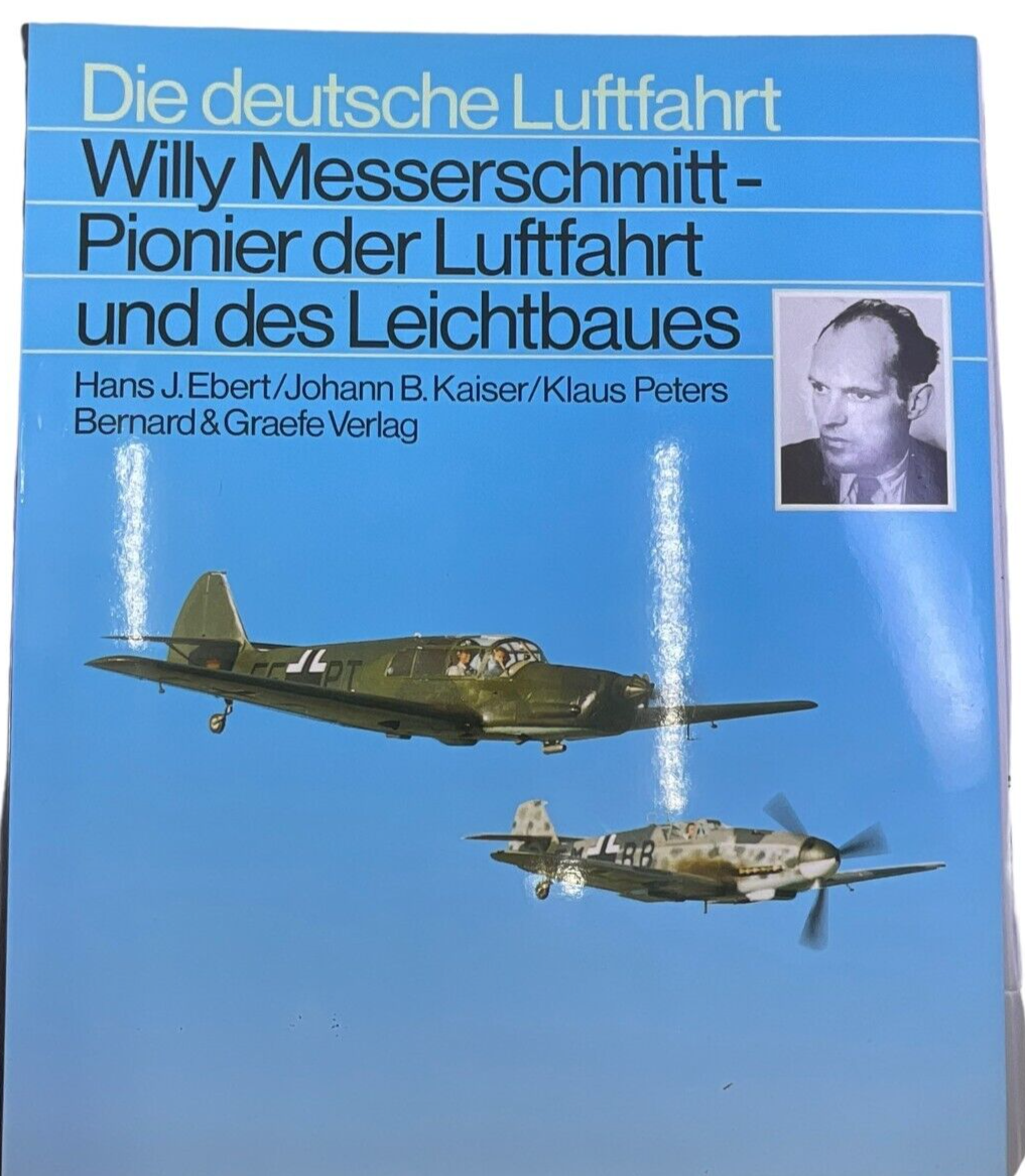 This is a used hardcover WW2 German Luftwaffe Willy Messerschmitt Pioneer of Aviation and Lightweight Construction German Aviation Die Deutsche Luftfahrt Willy Messerschmitt Pionier Der Luftfahrt Und Des Leichtbaues GERMAN TEXT Reference Book.  Total of 414 pages with lots of pictures and information.