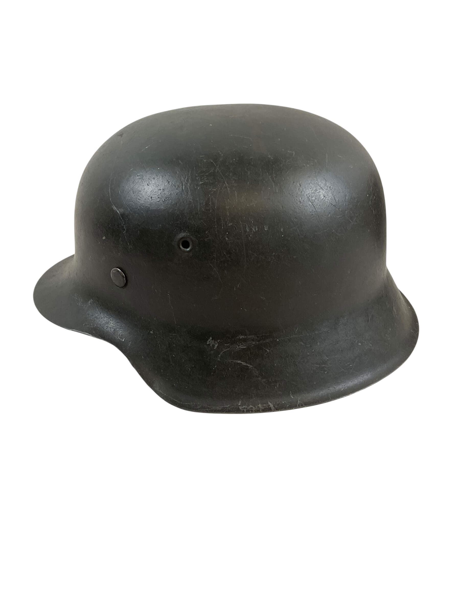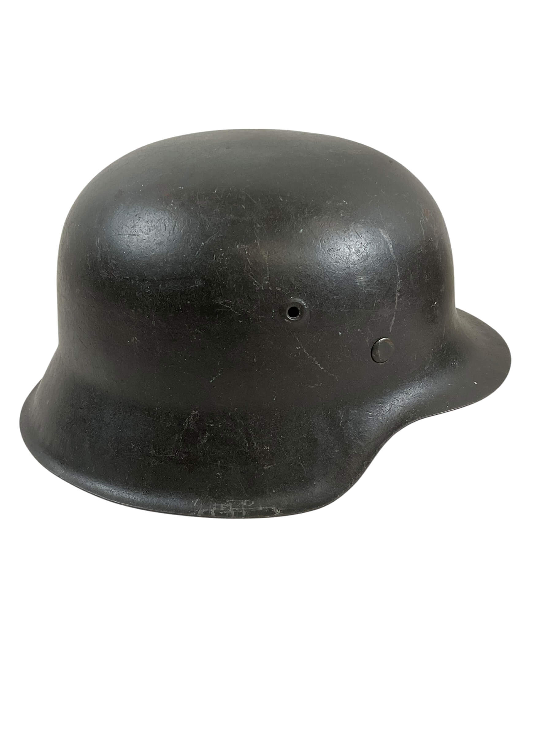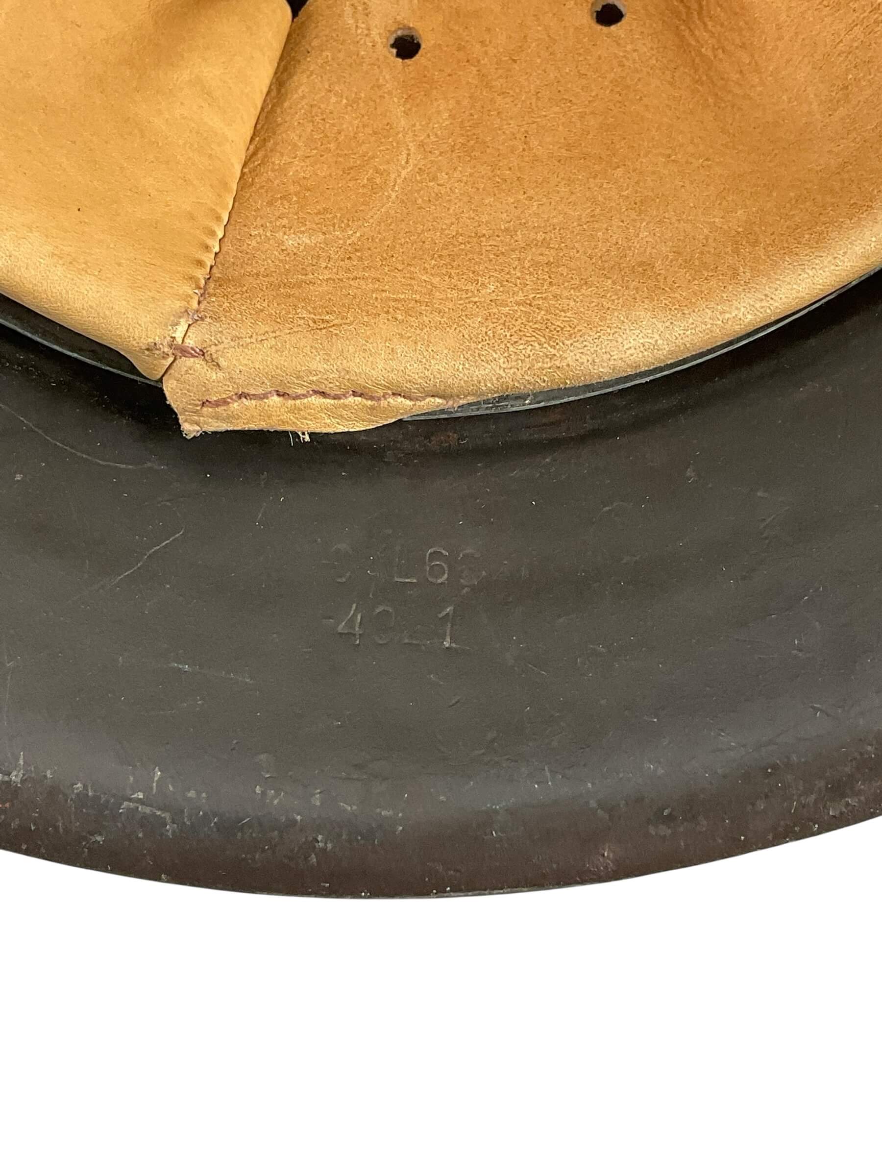 This is an authentic WW2 German M42 Steel Helmet, a classic piece of military history. The ‘CKL66′ signifies it was manufactured by Eisenu. und Stahlwerke, Thale/Harz, a prominent producer during that era. The ’66’ indicates the size of the helmet, suitable for those with a head circumference of approximately 58-59cm. This specific helmet is a part of Lot 4921, a batch of preserved war collectibles. It is unissued, meaning it never made its way to the battlefield, hence retains its original condition. The M42 design is characterized by its raw edge, a result of simplified production techniques during the war. This helmet serves as a significant artifact, embodying the stark realities of World War II, making it a valuable addition to any military history collection.