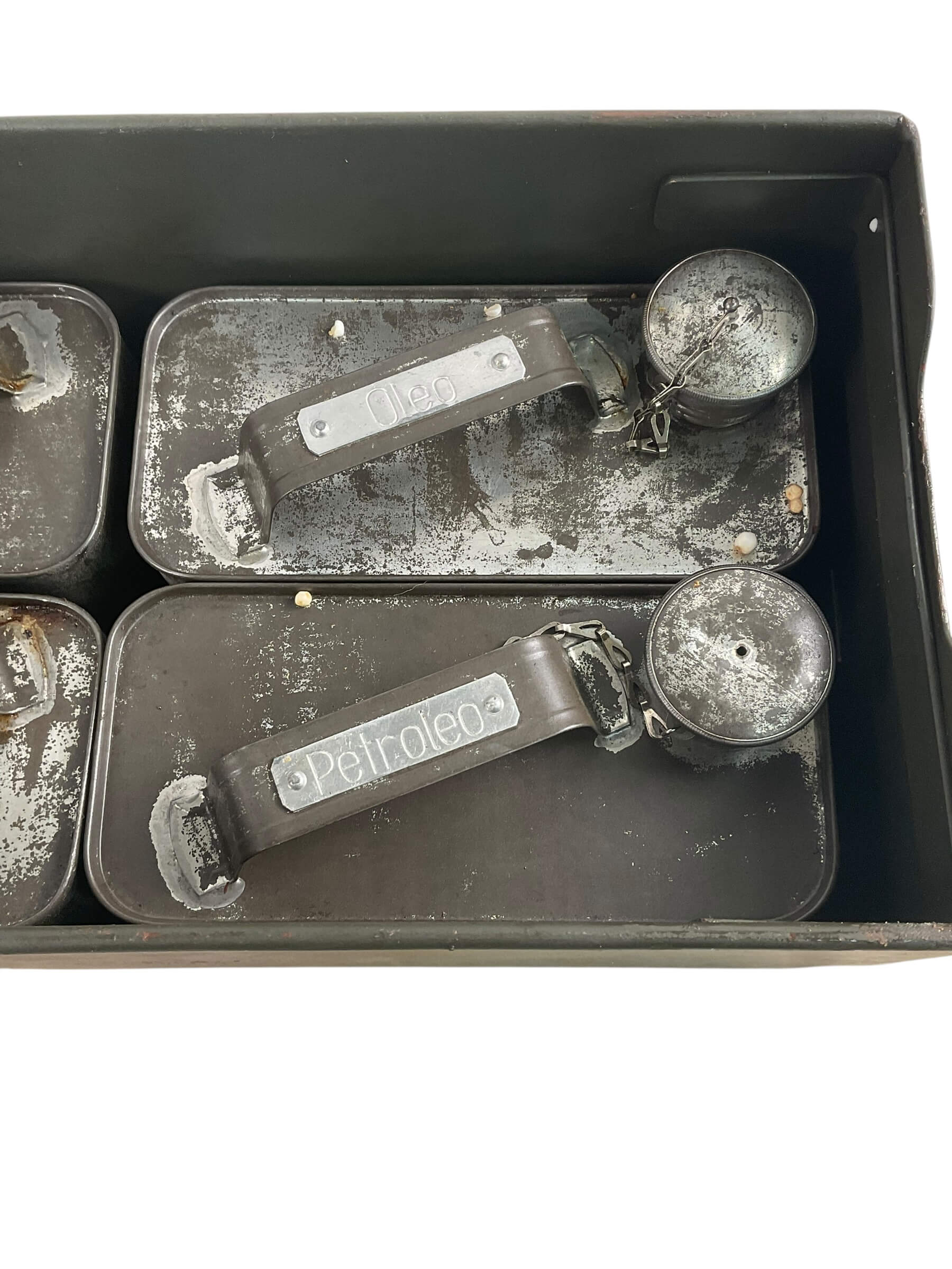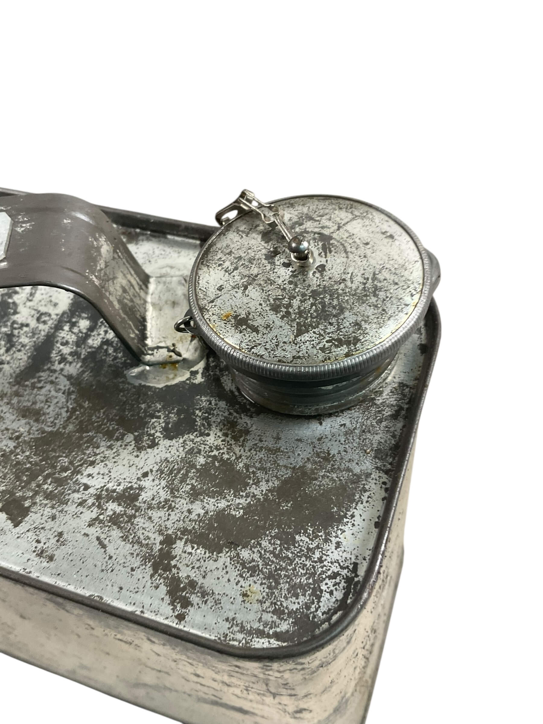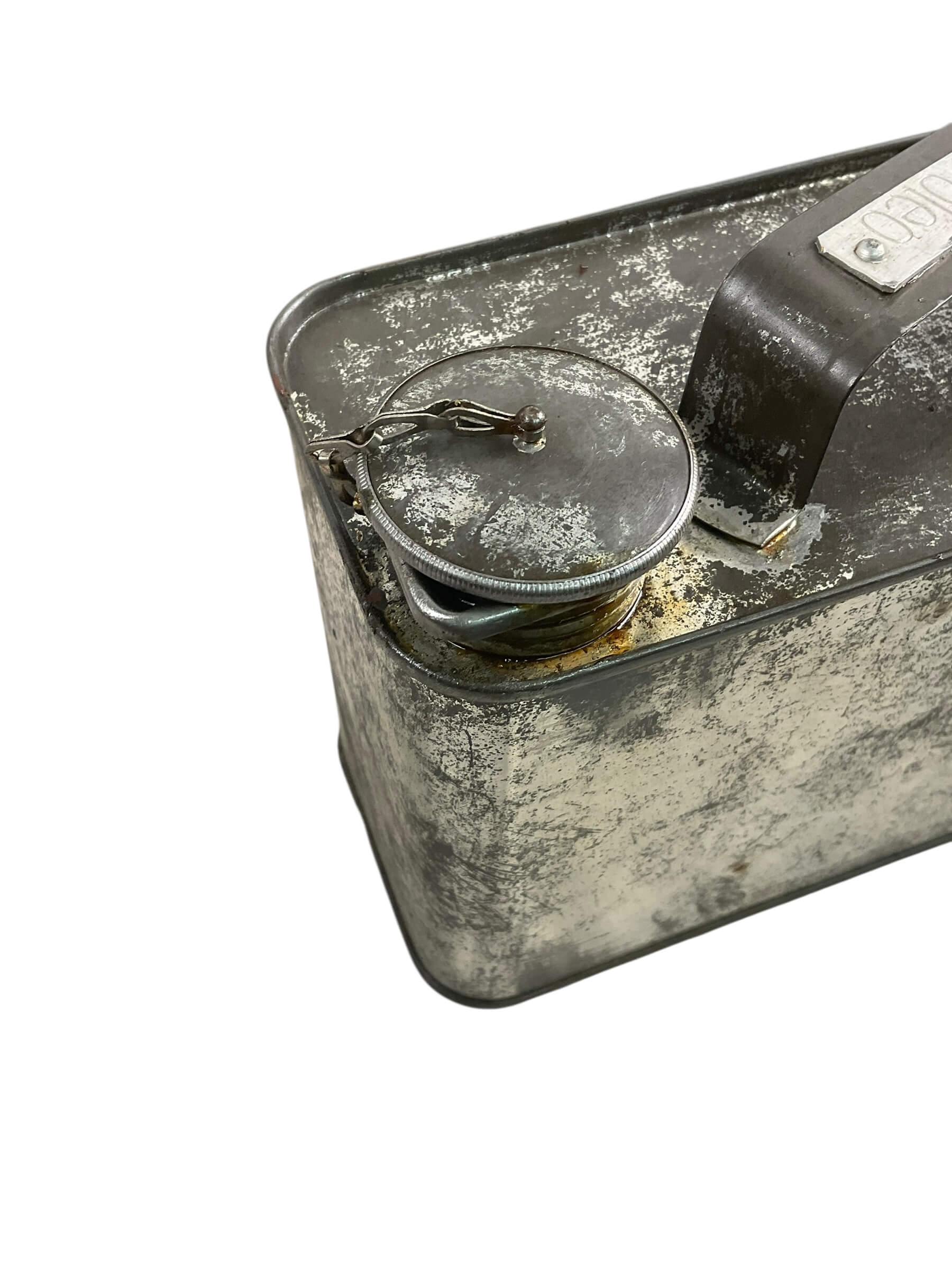 The WW2 German MG13 Camouflage Tin with Spanish Oilers is a historical artifact measuring 15″ x 7″ x 7″. Originally used during the Second World War, it is a German-made military storage box, distinct for its camouflage painting. It includes Spanish oilers, which were vital for machine gun maintenance.