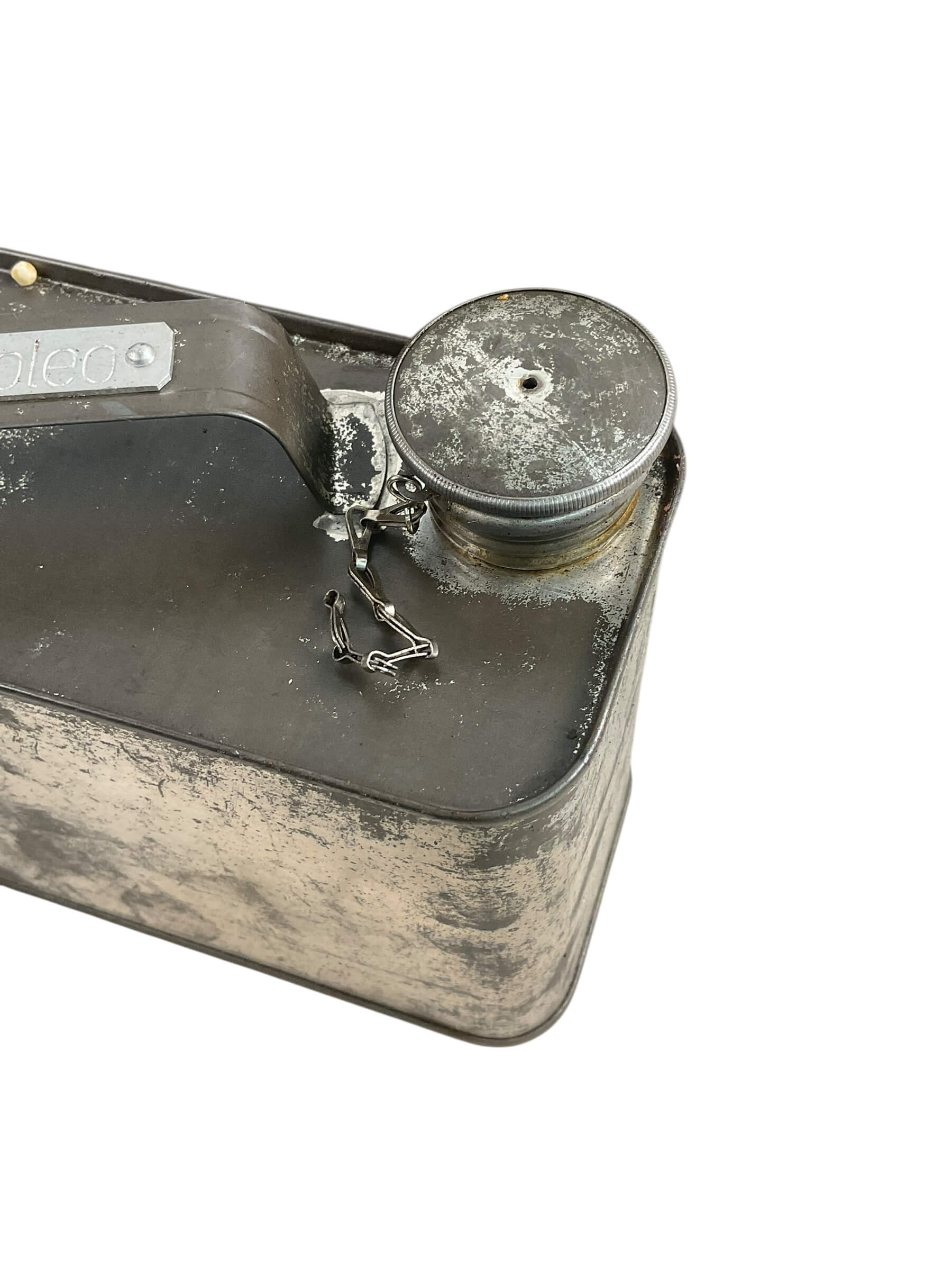 The WW2 German MG13 Camouflage Tin With Spanish Oilers is a historical artifact primarily used during the Second World War. Measuring 15″ X 7″ X 7″, this robust storage container was originally designed to house and transport an MG13, one of the iconic light machine guns used by the German Wehrmacht and other divisions. Certain characteristics of this tin include its durable metal construction, secure latching mechanism, and distinctive camouflage paint, features that were essential for field use. The inclusion of Spanish Oilers signifies the collaborative military efforts between Germany and Spain during this era. These Oilers were used for maintenance of firearms, ensuring their efficient functionality even in harsh conditions. The tin’s condition, craftmanship, and associated historical context make it a noteworthy object. It is a testament to the ingenuity and resourcefulness applied in creating practical solutions during challenging times of war. Please note that evaluations or affirmations about the authenticity of the artifact should primarily come from a certified expert in the field.