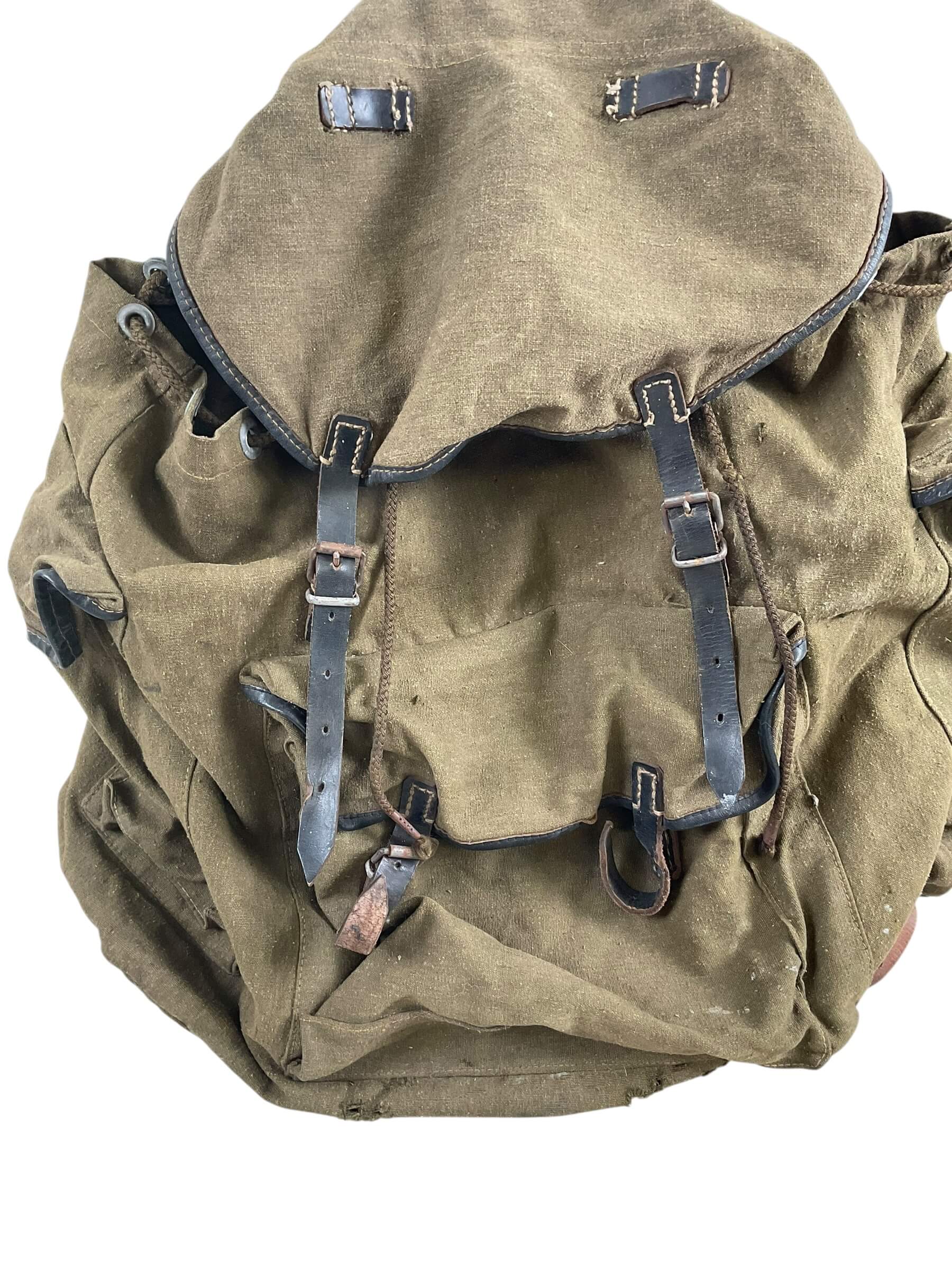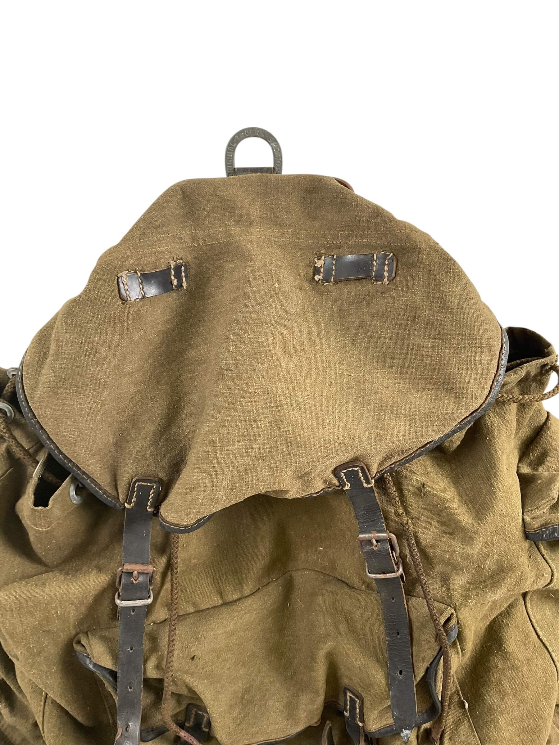 The WW2 German Mountain Troops Gebirgsjäger Reinforced Rucksack is a remarkable piece of military history, embodying the resilience and determination of the Gebirgsjäger, the elite mountain warfare units of the German Wehrmacht during World War II. This rucksack is designed to withstand the harsh conditions of the alpine terrain, with a sturdy, reinforced construction that is both durable and reliable. It features multiple compartments for organized storage and comfortable shoulder straps for easy carrying, reflecting the practicality and efficiency demanded by the rigors of mountain warfare. It stands as a testament to the ingenuity of German engineering and the ruggedness of the Gebirgsjäger troops. This rucksack is not just a bag, but a tangible link to the past, evoking images of German soldiers navigating treacherous mountain paths under extreme conditions.