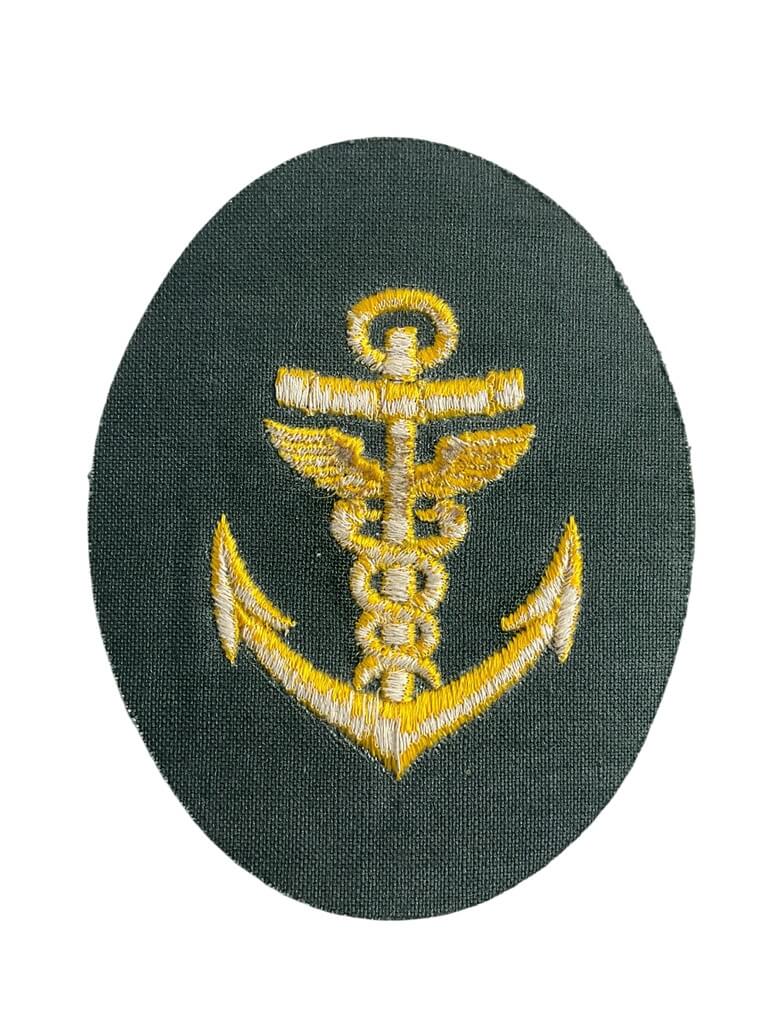 The WW2 German Navy Kriegsmarine Medical Petty Officer Sleeve Patch is a historical emblem representing one of the designations within the naval forces during the Second World War. It signifies the role of a Medical Petty Officer within the Kriegsmarine – the navy branch of the German military from 1935 to 1945. The patch features a distinctive design heavily influenced by Nazi symbolism, incorporating elements such as an eagle atop a swastika against the backdrop of an anchor, a symbol traditionally associated with naval forces. The patch offers insights into the structure, roles, and insignia of the WW2 German military hierarchy. As a specific indicator of the medical officer rank within the Kriegsmarine, this sleeve patch symbolizes a unique component of naval military history in the mid-20th century. Authenticity and appropriate historical context should be maintained while handling or displaying this artifact.