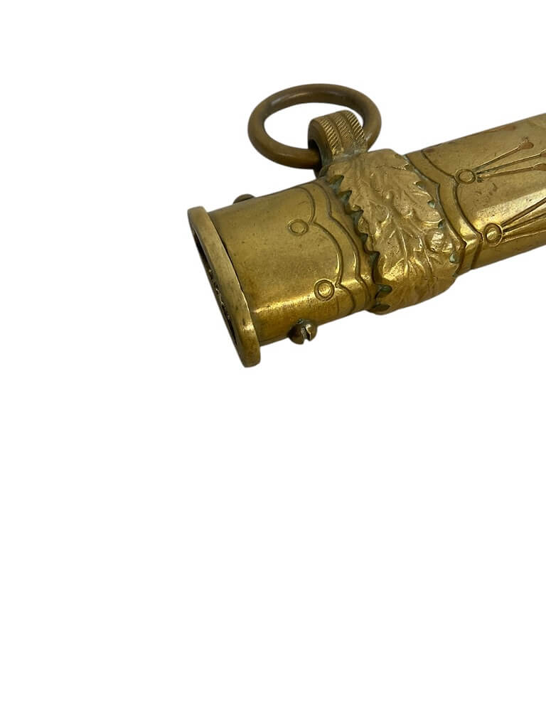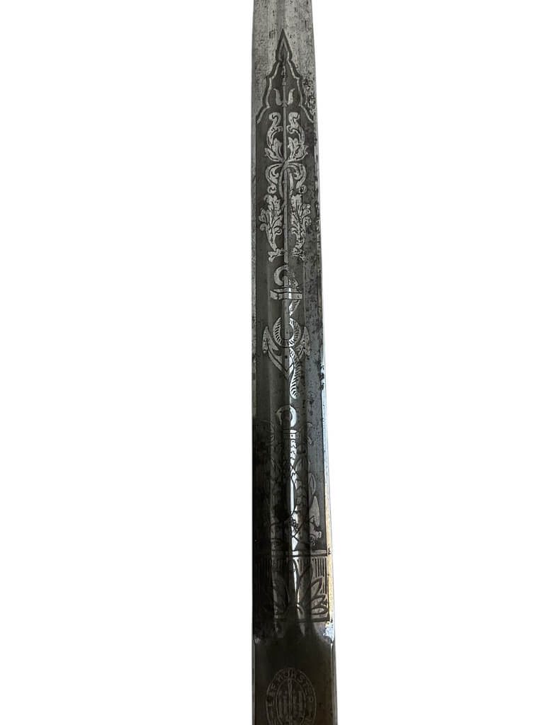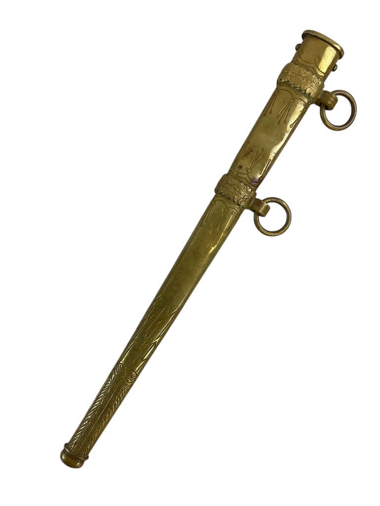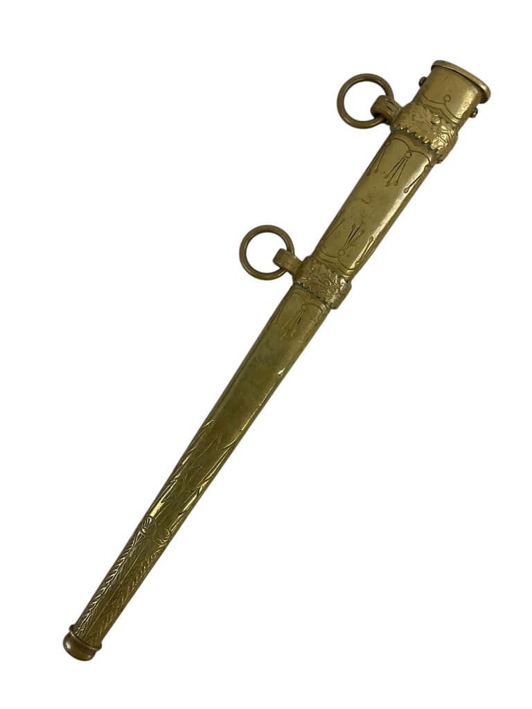 The WW2 German Navy Kriegsmarine Officers Dagger with Scabbard is an authentic piece of military history, crafted by the renowned EF Horster company. This dagger is characterized by its strikingly ornate design, typical of the Kriegsmarine (German Navy) during World War II. The beautiful craftsmanship features intricate engravings and a sturdy, double-edged steel blade that could tell a thousand tales. The accompanying scabbard is equally appealing, with its detailed embossments and solid construction. This dagger is not only a weapon but a symbol of rank, power, and authority among German naval officers during the war. As a product of EF Horster, a company known for its high-quality military antiques, this Kriegsmarine Officers Dagger is a highly collectible piece. It offers a tangible glimpse into the past, making it a must-have addition for any WWII memorabilia collector.
