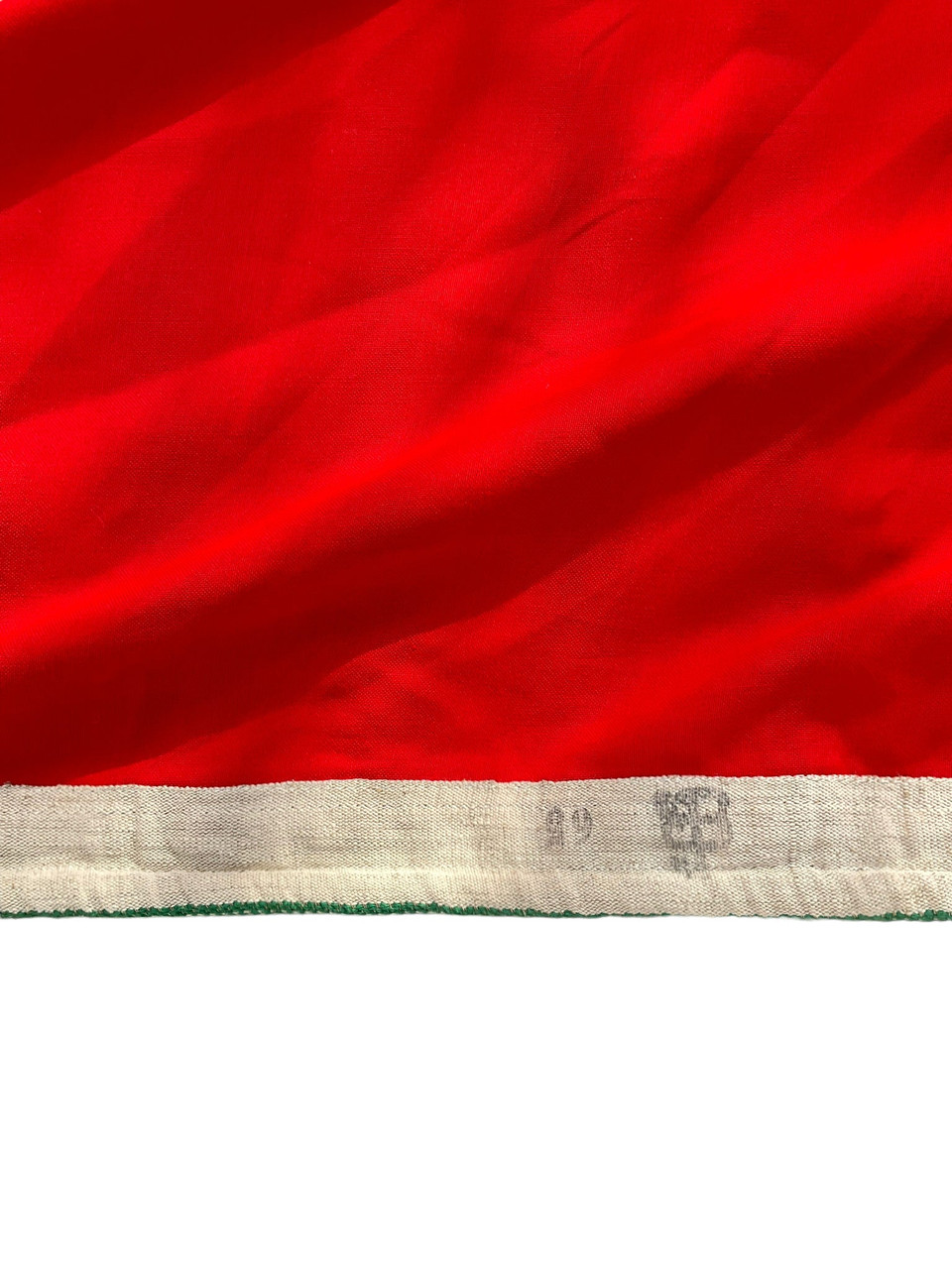 The WW2 German Navy Kriegsmarine State Service Reichsdienstflagge is a historically significant artifact from the era of the Second World War. Measuring 192 cm by 348 cm, this impressive flag served as a key identity symbol for the German Kriegsmarine, or Navy. Emblazoned with distinctive insignia characteristic of the period, this flag represents the authoritative presence and maritime pride of the German naval forces. Ideal for historians, collectors, and enthusiasts of military memorabilia, the Reichsdienstflagge offers a palpable connection to naval operations during WW2. Its substantial size and detail reflect the grandiose and formal symbolism employed by the German state service, making it a compelling piece for display in museums, exhibitions, or private collections dedicated to military history. This flag is more than just a piece of fabric; it is a storied relic from a pivotal period in global history.