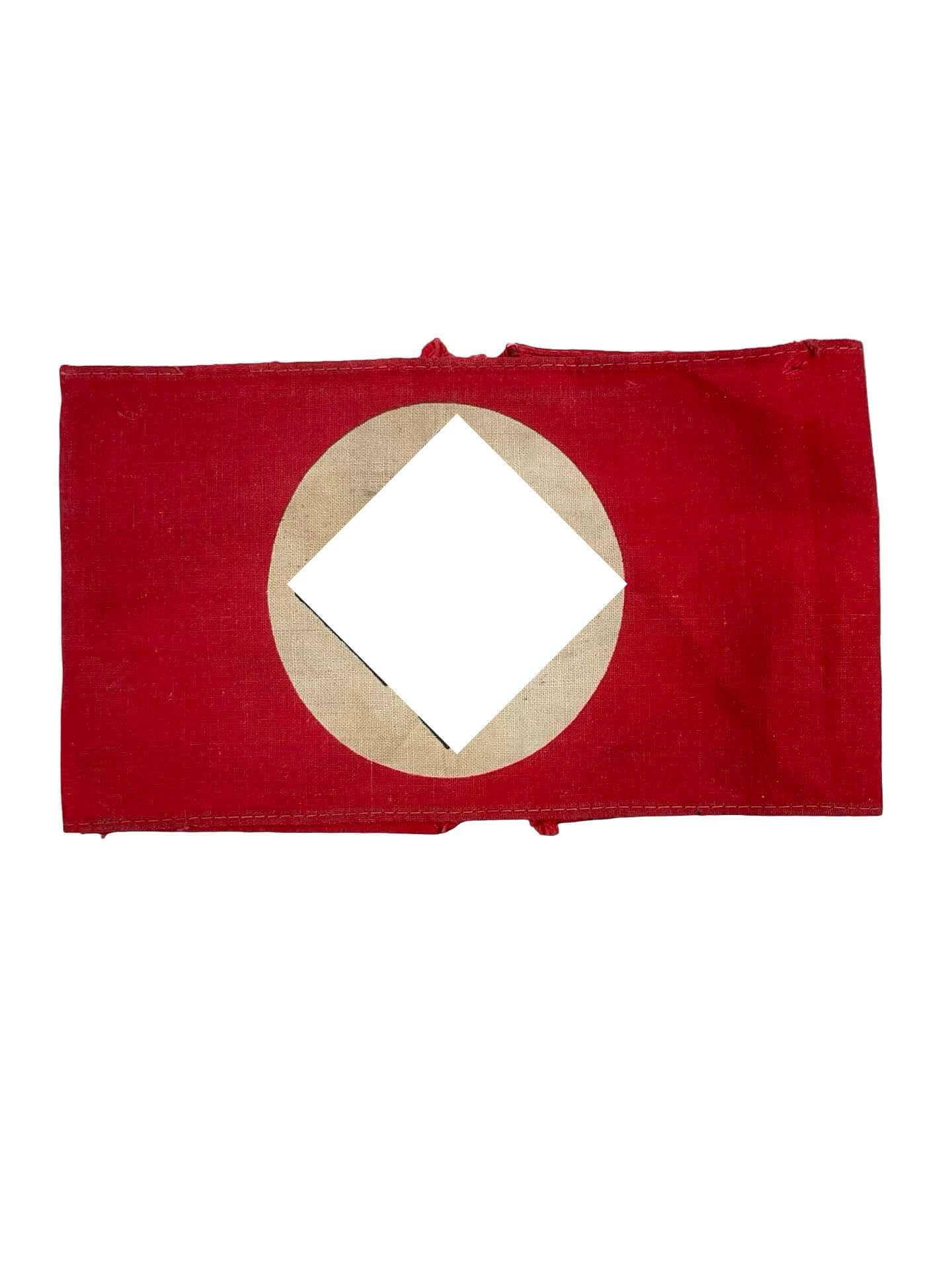 The WW2 German NSDAP Supporter Printed Armband is a historical artifact representing civilian affiliation with the National Socialist German Workers’ Party (NSDAP) during the period of the Third Reich. Commonly worn by supporters at rallies, public gatherings, or events, this armband features the party’s printed insignia on a red cloth band, typically displaying a central white circle with a black swastika. The armband was intended to signal allegiance and facilitate identification of party supporters. It was produced in large quantities for non-military use, distinguishing it from the armbands issued to military or official personnel. Such artifacts offer insight into the visual symbolism and organizational practices of the era. The armband measures approximately 9 to 10 cm in width and is designed to be worn on the upper arm. As with all items from this period, it serves as a piece of material history and should be understood within its historical context.