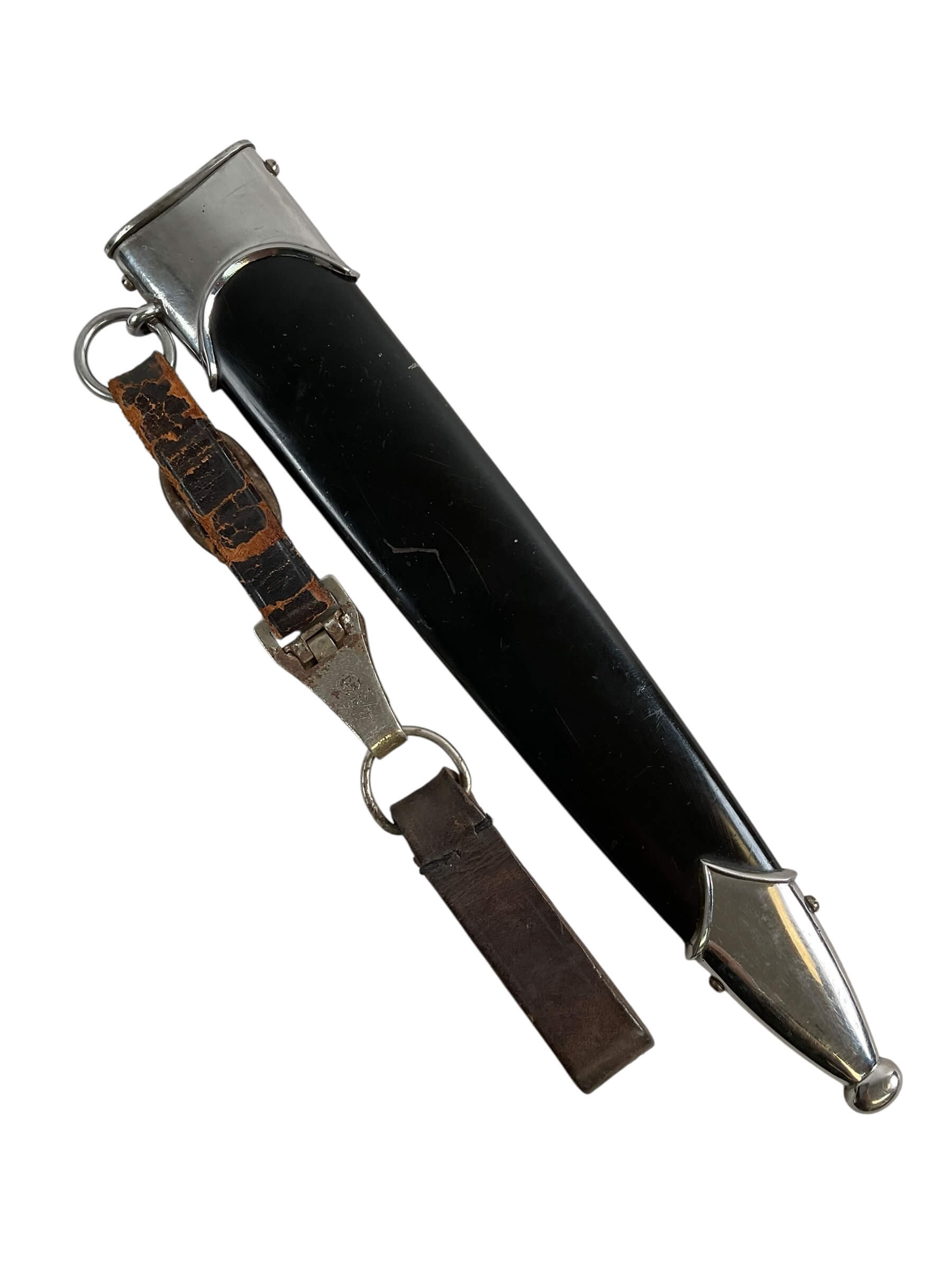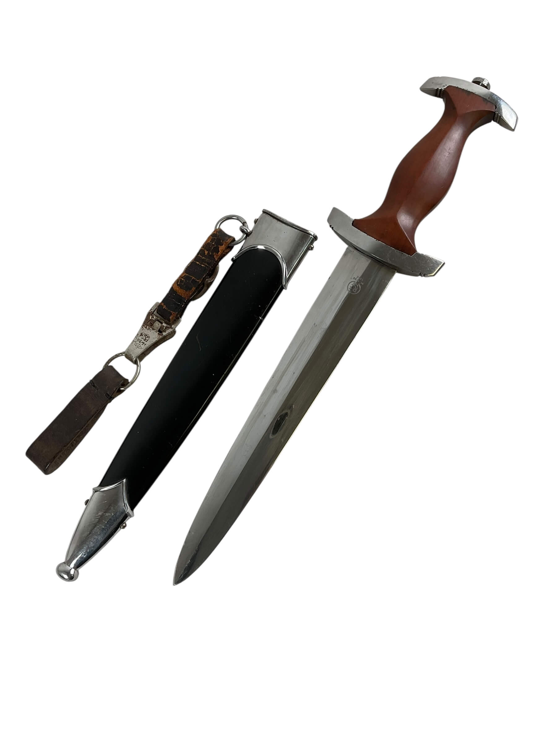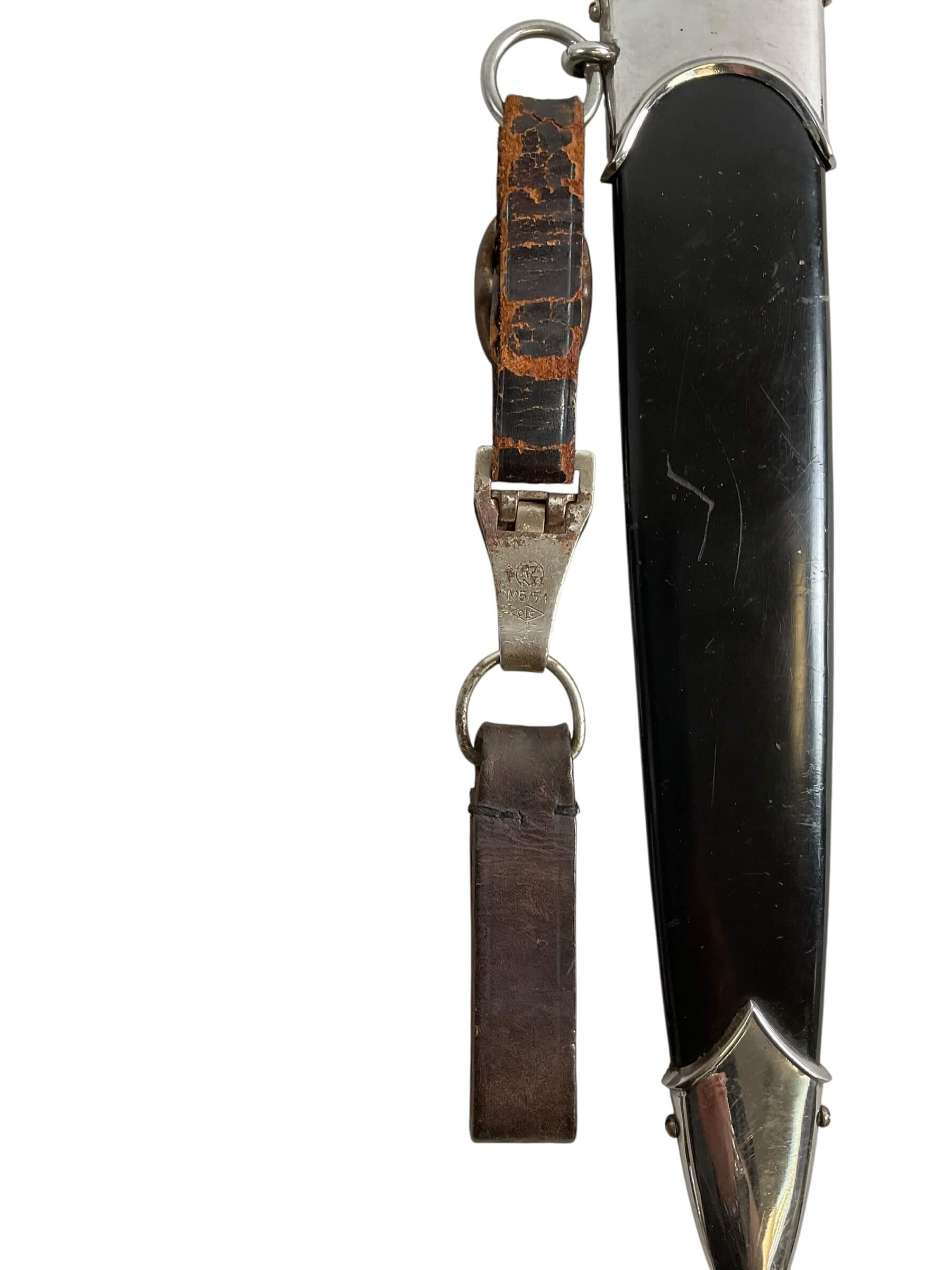This WW2 German NSKK Parts Dagger With Scabbard RZM M7/66 Maker is a historical artifact steeped in history. The dagger is a relic from the Nationalsozialistisches Kraftfahrkorps (NSKK), a paramilitary organization of the German Nazi Party that existed from 1931 to 1945. The piece comes with a scabbard, offering a complete, authentic experience of the era. The RZM M7/66 maker’s mark attests to its originality, with the RZM indicating it was made under the Reichszeugmeisterei, the equipment office of the Nazi Party. The dagger is a testament to the craftsmanship of the time with its intricate detailing. It is a valuable addition to any World War II collection, offering a tangible connection to a significant period in world history.