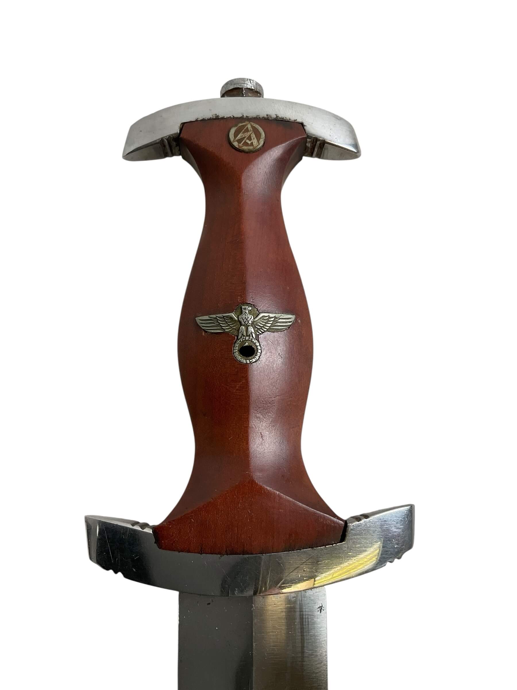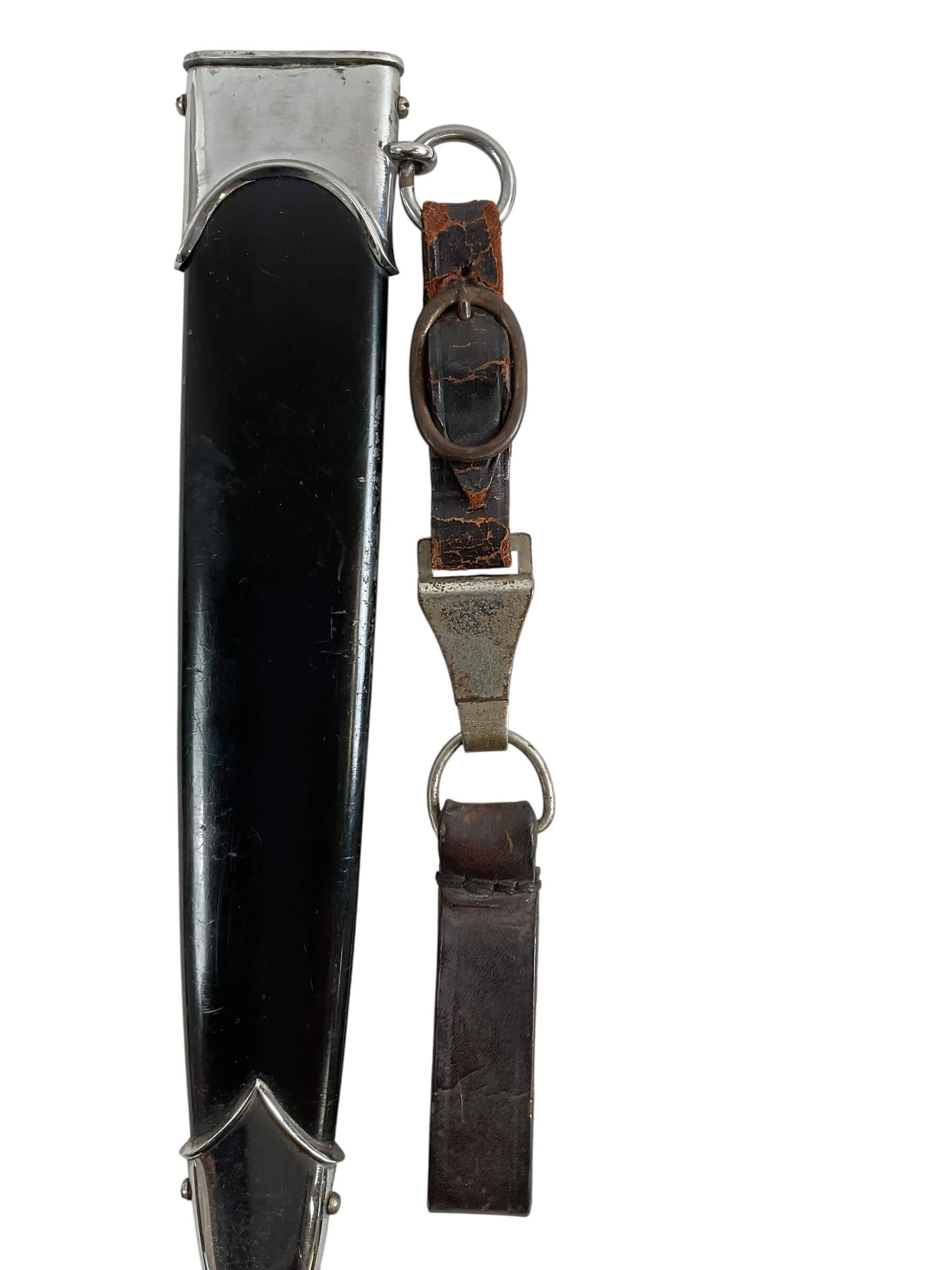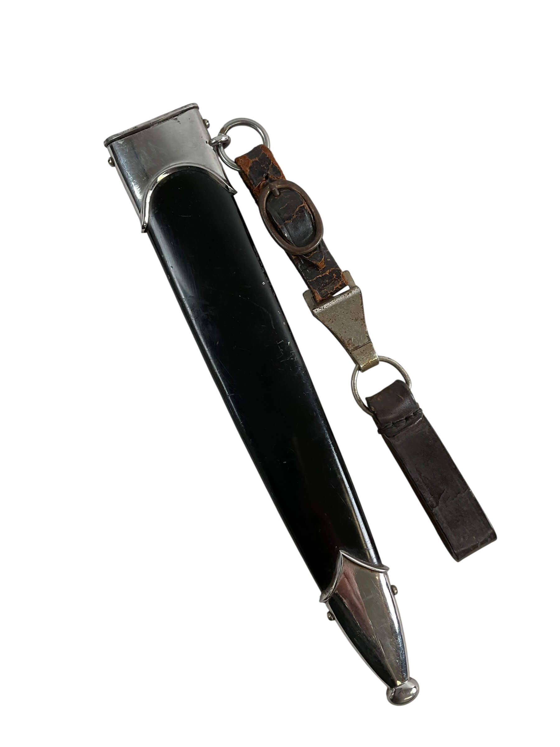 This WW2 German NSKK Parts Dagger With Scabbard RZM M7/66 Maker is a historical artifact steeped in history. The dagger is a relic from the Nationalsozialistisches Kraftfahrkorps (NSKK), a paramilitary organization of the German Nazi Party that existed from 1931 to 1945. The piece comes with a scabbard, offering a complete, authentic experience of the era. The RZM M7/66 maker’s mark attests to its originality, with the RZM indicating it was made under the Reichszeugmeisterei, the equipment office of the Nazi Party. The dagger is a testament to the craftsmanship of the time with its intricate detailing. It is a valuable addition to any World War II collection, offering a tangible connection to a significant period in world history.