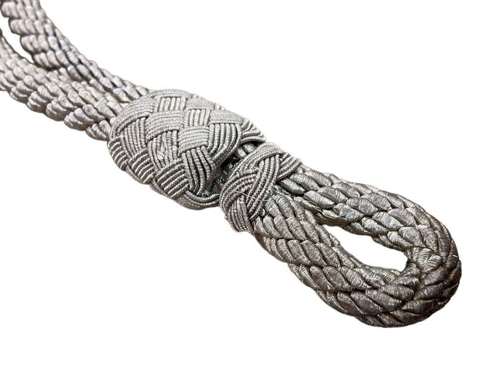 The WW2 German Officers Silver Chin Strap for Peak Cap is a meticulously crafted reproduction of the original accessory worn by German officers during World War II. Made from high-quality silver-toned metal, this chin strap adds a touch of authenticity and historical accuracy to any collection or reenactment ensemble. Designed specifically for peak caps, it features intricate detailing and sturdy construction, ensuring durability and a snug fit. The strap not only enhances the aesthetic appeal of the cap but also serves as a practical fastening mechanism, keeping the headwear securely in place. This piece is ideal for collectors, history enthusiasts, and reenactors looking to complete their period-accurate German officer’s uniform. Whether displayed as a part of a historical collection or used in living history events, the WW2 German Officers Silver Chin Strap for Peak Cap stands as a testament to the detailed craftsmanship of wartime military attire.