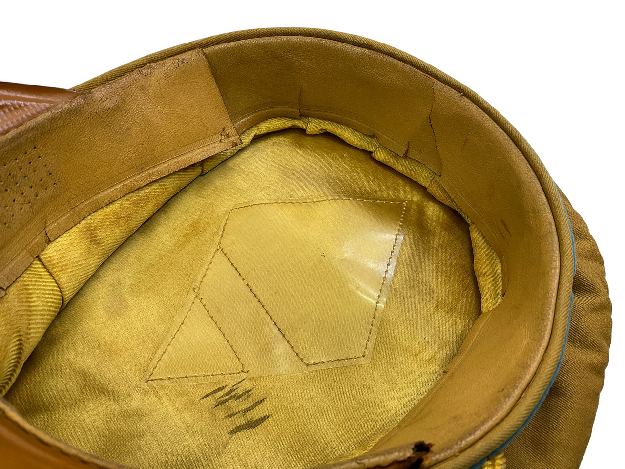 The WW2 German Ortsgruppe Political Leaders Visor Peak Cap with RZM Label is a distinctive and historically significant piece of military attire from World War II. This cap was worn by local political leaders within the Nazi Party, known as Ortsgruppenleiter. Crafted with meticulous detail, it features the traditional visor peak and is adorned with the original RZM label, authenticating its production during the era. The cap typically includes insignia such as the eagle and swastika emblem, and it may have gold piping and ornate embroidery that signify rank and affiliation. As a piece of militaria, it offers a tangible connection to the complex history and hierarchical structure of the Third Reich, providing collectors and historians with a profound artifact for study and preservation. Its well-preserved condition and provenance make it a noteworthy addition to any serious collection of World War II memorabilia.