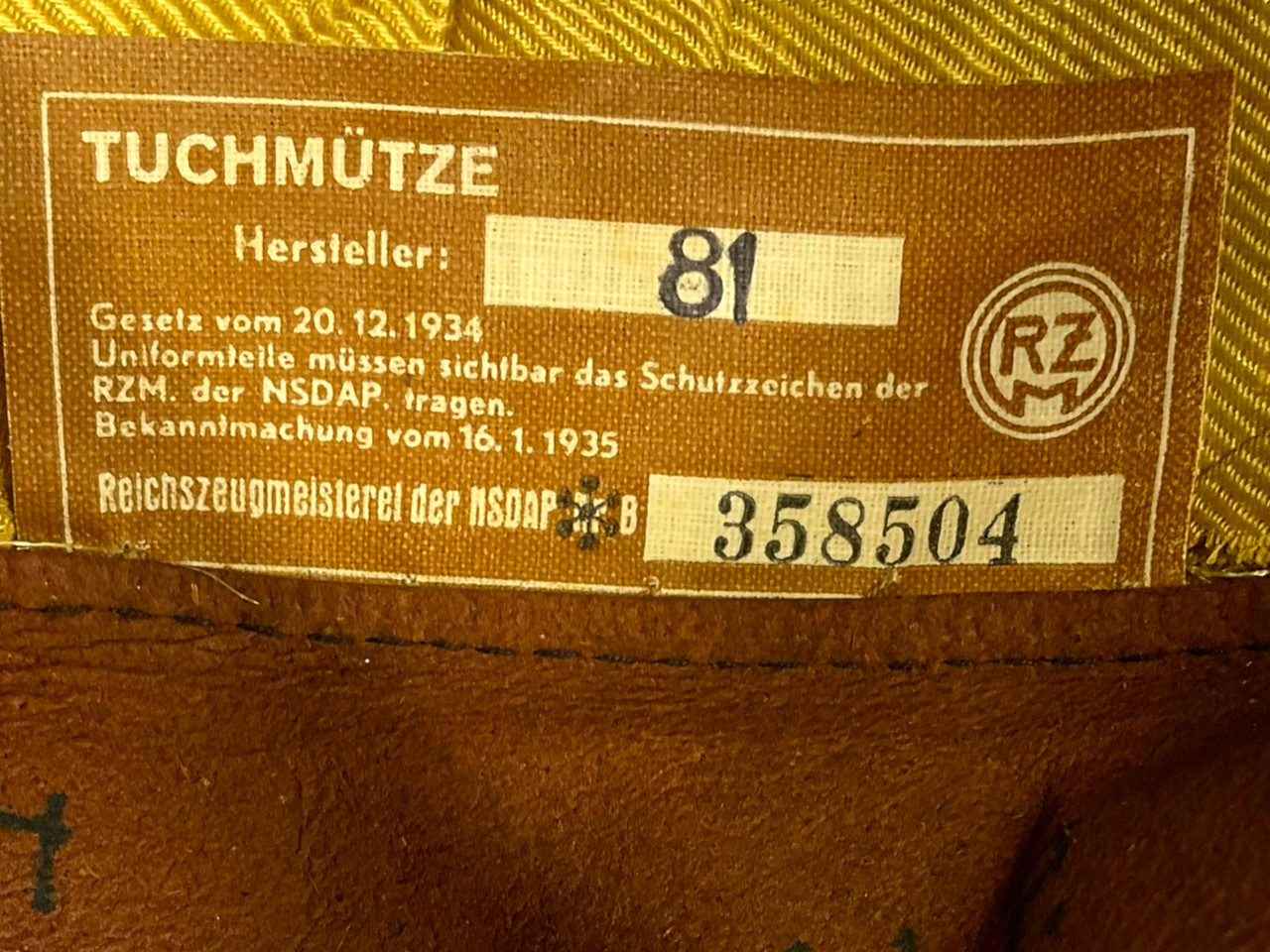 WW2 German Ortsgruppe Political Leaders Visor Peak Cap With RZM Label