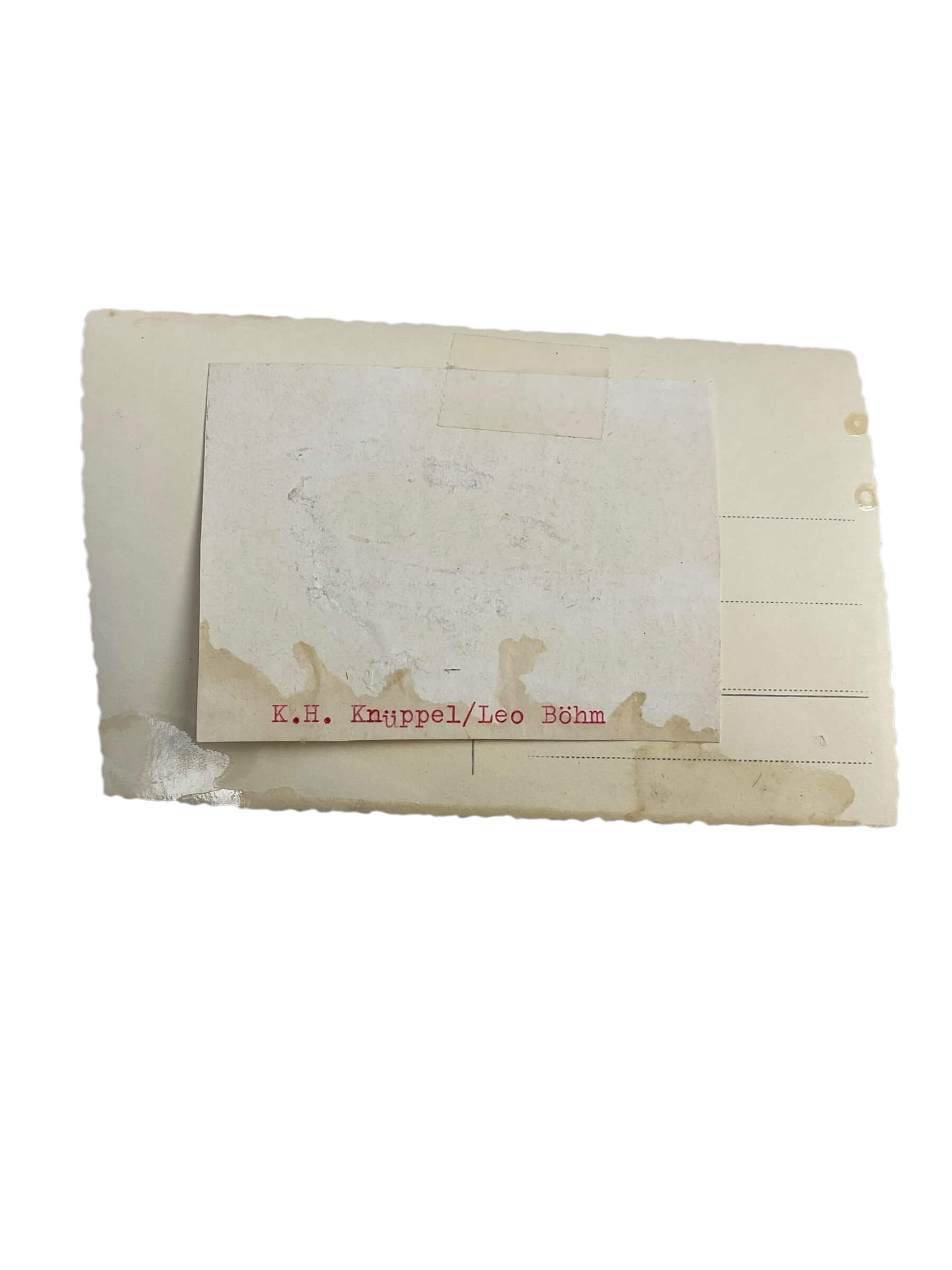 This original World War II German photograph depicts an enlisted soldier, often referred to as “Other Ranks,” wearing uniform consistent with those issued during the period. The subject is shown in formal pose, with visible Eastern Front Medal (Winterschlacht im Osten 1941/42, also known as the Ostmedaille) ribbon worn through the top buttonhole of the tunic. This medal was awarded for service on the Eastern Front during the harsh winter campaign against the Soviet Union between November 1941 and April 1942. The portrait offers authentic detail, capturing insignia, uniform features, and facial characteristics representative of German Army personnel of the era. Such photographs provide valuable reference for collectors and historians studying military dress, decorations, and documentation from WWII. Dimensions, photographic medium, and period-appropriate wear are visible, consistent with vintage military photographic prints. The reverse of the photograph is plain, with no inscriptions or studio marks.