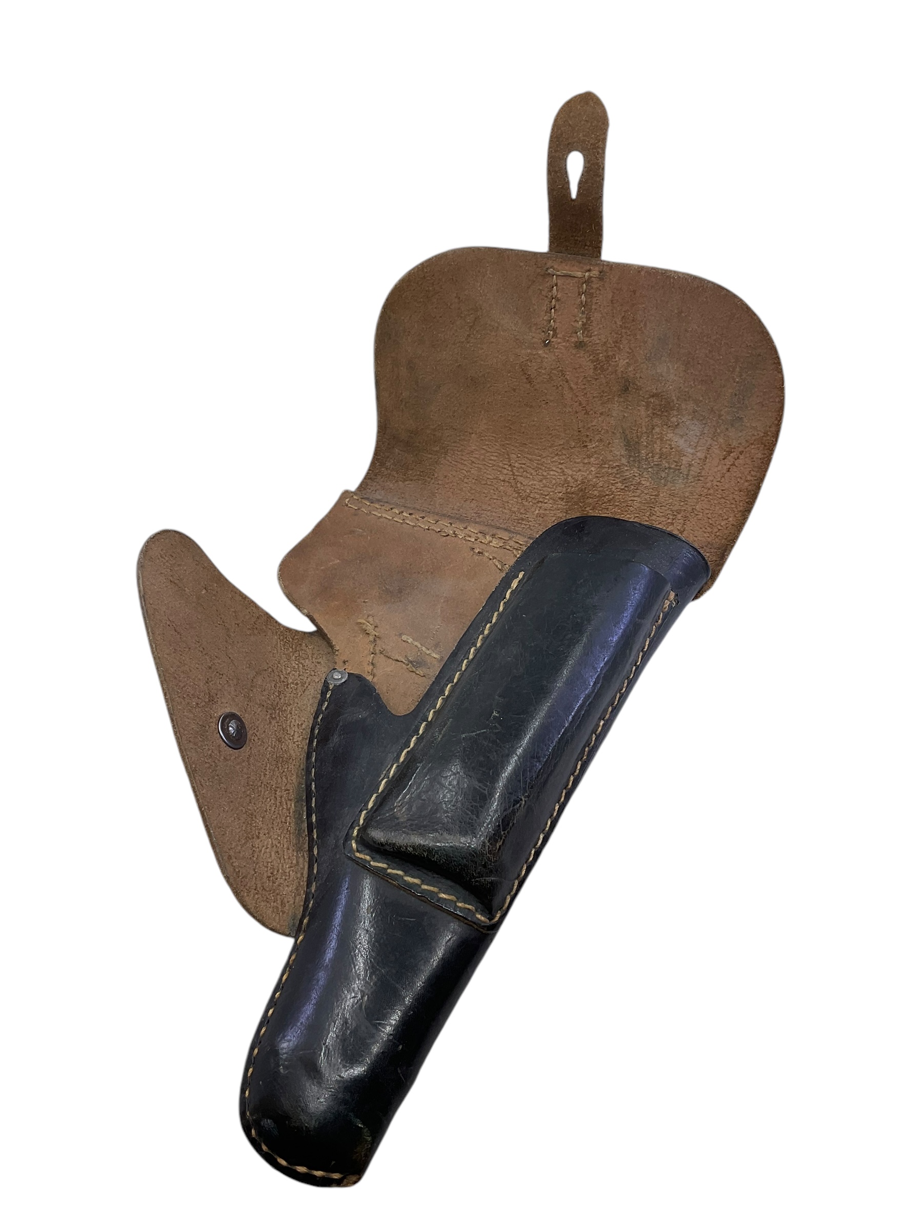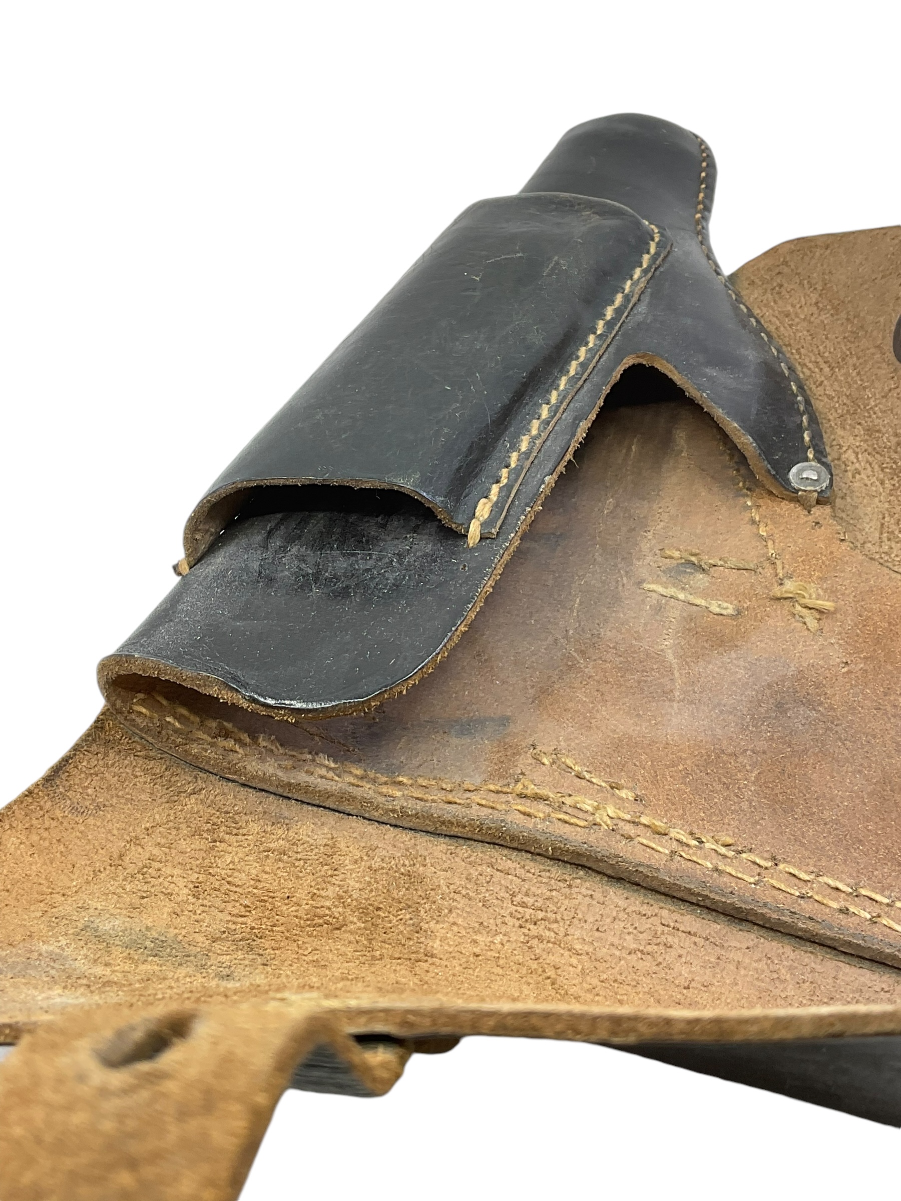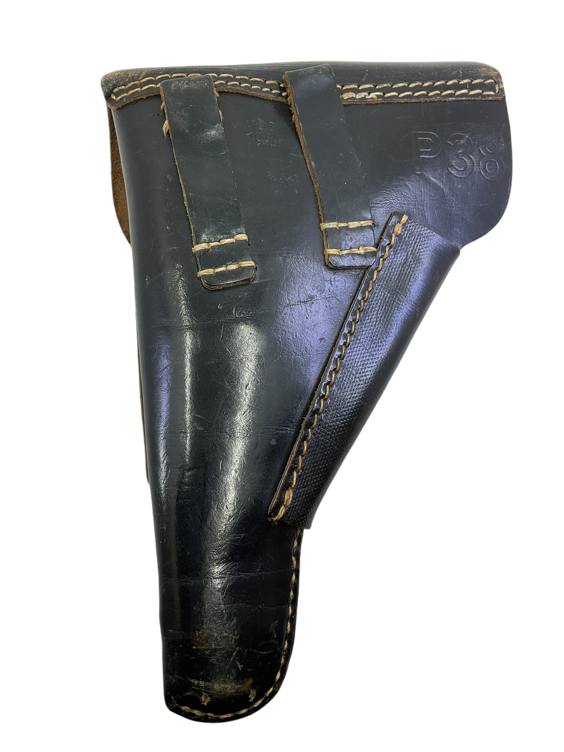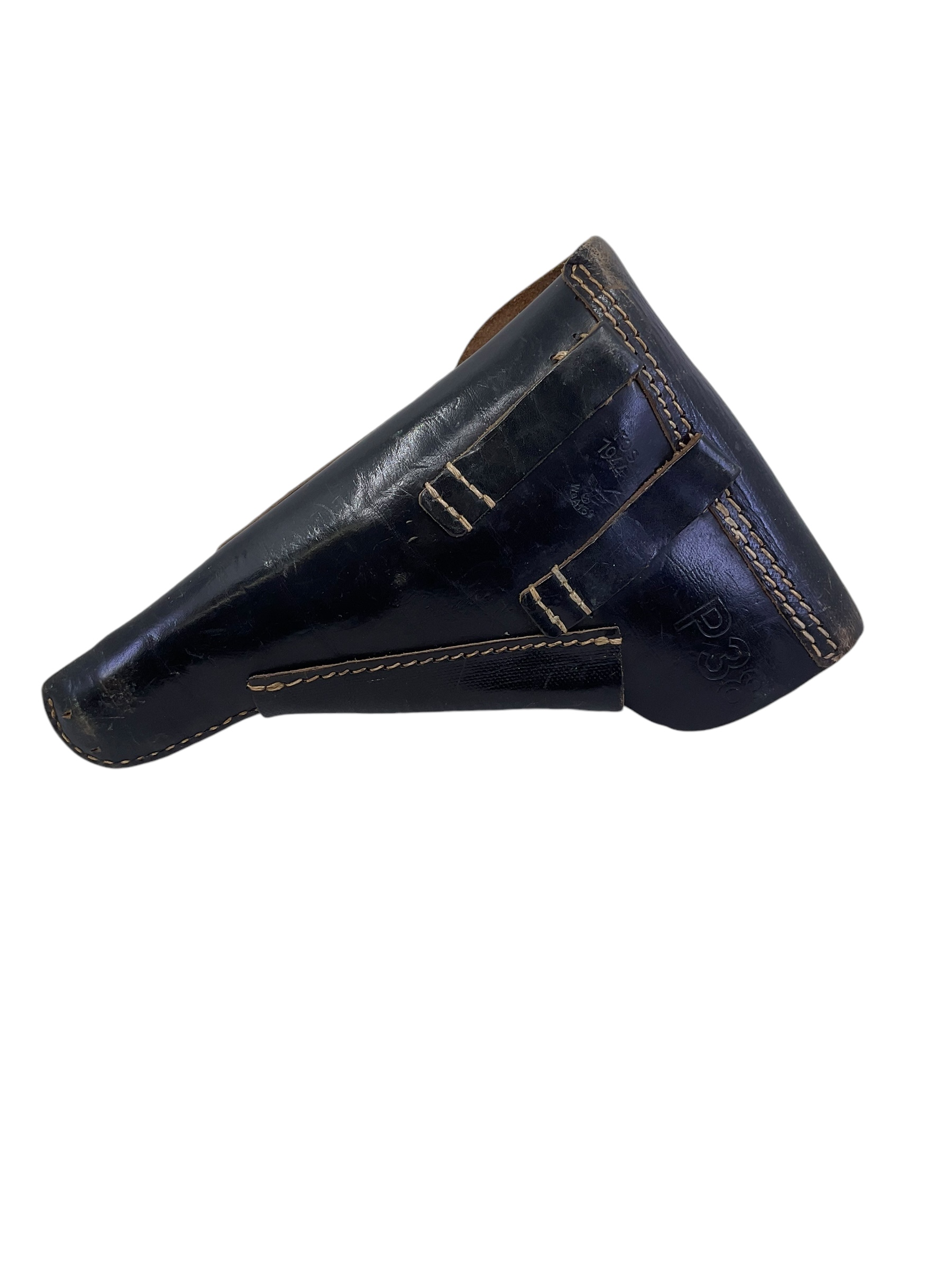 This WW2 German P38 Leather Holster is a genuine piece of history, dating back to 1944. Crafted to hold the popular Walther P38, the standard issue sidearm of the German Wehrmacht, this holster is made from sturdy, high-quality leather, reflecting the care and precision ubiquitous in German wartime manufacturing. Its rich, time-worn patina tells a story of its service in the heat of World War II. The holster notably features a stamp indicating its 1944 production date, adding to its authenticity and historical value. Ideal for collectors, historians, or those with a passion for military artifacts, this WW2 German P38 Leather Holster offers a tangible connection to the past, and a unique window into a pivotal period in world history.