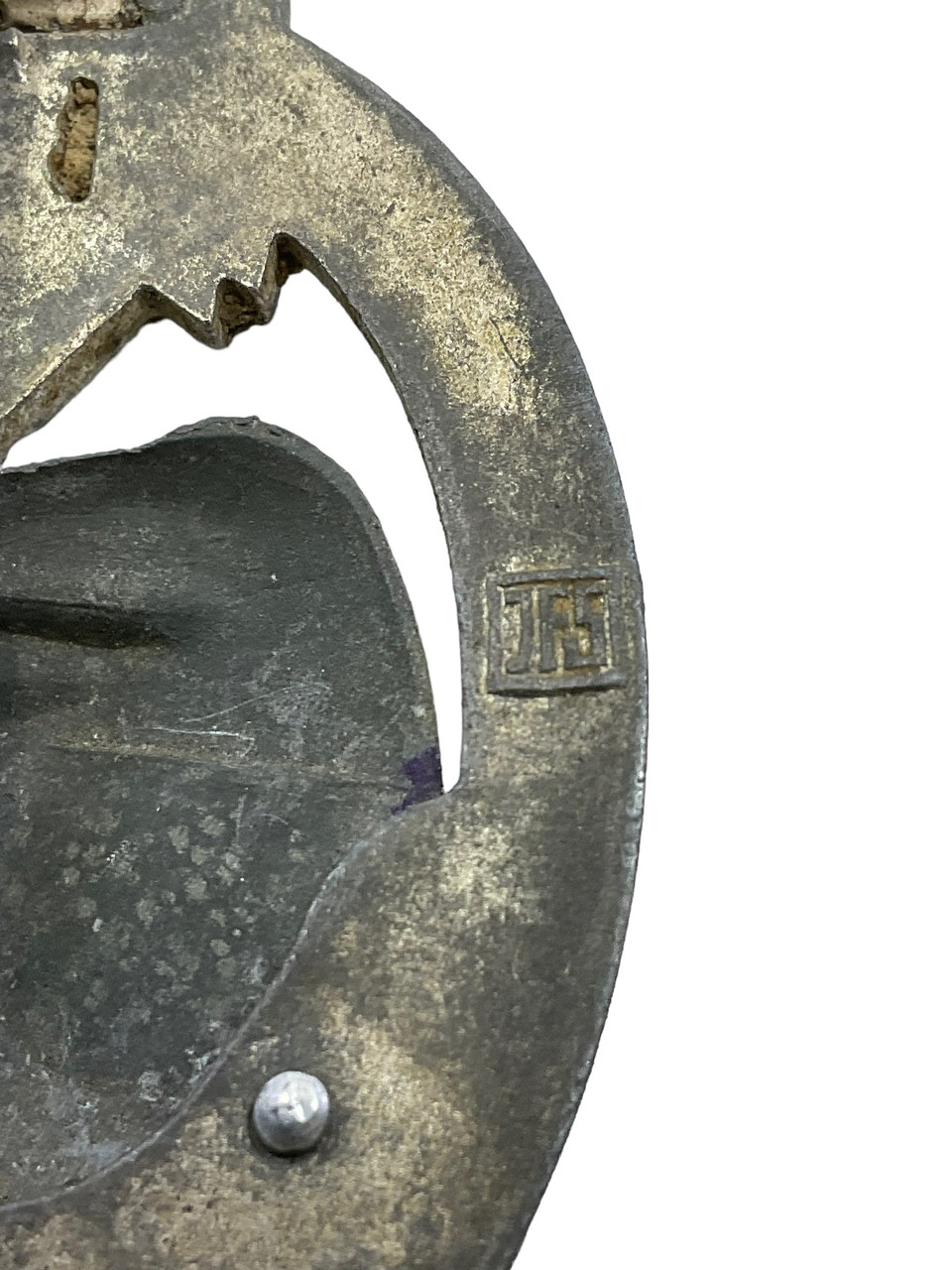 WW2 German Panzer 25 Tank Assault Badge by JFS. Missing the catch on the back. This could have been cleaned and had the dirt removed before listing but it came in the door this way from the family of a 8th Reece Veteran.