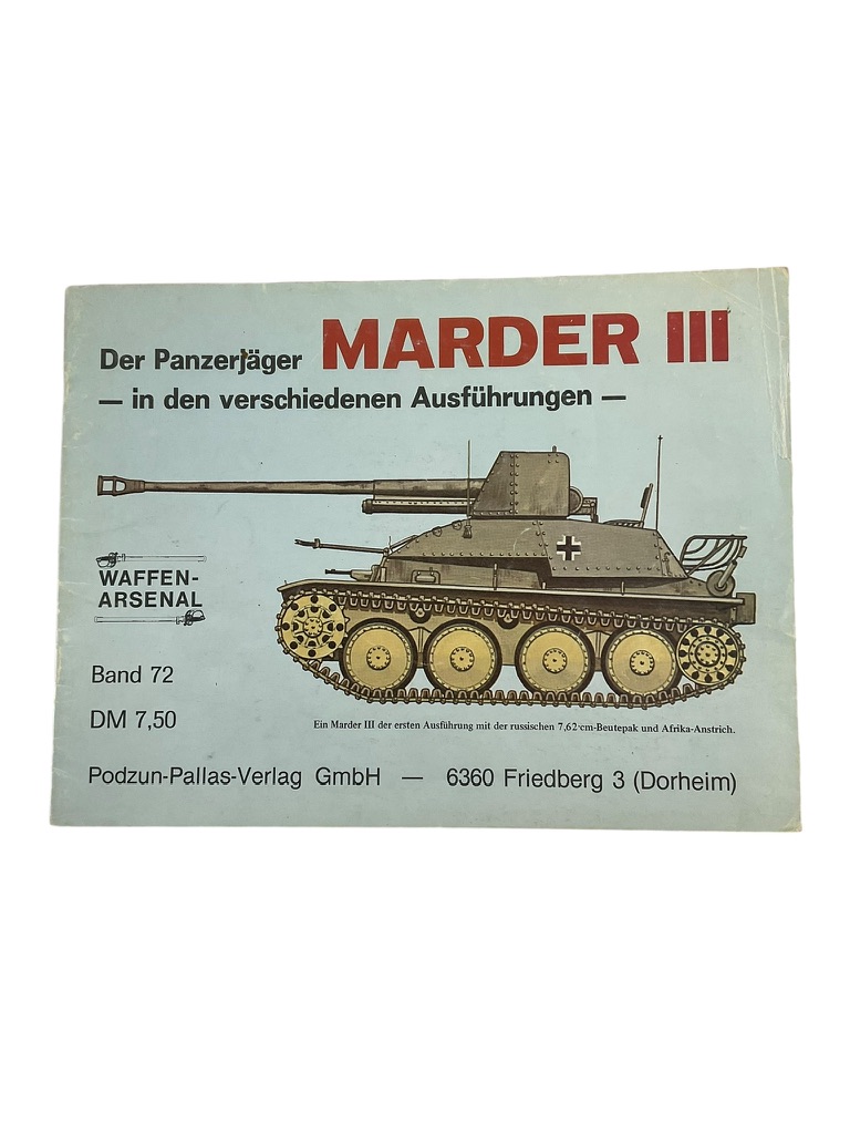 This paperback reference book provides an in-depth look at the WW2 German Panzerjager Marder III, a formidable tank destroyer used during the war. Written in German, it spans 48 pages filled with detailed information and numerous photographs, making it an invaluable resource for historians, model builders, and military enthusiasts alike. The book offers comprehensive insights into the Marder III’s design, development, and battlefield performance, alongside vivid images that bring its history to life. Whether you’re conducting research or simply delving into the fascinating aspects of WWII armored vehicles, this reference book is an essential addition to your collection. Ideal for anyone with an interest in military history and German engineering, it showcases the potency and complexity of the Marder III. Note: A GST of 5% applies to all sales within Canada, and international shipping is available.