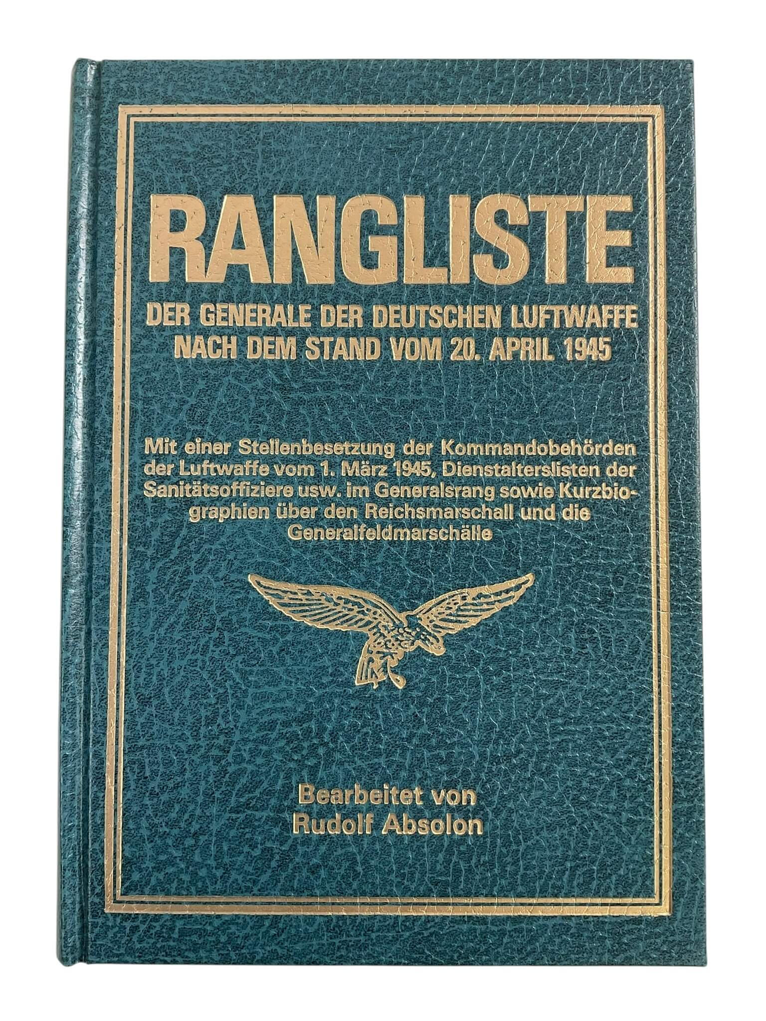 **WW2 German Ranking of Generals of the Luftwaffe as of April 20, 1945 GERMAN TEXT Used Hardcover Reference Book** This reference book provides a detailed account of Luftwaffe generals’ rankings as of April 20, 1945, based on original German archival materials. The volume, written entirely in German, presents authoritative information regarding command structure, rank hierarchy,