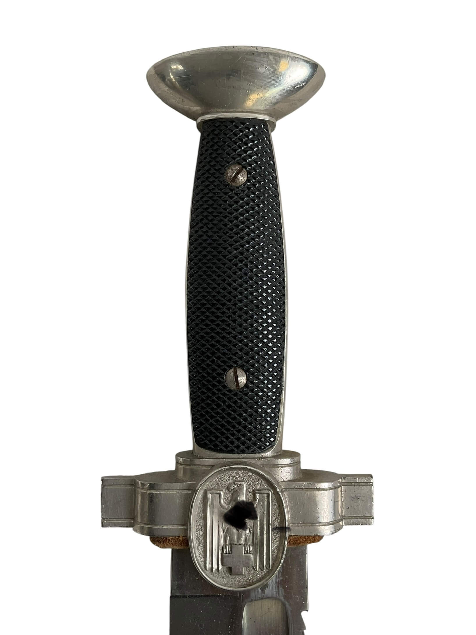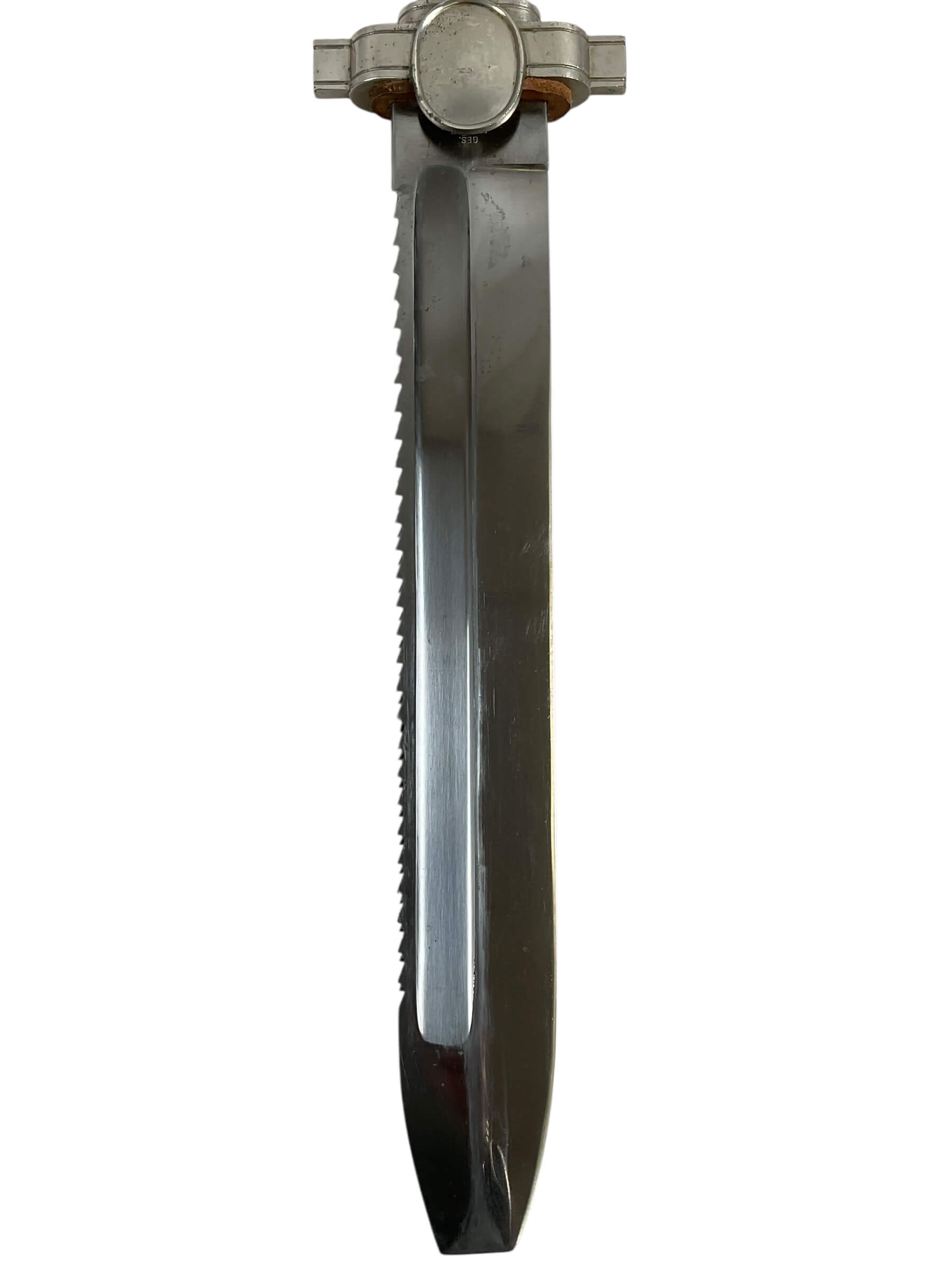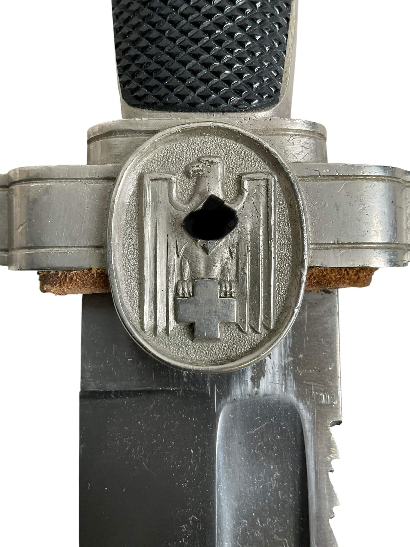 The WW2 German Red Cross Hewer with Frog is a striking piece of history, showcasing the craftsmanship of an era marked by conflict. This hewer, a type of knife traditionally used in military and rescue operations, was specifically designed for use by the German Red Cross during the Second World War. The hewer features a single-edged blade, a metal hilt, and a protective sheath or ‘frog’. The frog, made of sturdy leather, was designed to secure the hewer to a belt for easy access. The hewer is embellished with various insignia, including the Red Cross emblem and markings of the German Reich. The WW2 German Red Cross Hewer with Frog is not just a weapon, but a symbol of the Red Cross’ humanitarian efforts amidst the brutality of war. It is a significant artifact for history enthusiasts and collectors alike, offering a tangible connection to an intense period of world history.