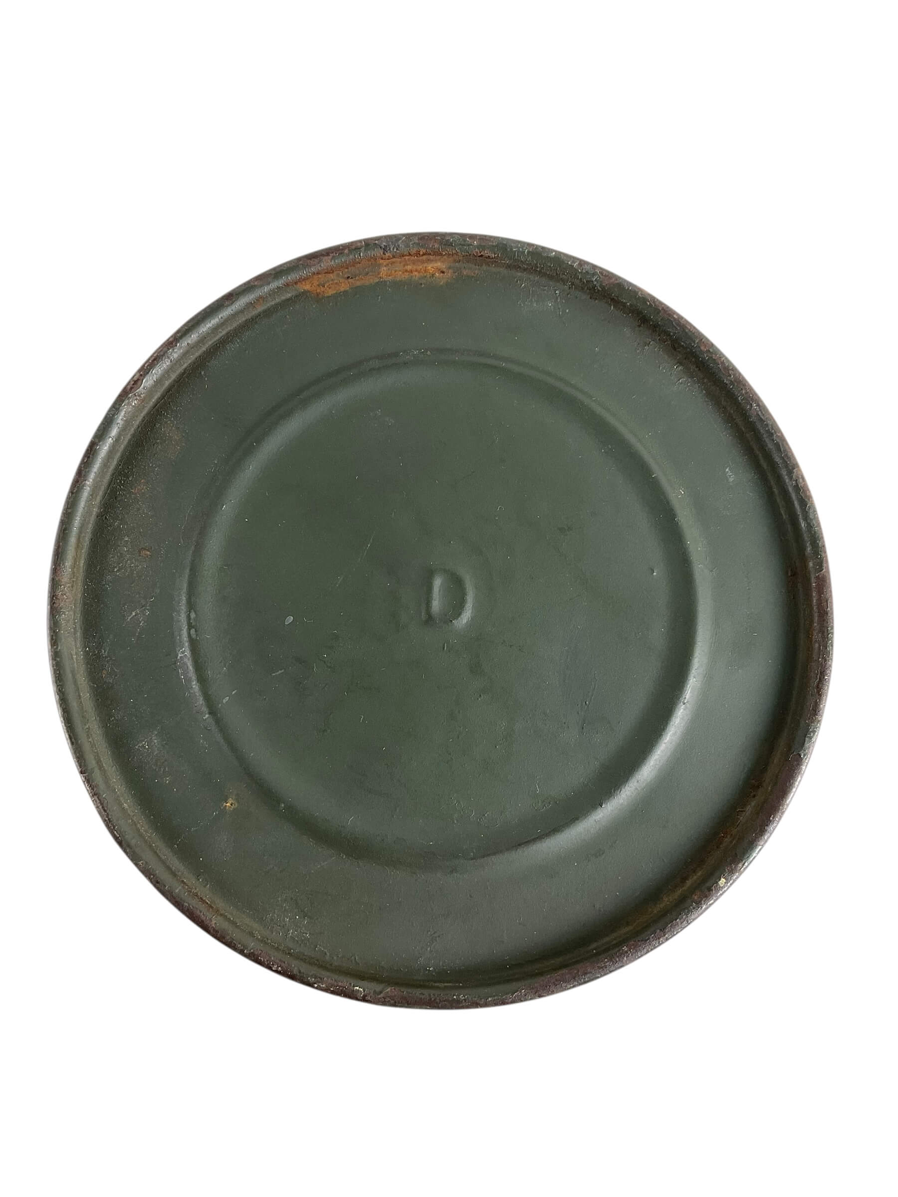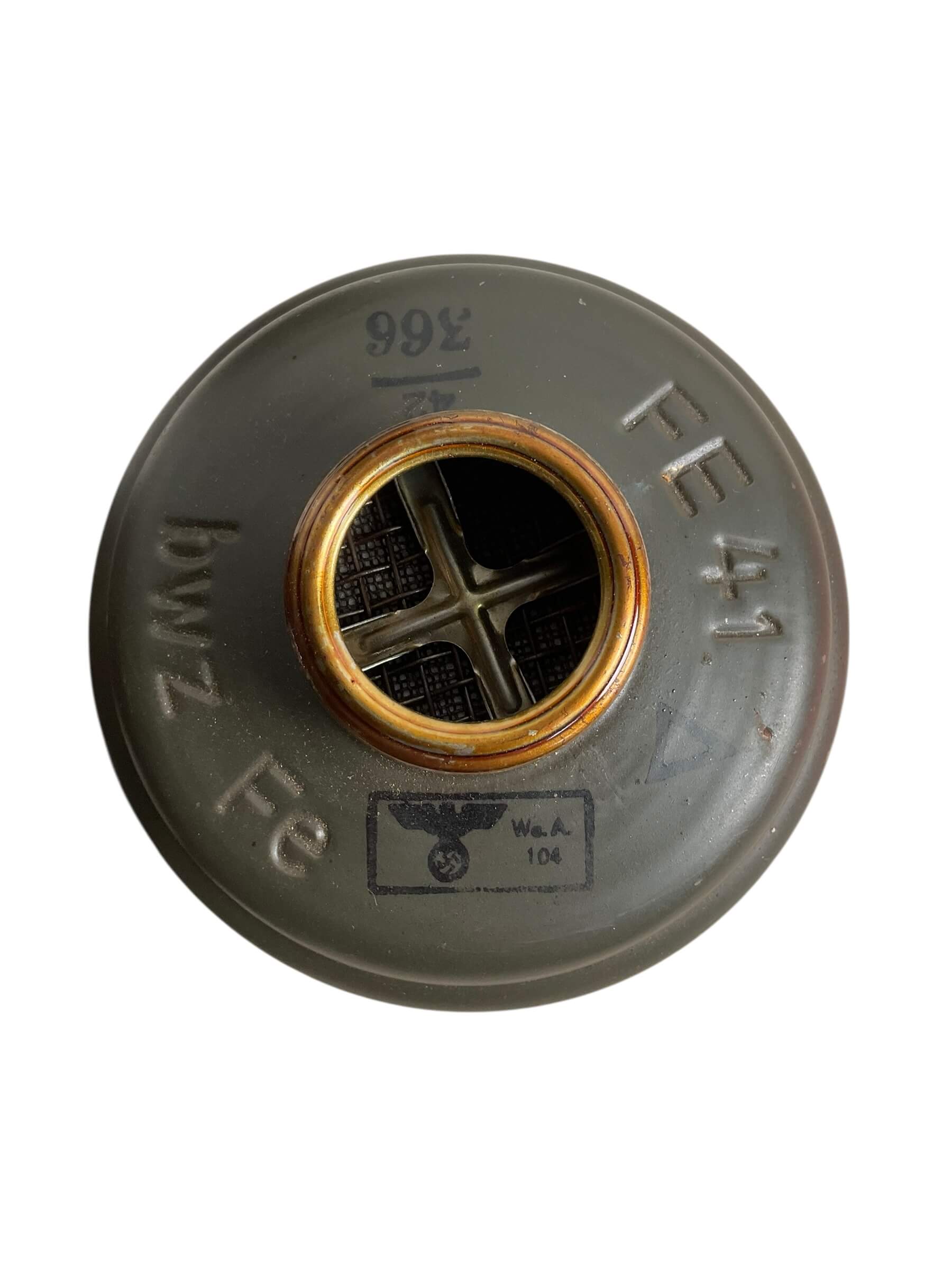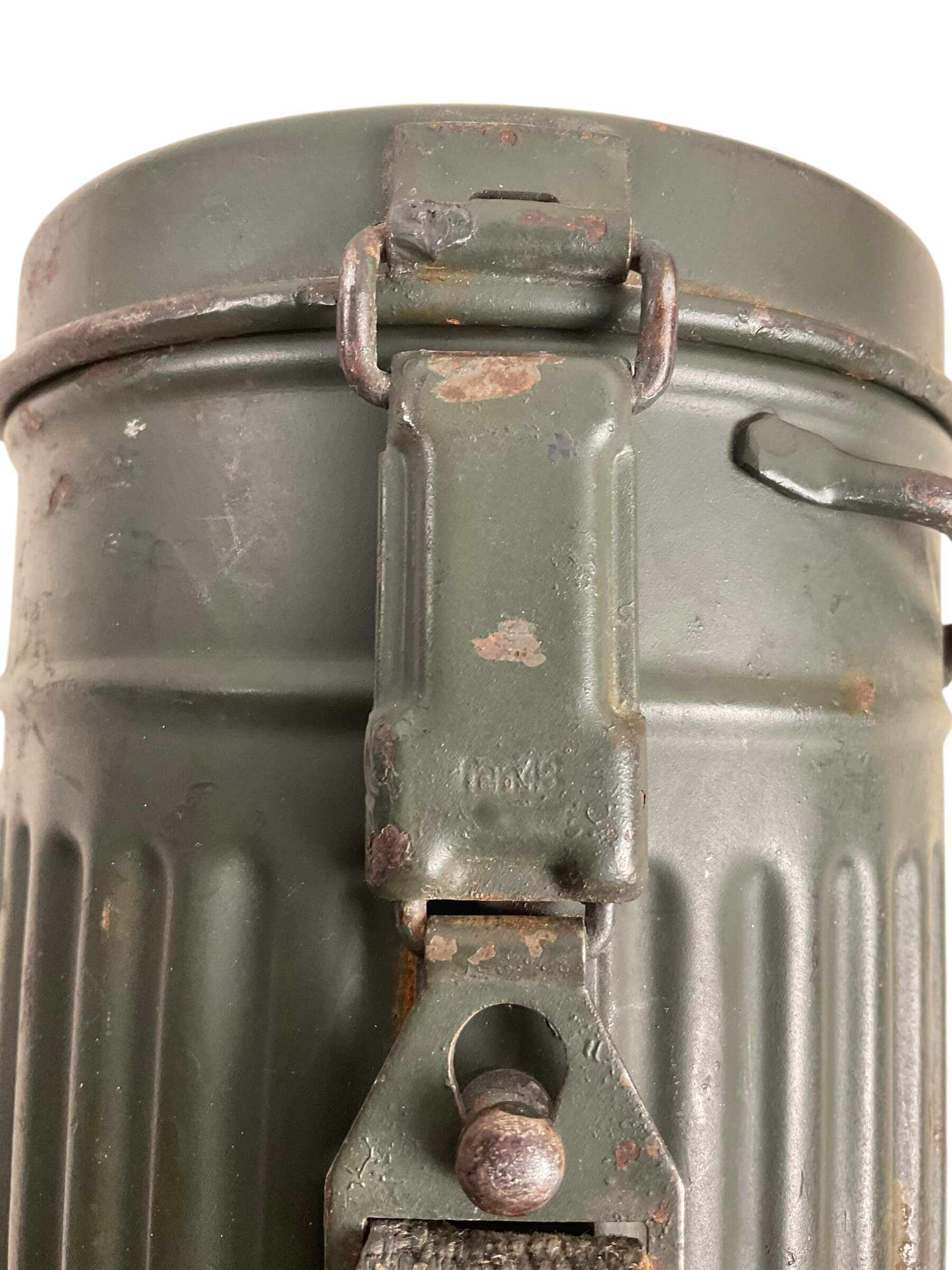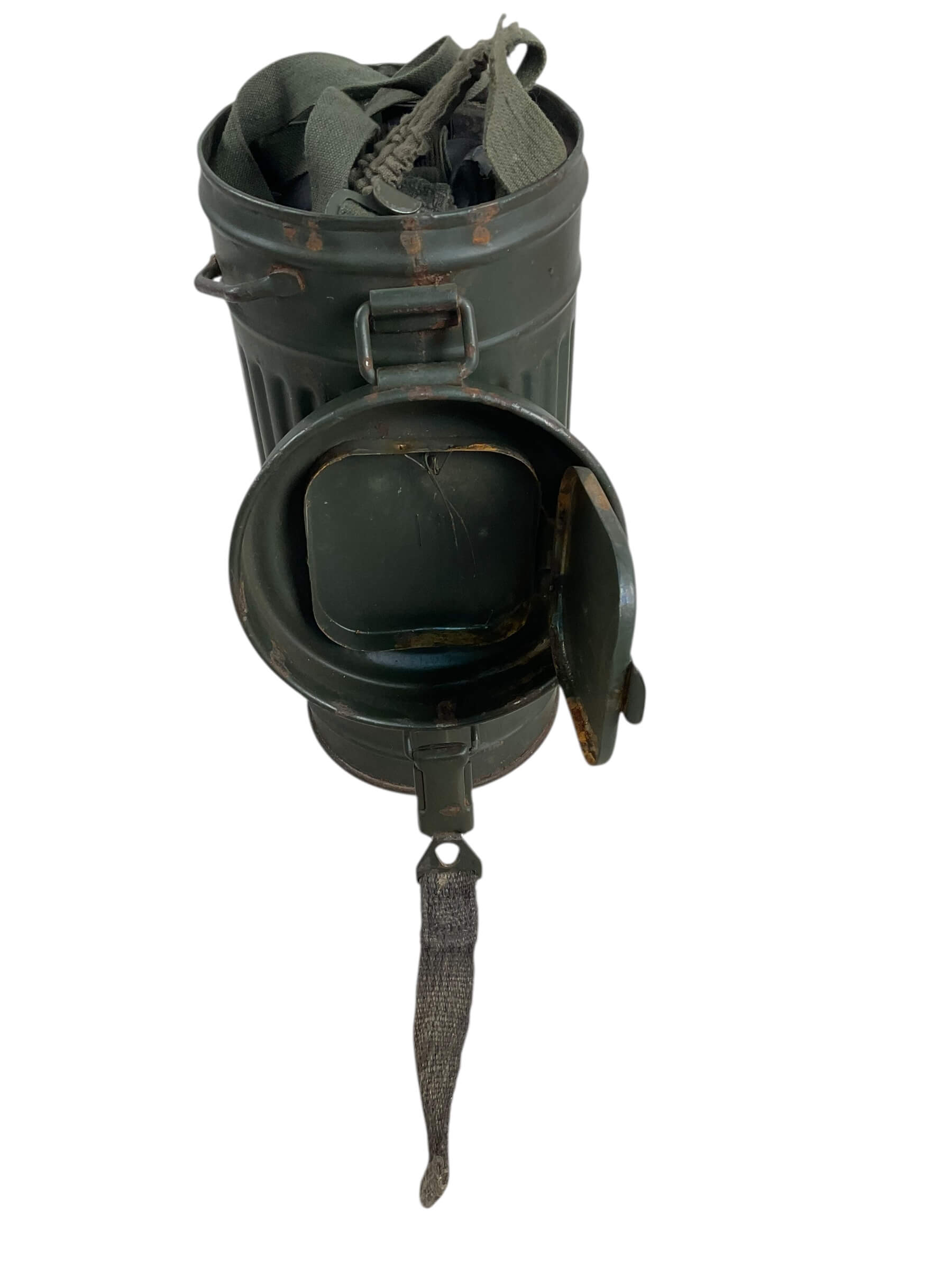 The WW2 German Respirator in Tin Size 5 1/2 is a historical artifact from the Second World War. It’s a German-made respiratory protection device, designed for gas warfare. The respirator comes enclosed in a tin of 5 1/2 inches diameter. It reflects the military equipment standard of the mentioned era. Authenticity not verified.