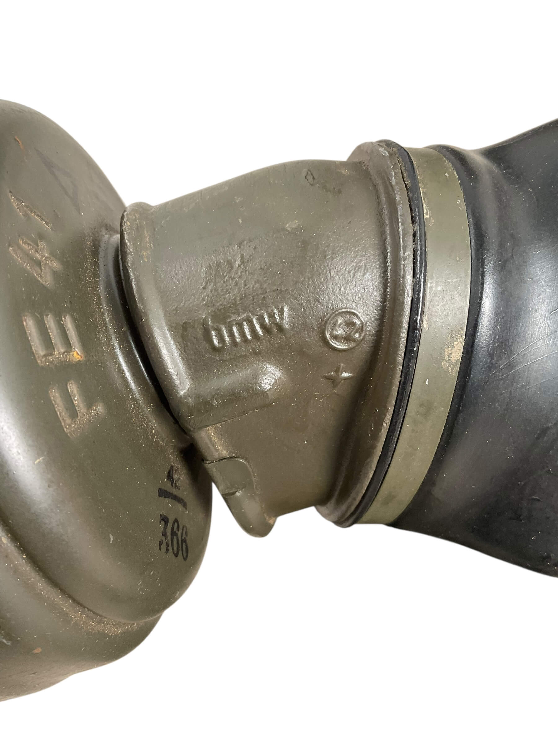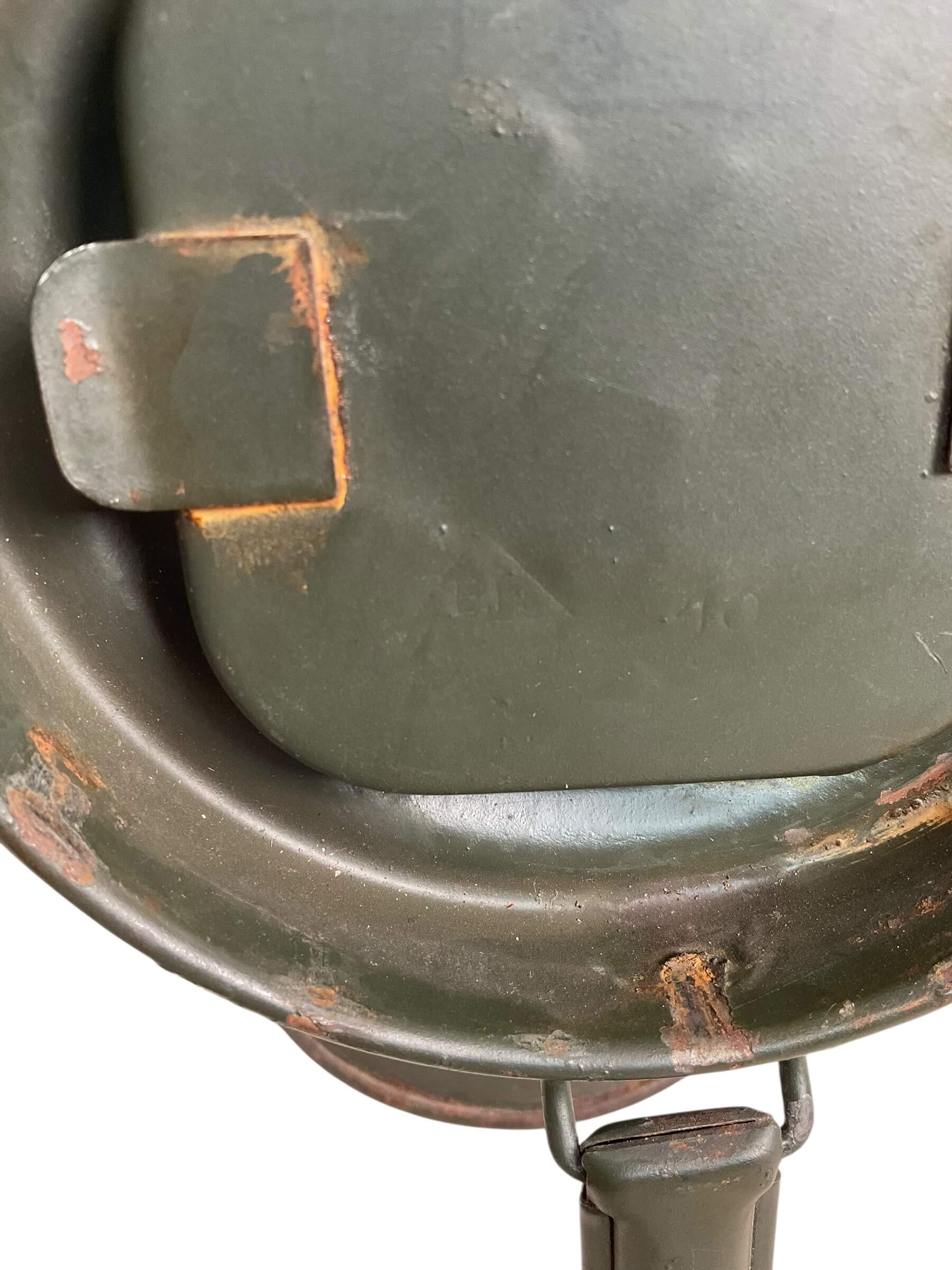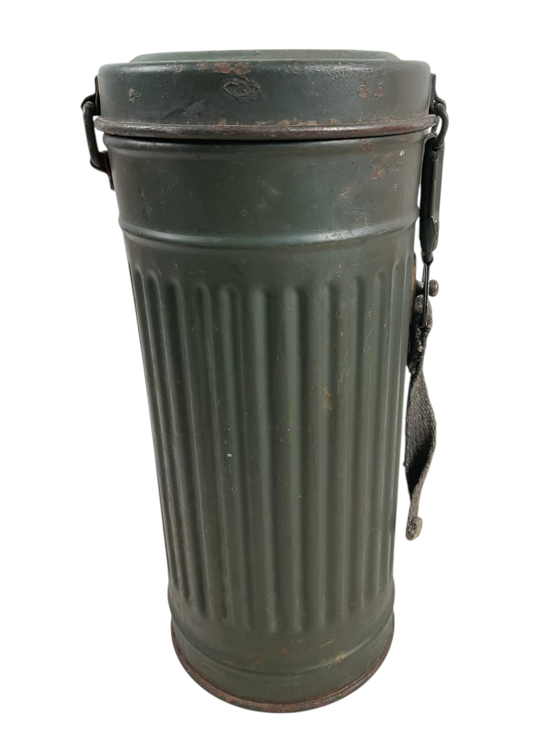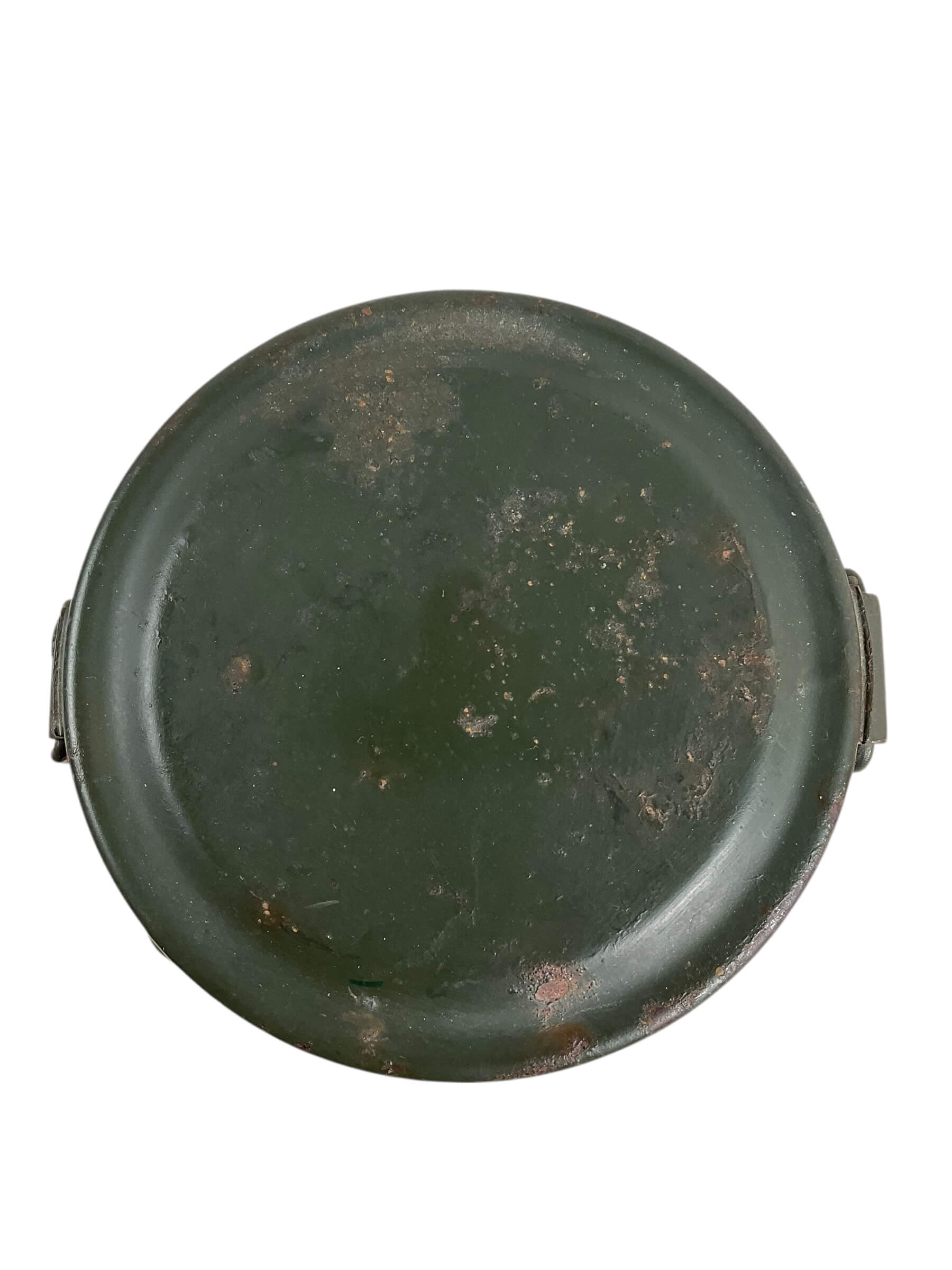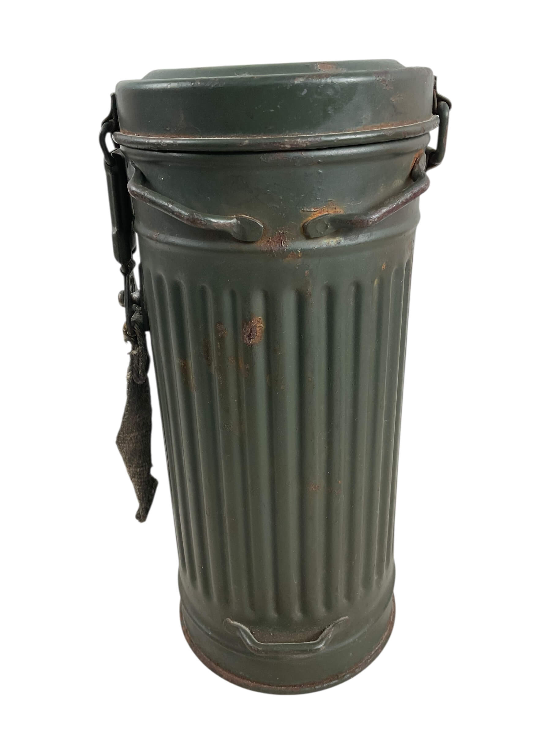 The WW2 German Respirator in Tin Size 5 1/2 is a historical artifact from the Second World War. It’s a German-made respiratory protection device, designed for gas warfare. The respirator comes enclosed in a tin of 5 1/2 inches diameter. It reflects the military equipment standard of the mentioned era. Authenticity not verified.