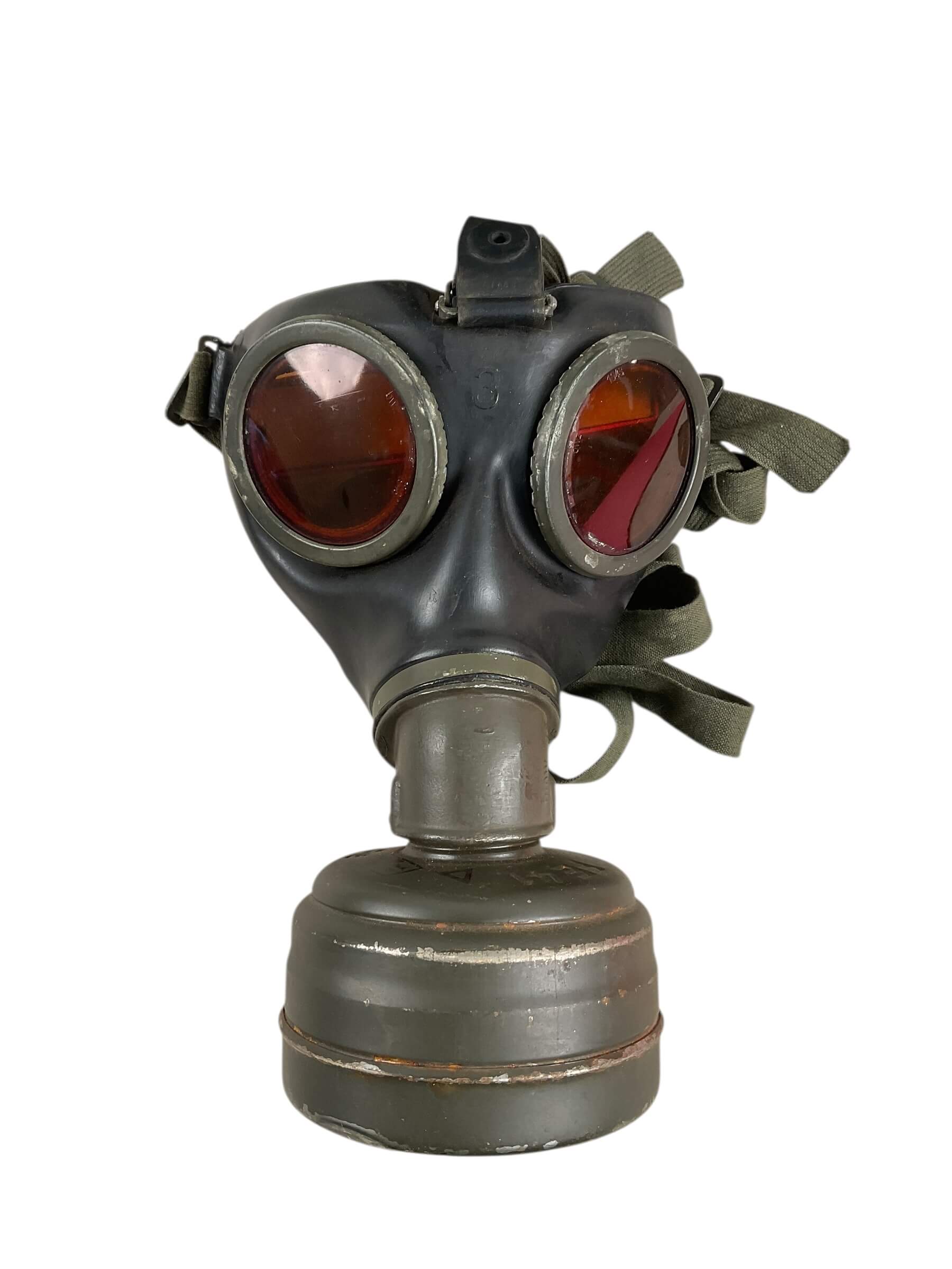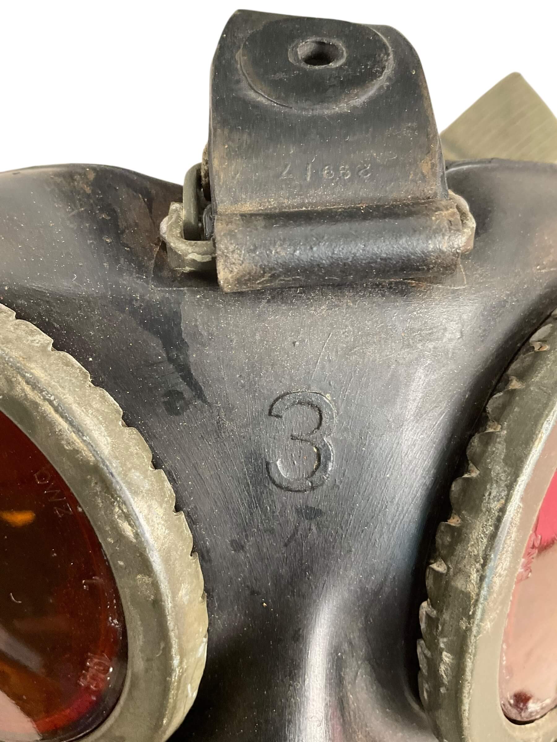 The WW2 German Respirator In Tin Size 5 1/2 is a historically significant piece of protective equipment used by the German armed forces during the Second World War. Originally designed to protect the wearer from harmful gas and chemicals, this authentic respirator is preserved in its original carrying tin. The tin, marked with the German-size 5 1/2, served the dual functionality of providing compact, solid storage while simultaneously aiding in the device’s decontamination. Despite the respirator’s specific wartime function, its intricate design offers an insight into the technological advancements of the era. Furthermore, the container showcases the detailed stippling and embossing techniques used in its creation, thus adding to its historical value. Please note, supplemental objects like filters or additional parts are not necessarily included and it is essential to clarify their inclusion with the vendor. This product is intended for collection, display, or historical study purposes, not for actual use.