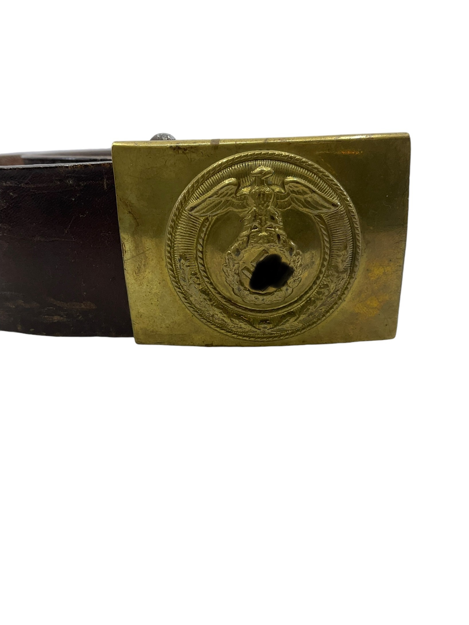 WW2 German SA Belt Buckle Marked RZM 24 And Brown Leather Belt
