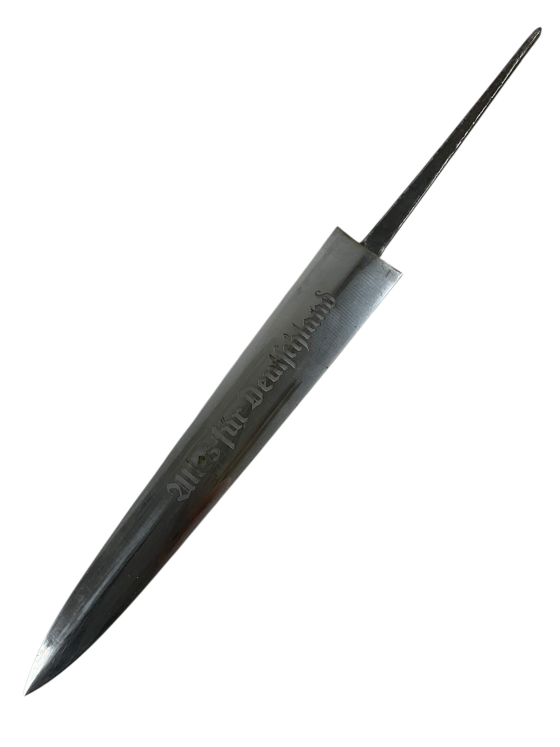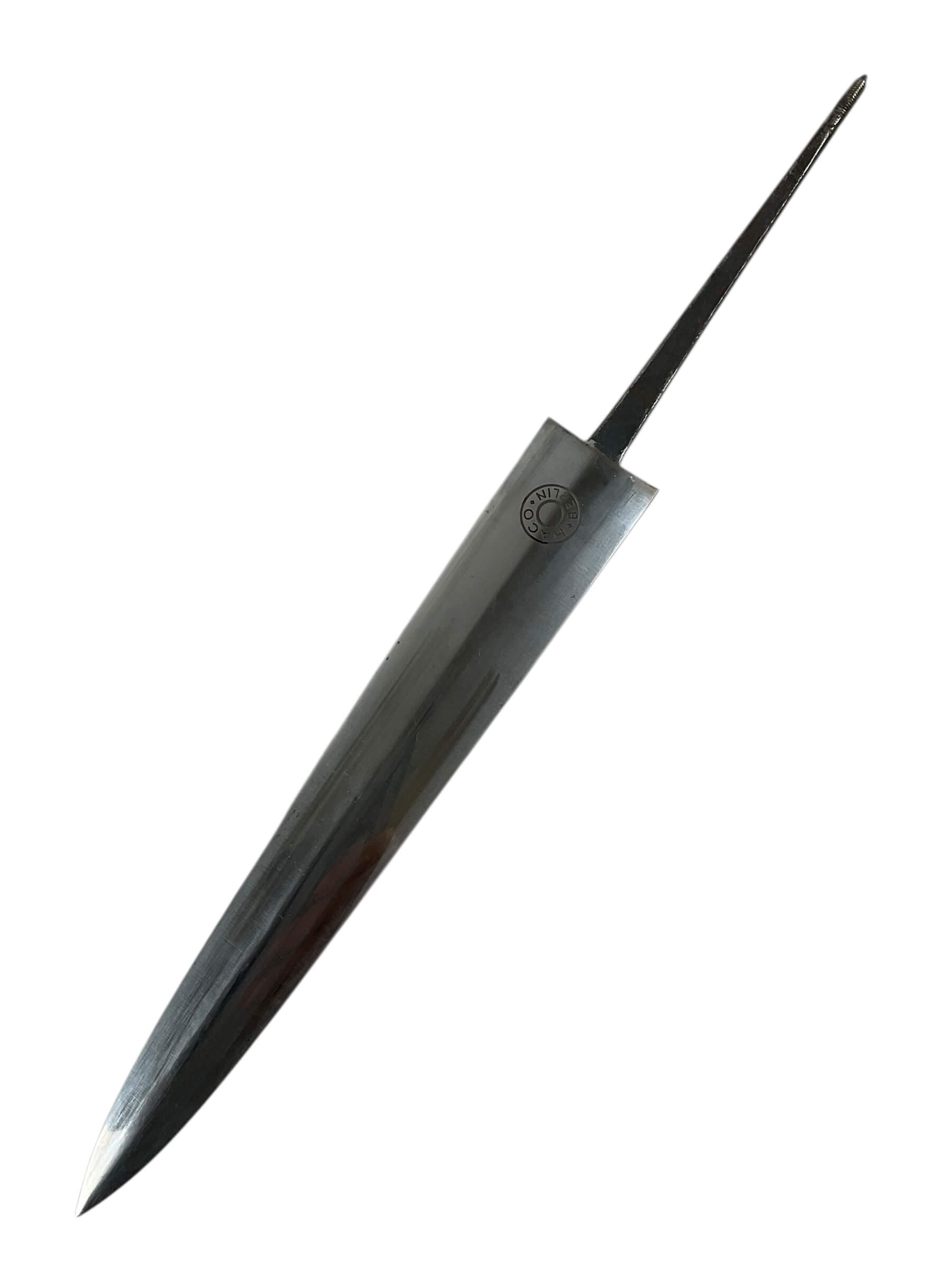 This product is a genuine piece of World War II history: a German SA Dagger blade once produced by the renowned HACO company in Berlin. This is a blade-only piece, devoid of the handle or sheath that traditionally completes a dagger. Despite the absence of these elements, the blade’s historical significance and craftsmanship remain undiminished. The blade displays characteristic German precision and quality, with the HACO Berlin stamp identifying its origins. Its steel is still robust, bearing testament to the durability of wartime resources. Even after decades, the blade’s edge remains sharp, reflecting the meticulousness of its manufacturer. It’s a fascinating relic from a time of global conflict and a must-have for any serious collector of World War II memorabilia. It should be noted that this item, due to its age and historical significance, requires careful handling and preservation.