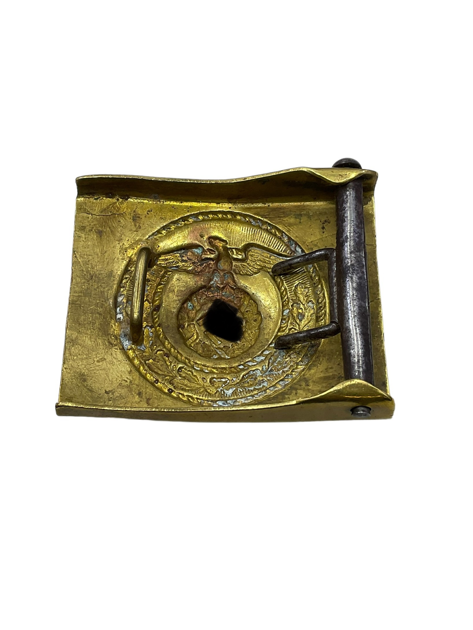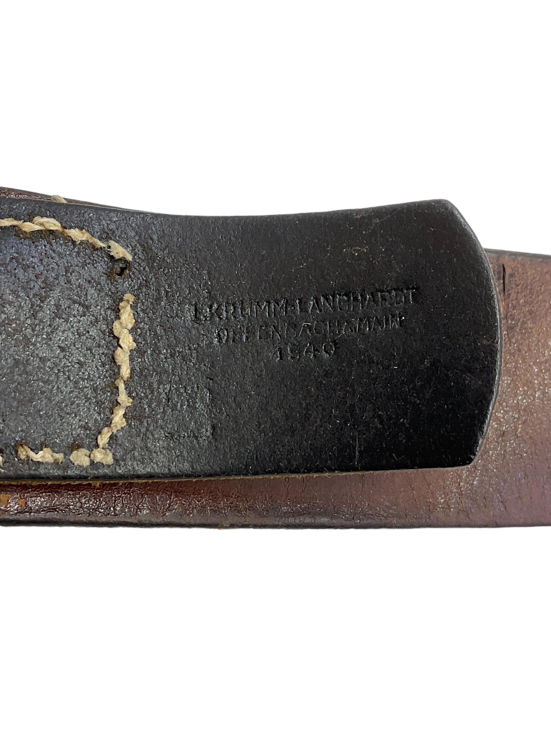 This authentic World War II German SA leather belt is a remarkable artifact from 1940, offering a vivid glimpse into history. The belt measures 60cm in length, making it a significant relic for collectors and enthusiasts. It features a robust brass buckle that adds a touch of durability and functionality, ensuring it has withstood the test of time. The belt is also named, providing a personal connection to a soldier from that era. Crafted from high-quality leather, it showcases the craftsmanship and design typical of the period. Whether you’re a historian, collector, or someone with a keen interest in World War II memorabilia, this SA leather belt with its 1940 brass buckle and unique historical value is a rare and meaningful addition to any collection.